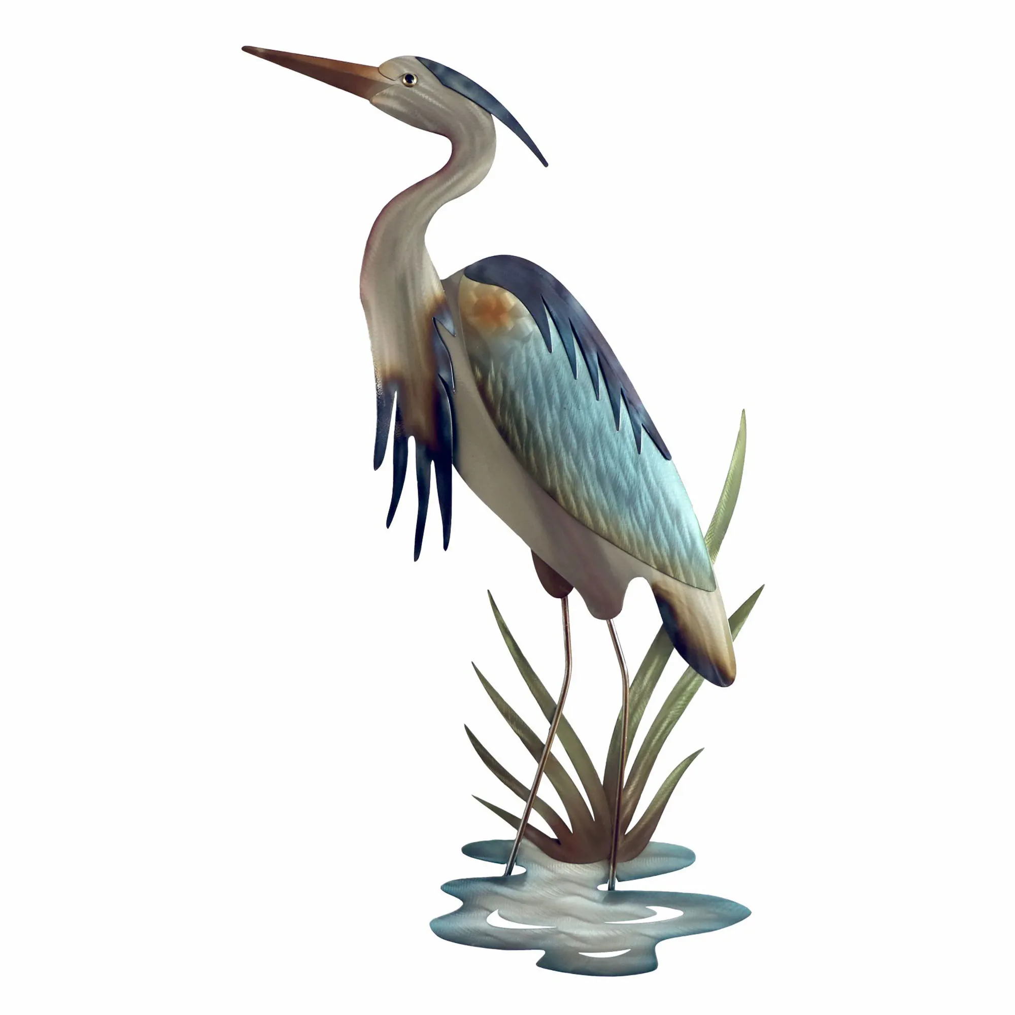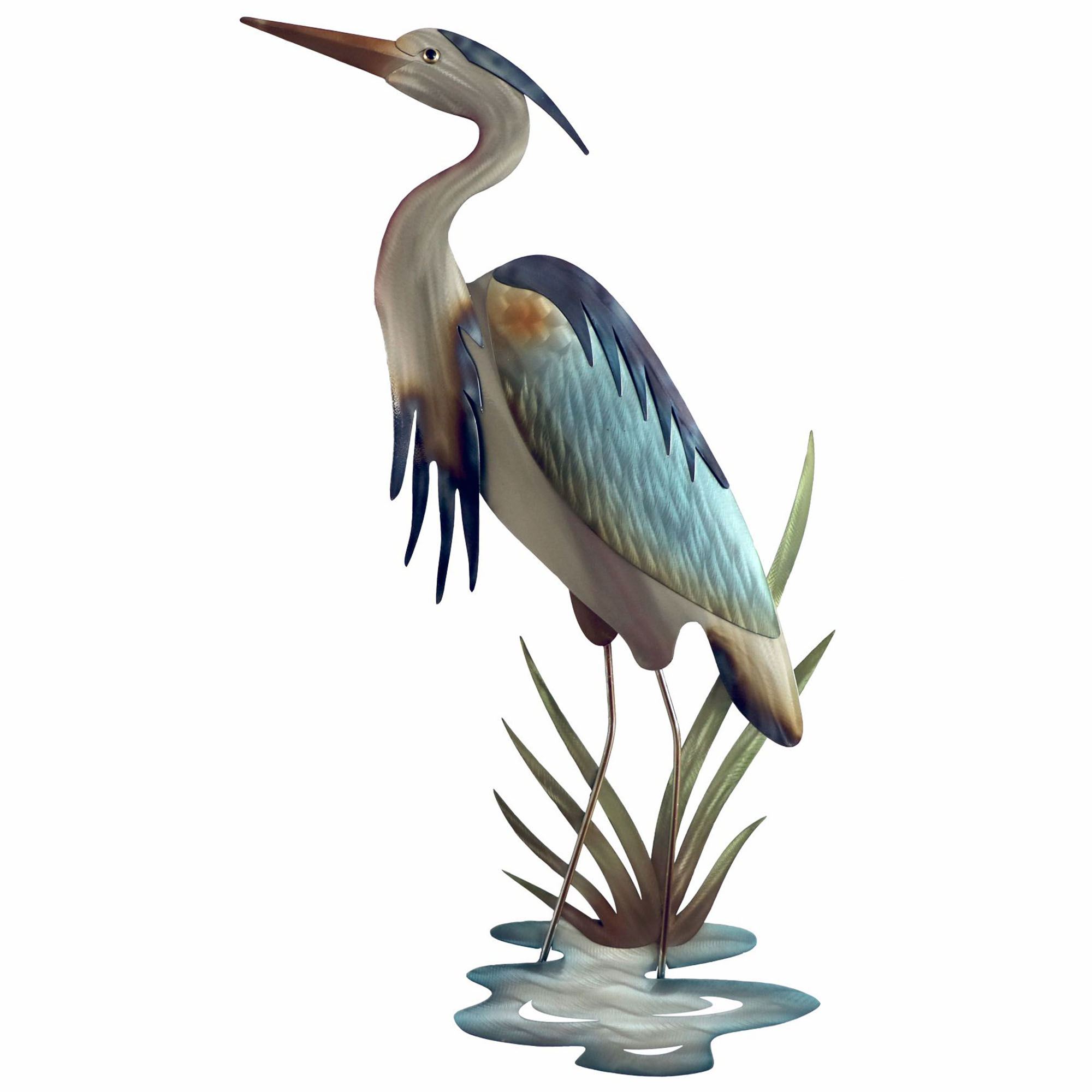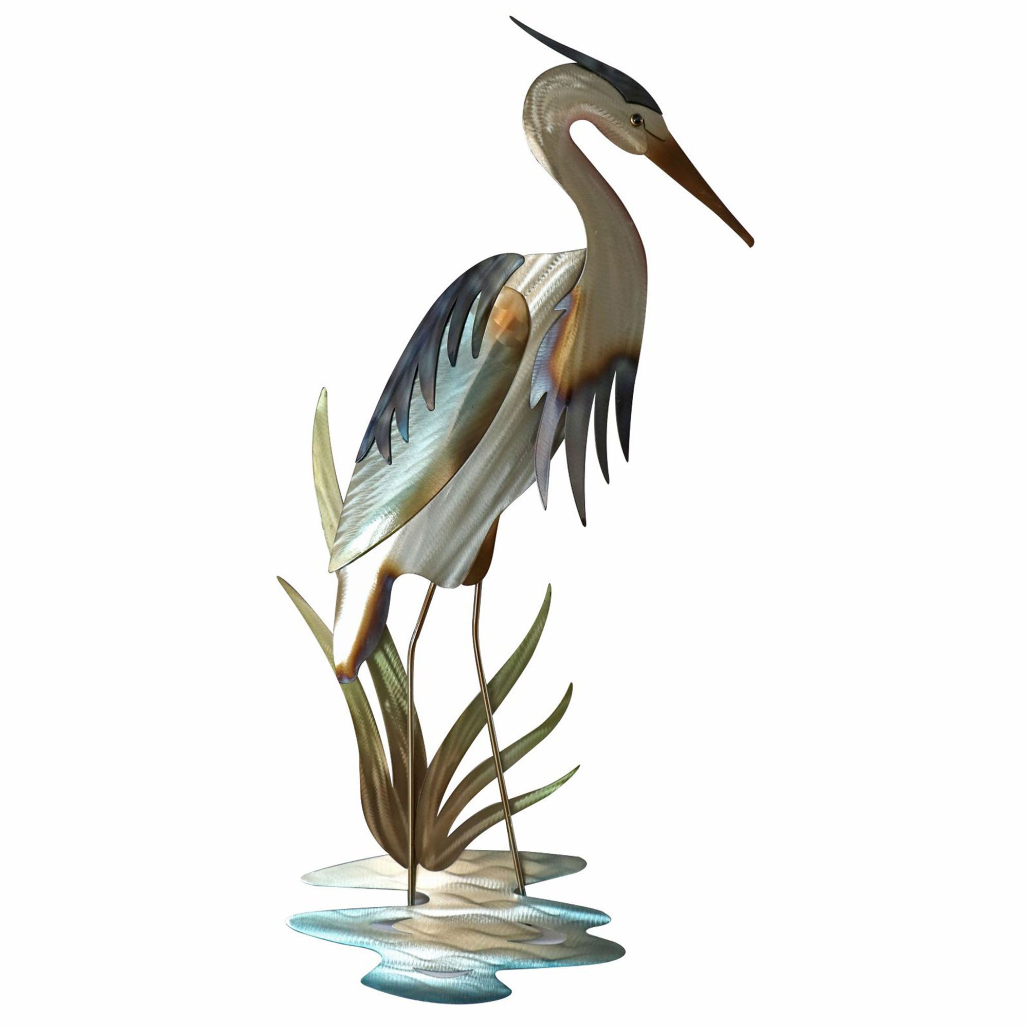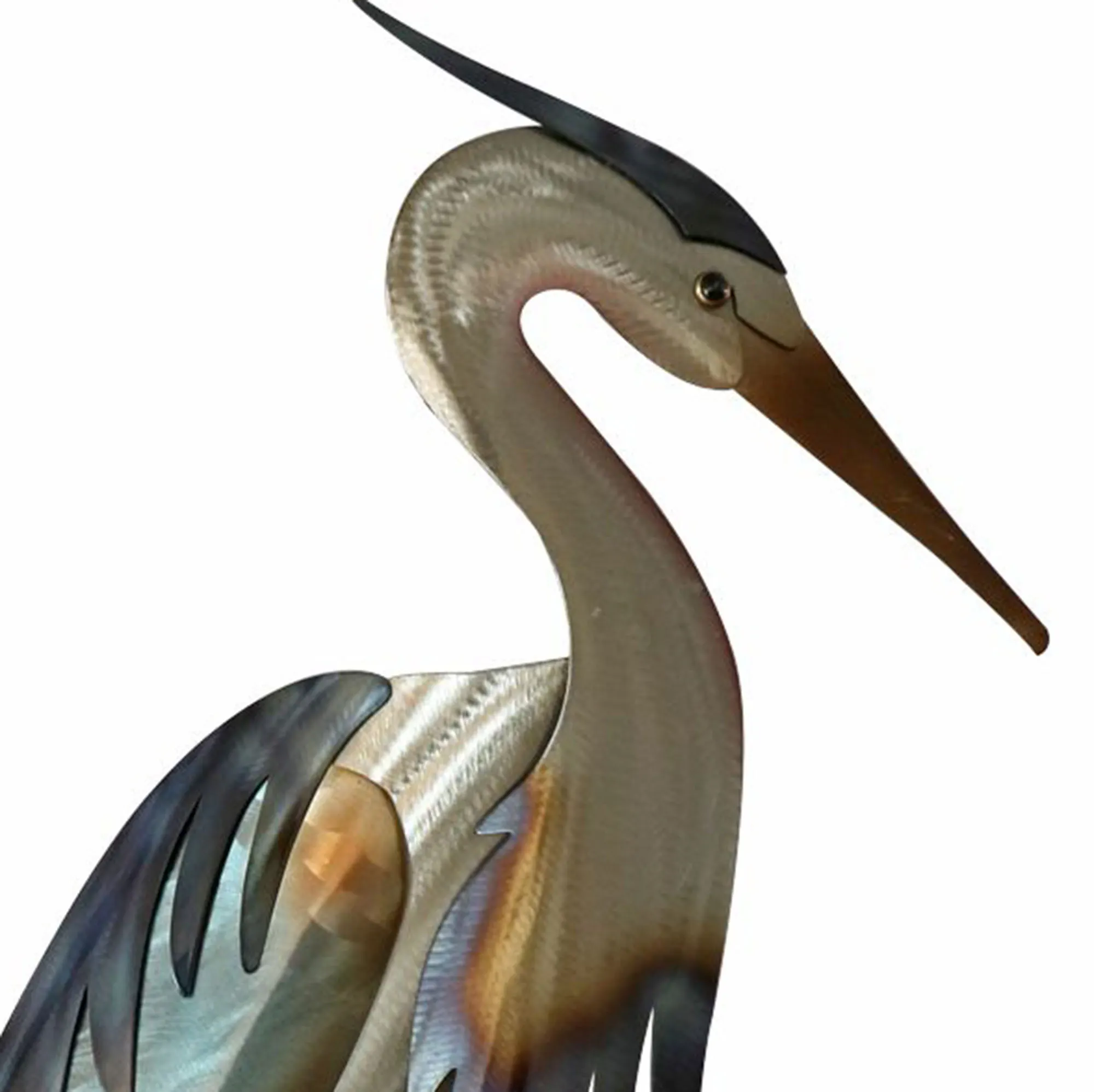 Coastal Heron Indoor Outdoor Handcrafted Metal Wall Art Sculpture