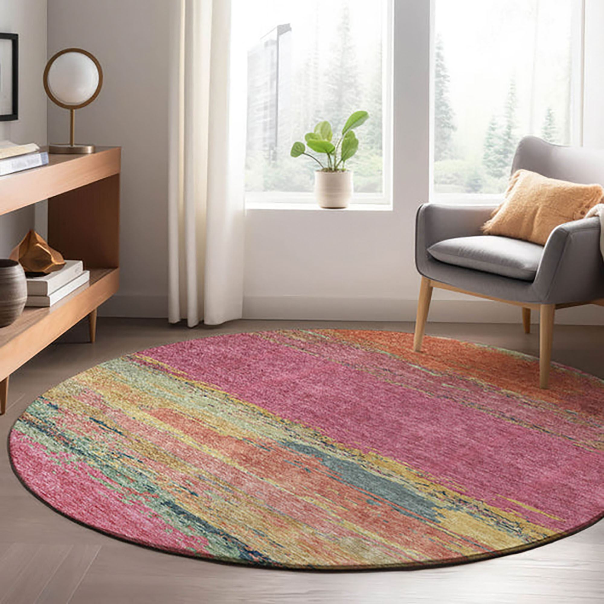 Color Run Machine Washable Indoor Outdoor Round Rugs