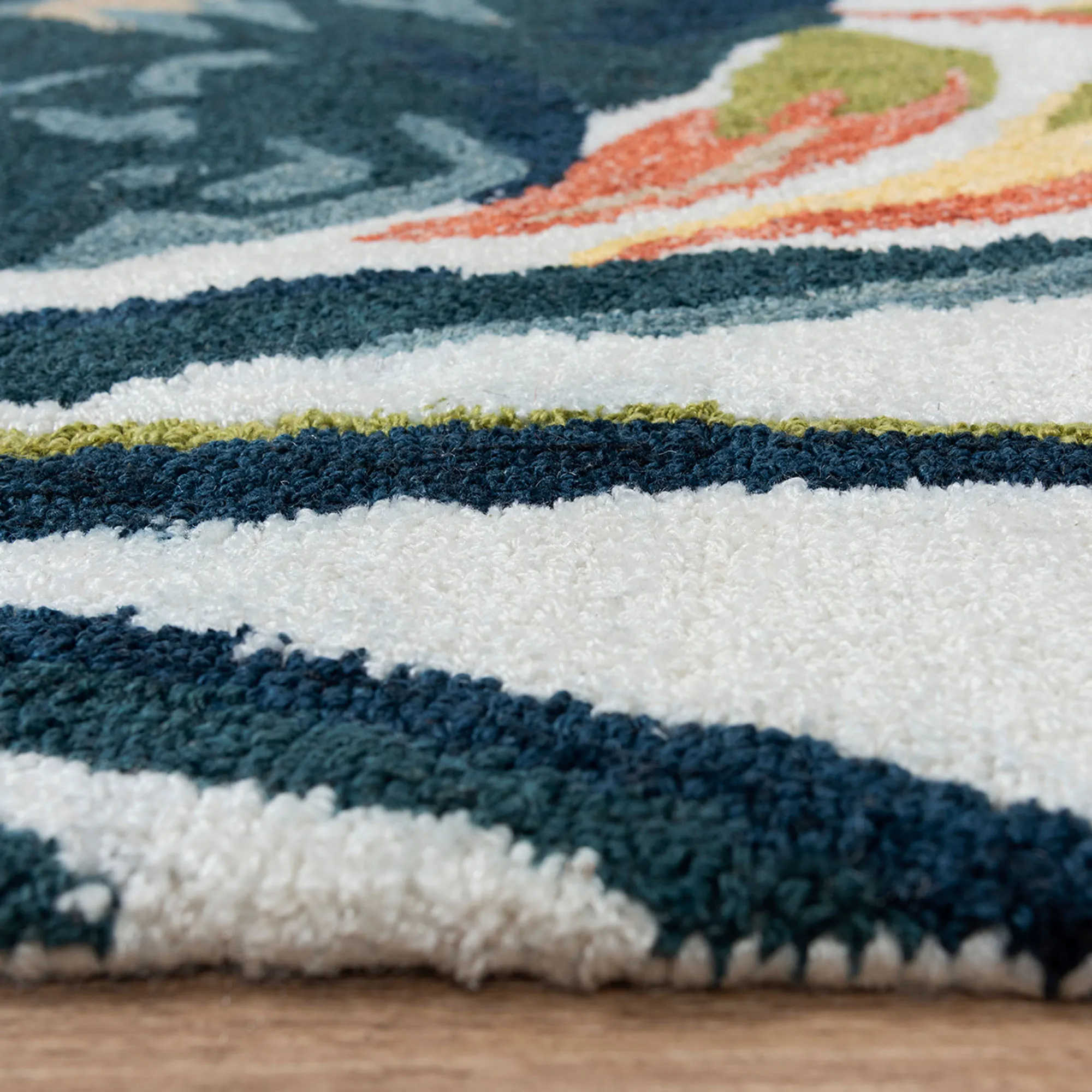 • Hand-tufted, recycled polyester tropical area rug