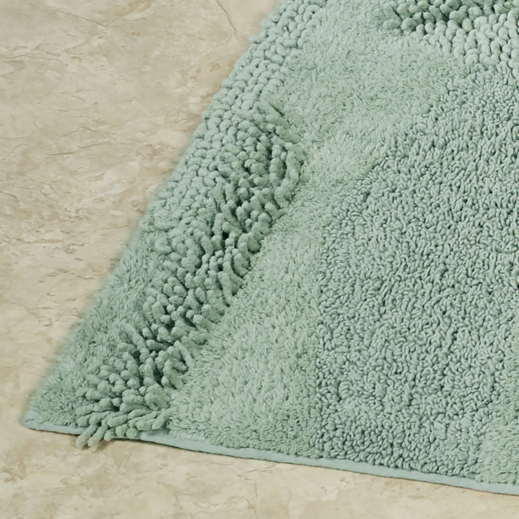 You will love the unique Composition of this bath rug runner. Machine-tufted of cotton, this solid color rug, .5" thick, has asymmetrical designs with an ultra-soft, plush feel and a nonskid latex backing. Runner is 24"x60" (2'x5'). Specify Seafoam, Almond, Blush, Charcoal, Glacier, Gray, Ivory, Midnight Blue, Teal, or White. Machine washable. Imported.