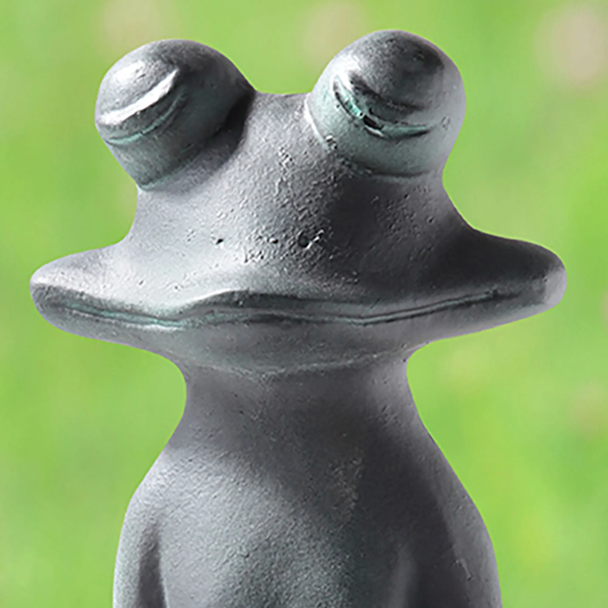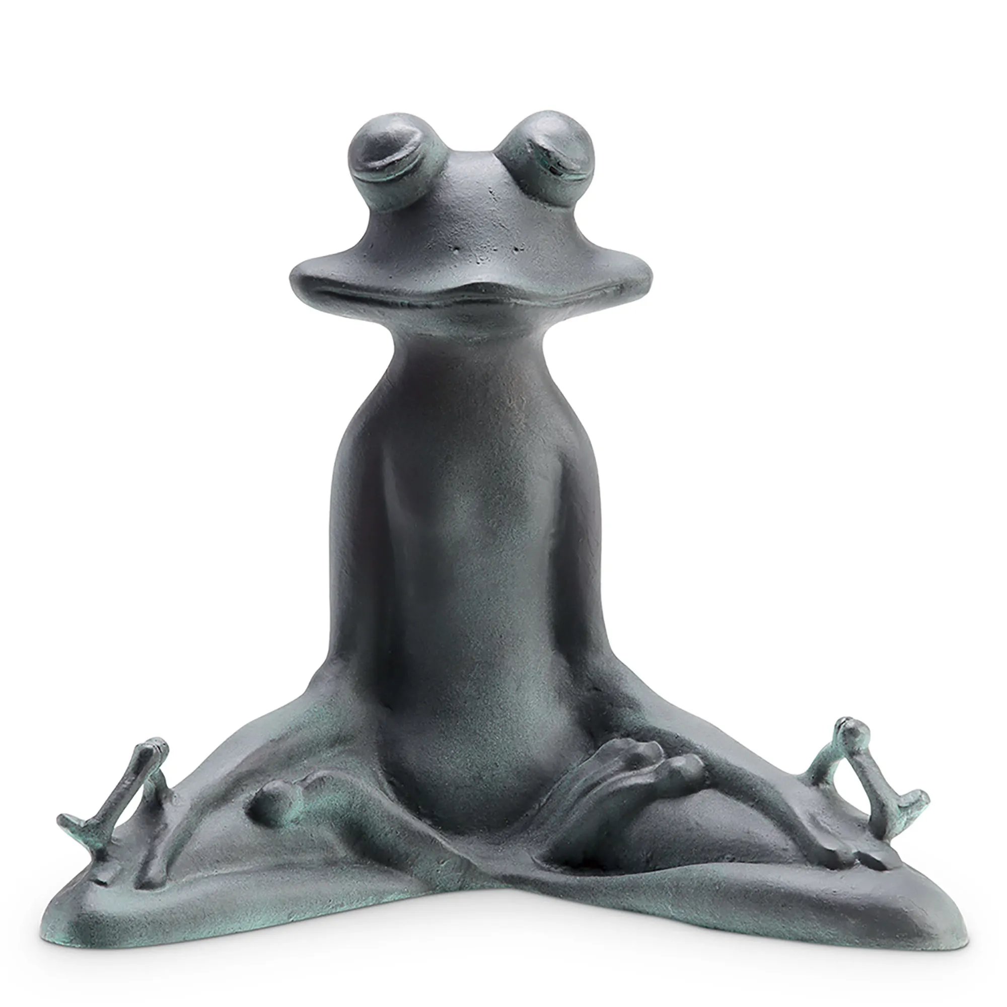 Relax and search for peace with the Contented Yoga Frog Garden Sculpture. This whimsical, hand-cast aluminum sculpture depicts a concentrating frog in a yoga pose with a hand-rubbed verdi bronze finish. Indoor or outdoor year-round use. Measures 12"Wx8"Dx13"H.