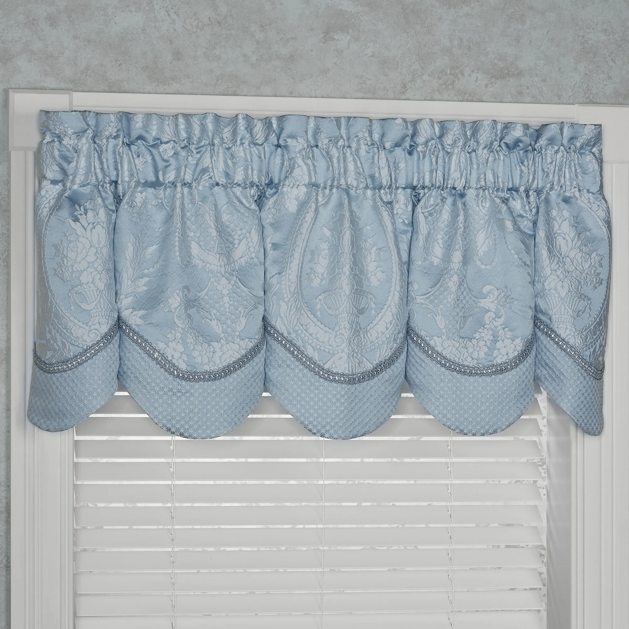 Contessa Powder Blue Scalloped Valance Window Treatment