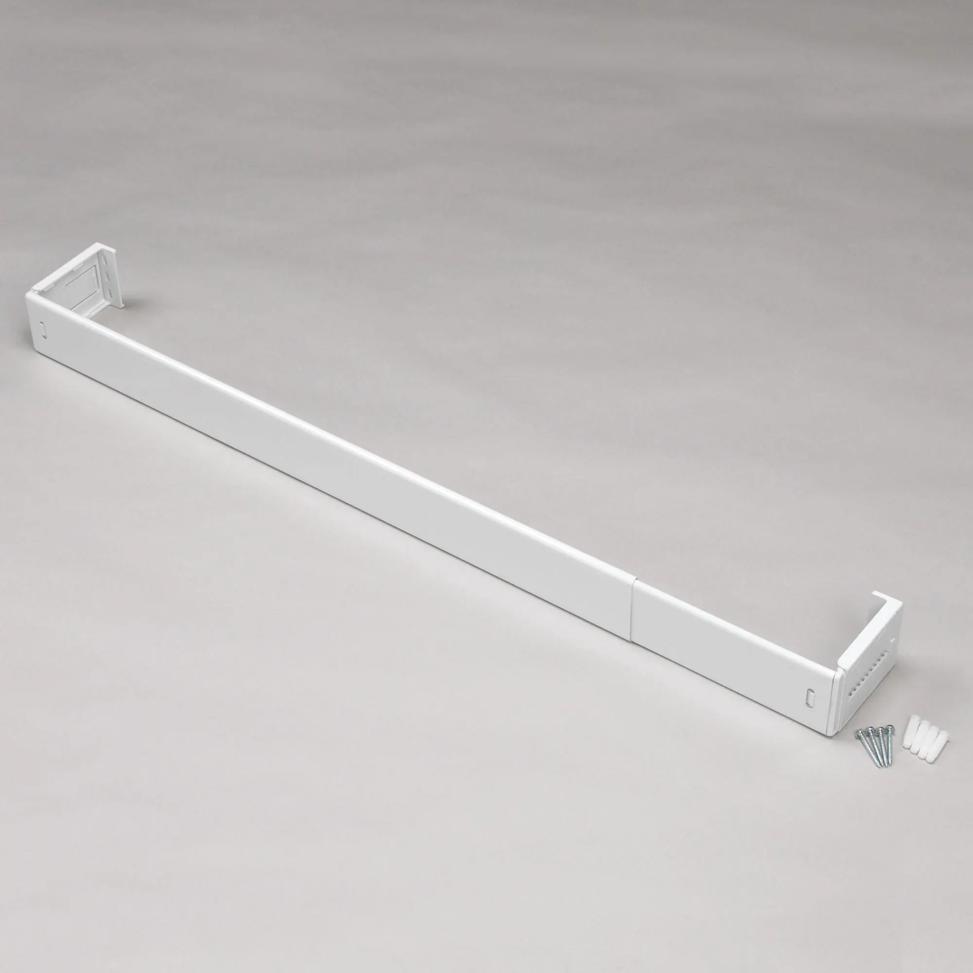 The Continental II Rod neatly hides behind your wide-pocket window treatment. Ideal for window curtains or valances with 3" rod pockets, the white metal rod is 2.5"H and hangs via adjustable plastic brackets that project 3"-6". The 48"-86" size includes an adjustable center support bracket. Set includes a rod, brackets, and hardware.