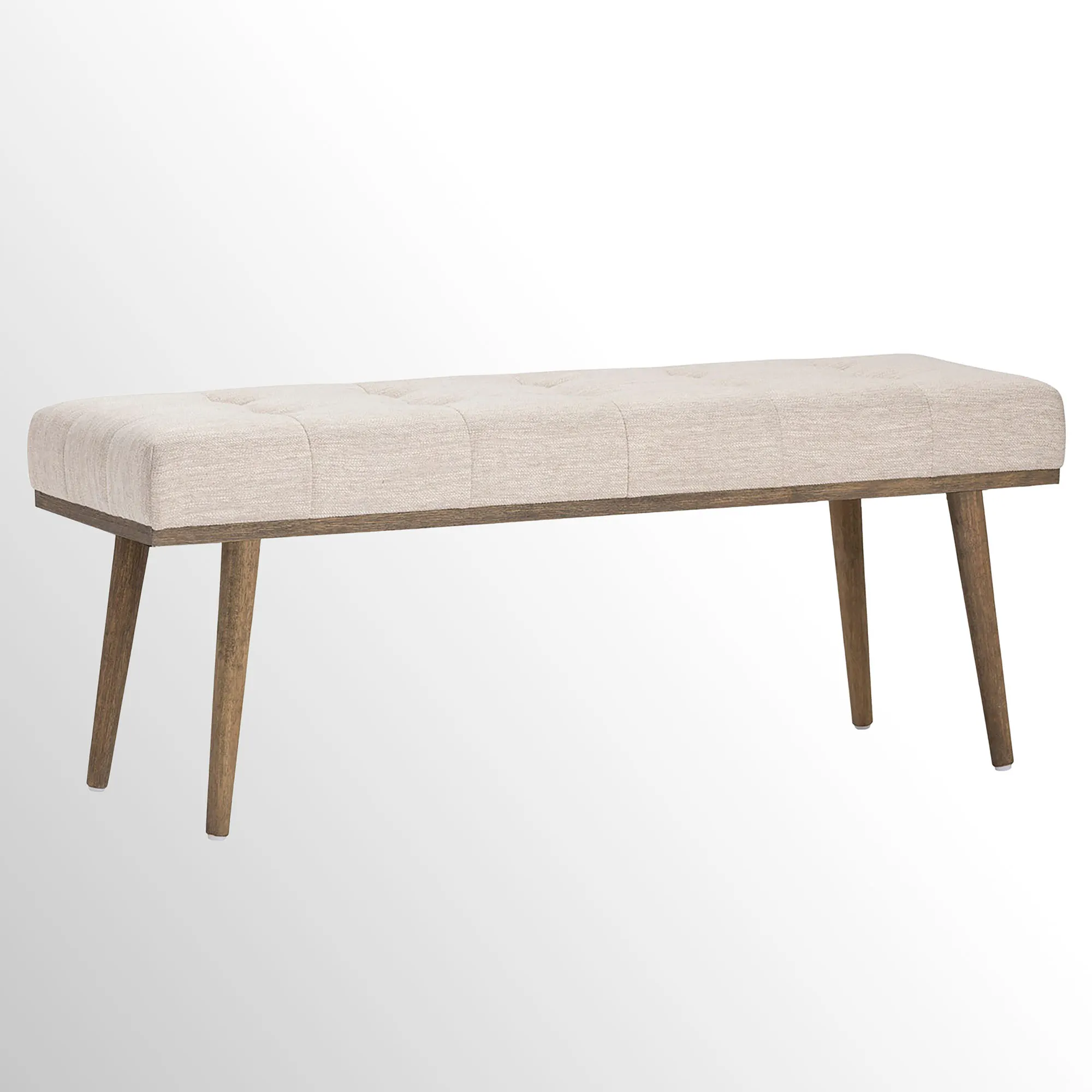 Take a seat on the Conway Entryway Bench. This modern bench has a tufted, beige polyester seat cushion and dark brown rubberwood legs. Measures 45"Wx15"Dx18"H; weighs 19 lbs. Spot clean the fabric cushion.