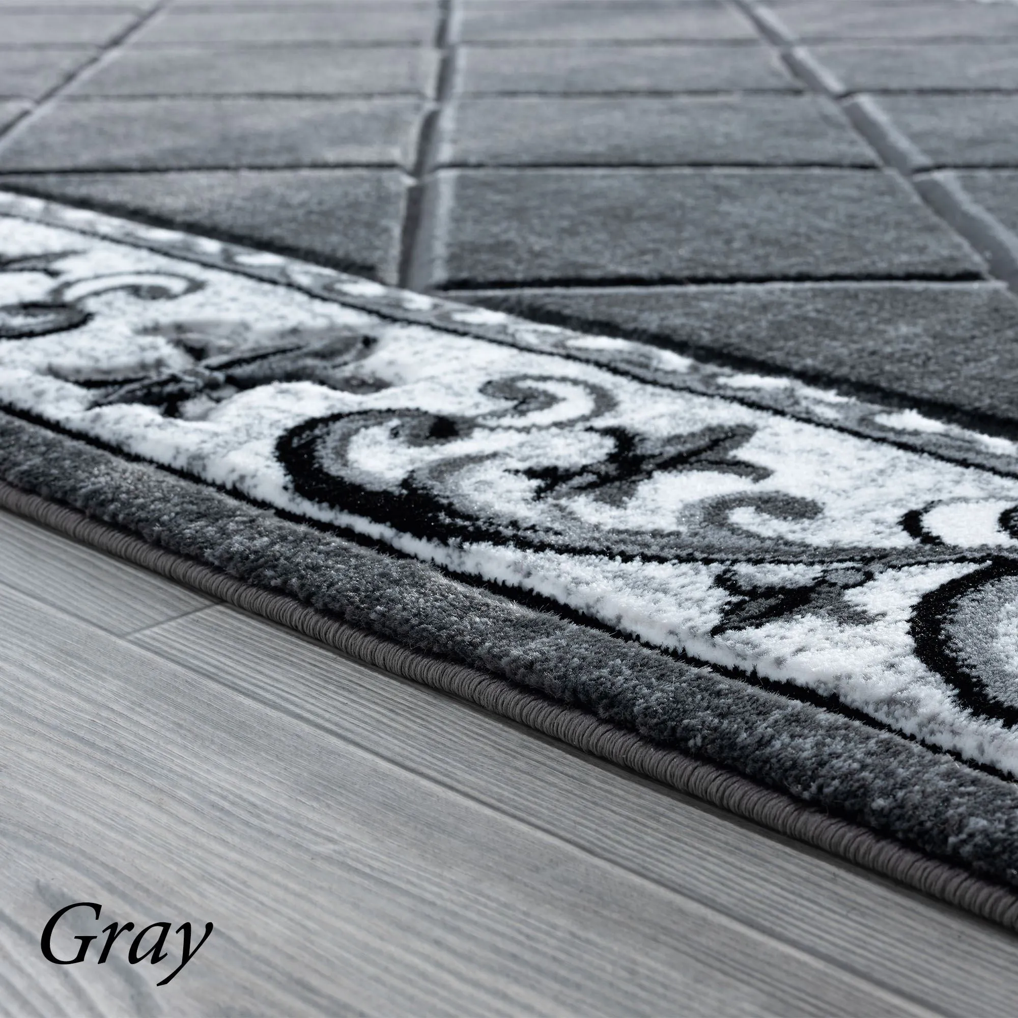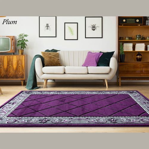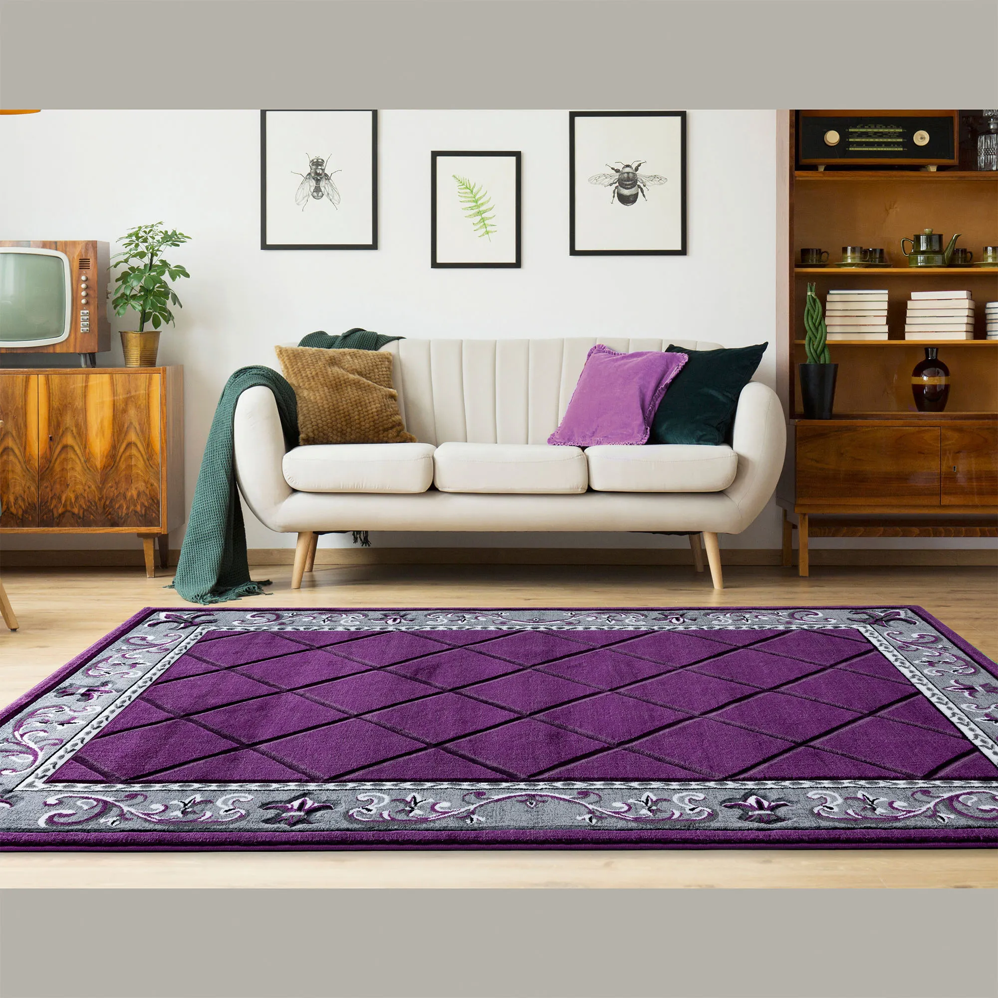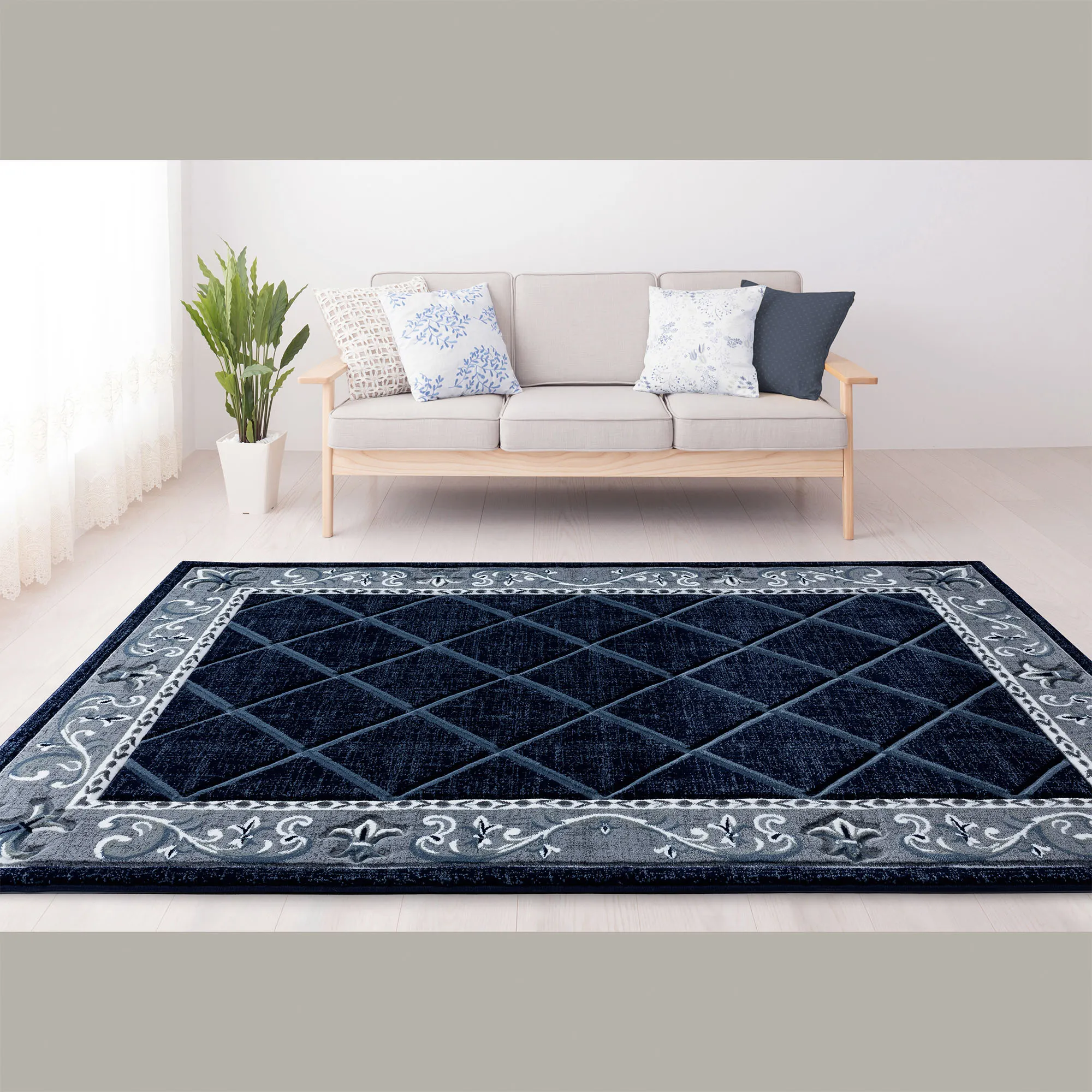 The Coopland Area Rug defines your floor with classic splendor. Power-loomed from polypropylene, the .75" thick rug features a solid color, handcarved diamond latticework field surrounded by an elegant gray scrollwork and fleur-de-lis frame. We recommend professional cleaning by a rug cleaner. Imported.