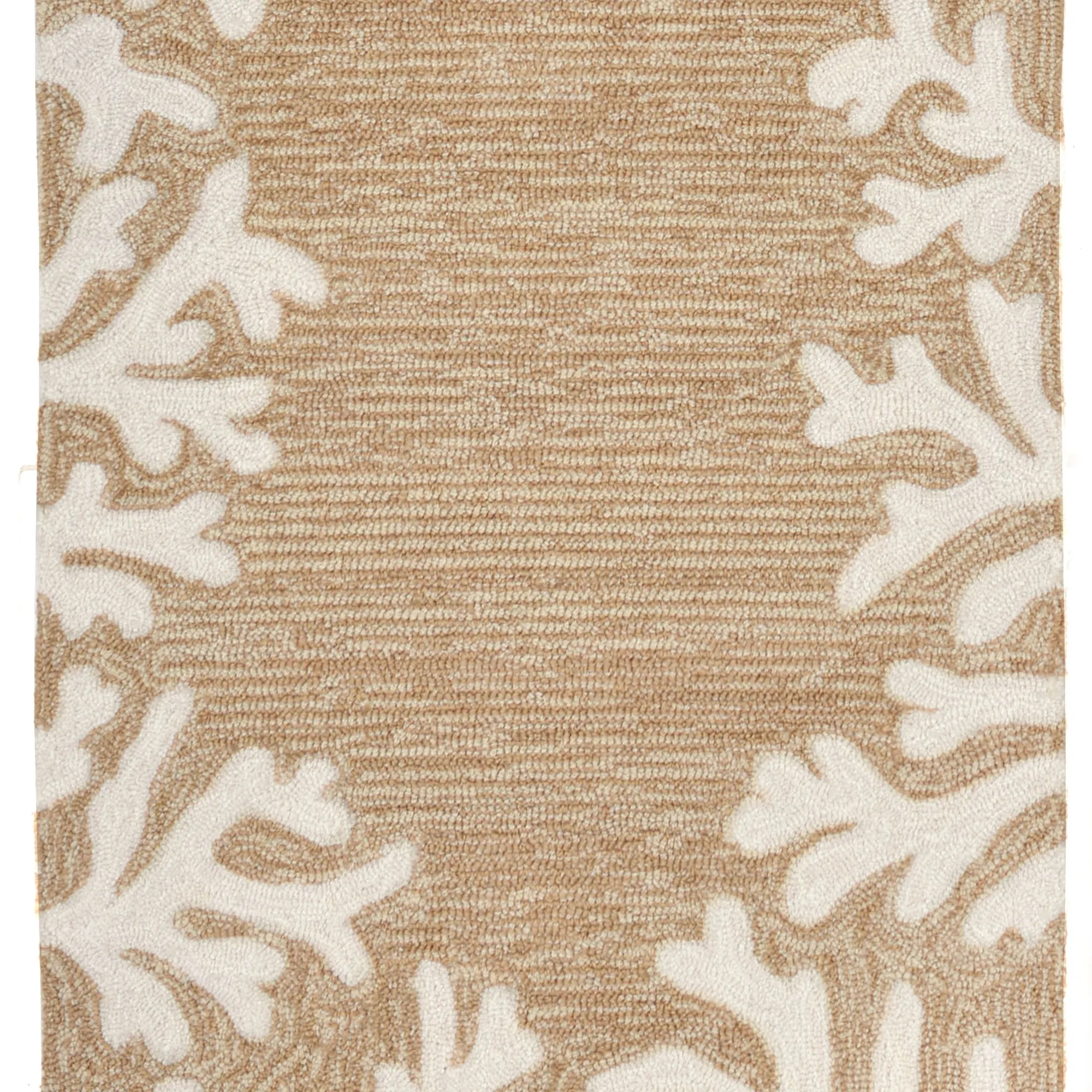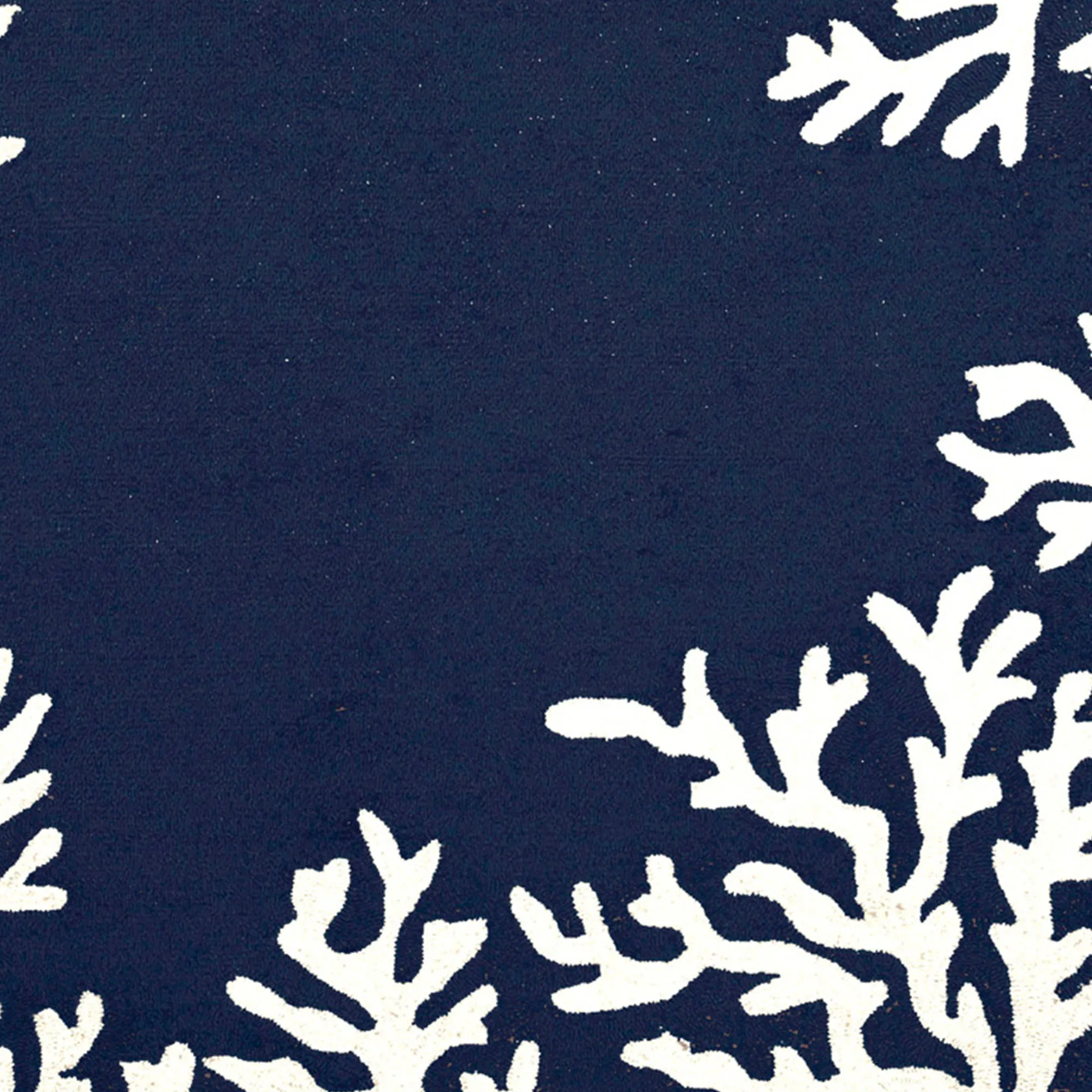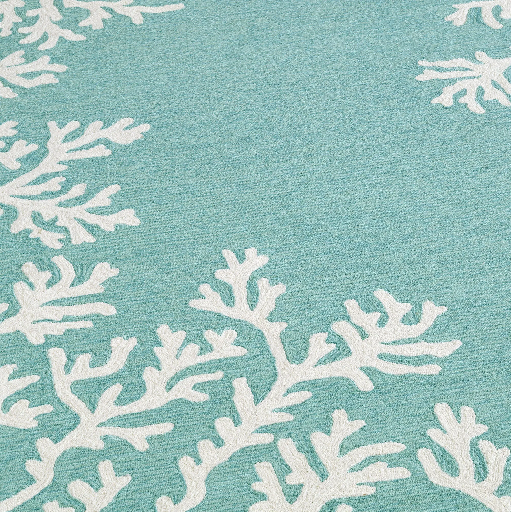 Framed with a Coral Reef Border, these aquatic-style round rugs feature treasures from the ocean's floor. Hand-tufted of polyester/acrylic, these indoor/outdoor Everywear(TM) rugs, .625" thick, are UV-stabilized and have an ivory design. Spot clean and rinse with a garden hose; for stubborn stains, we recommend professional cleaning by a rug cleaner. Do not expose these rugs to freezing temperatures. Imported.