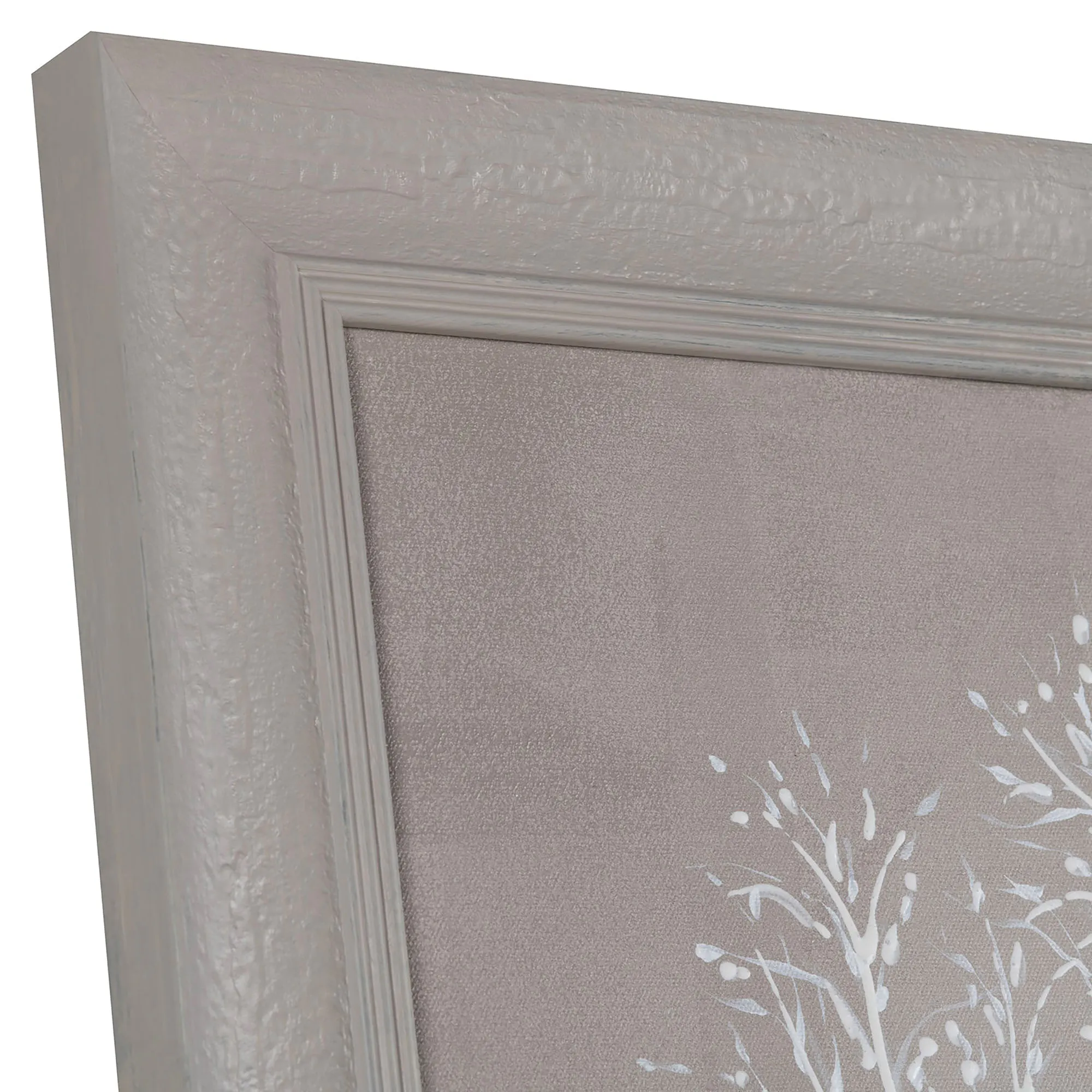 • Features white coral trees on beige canvases