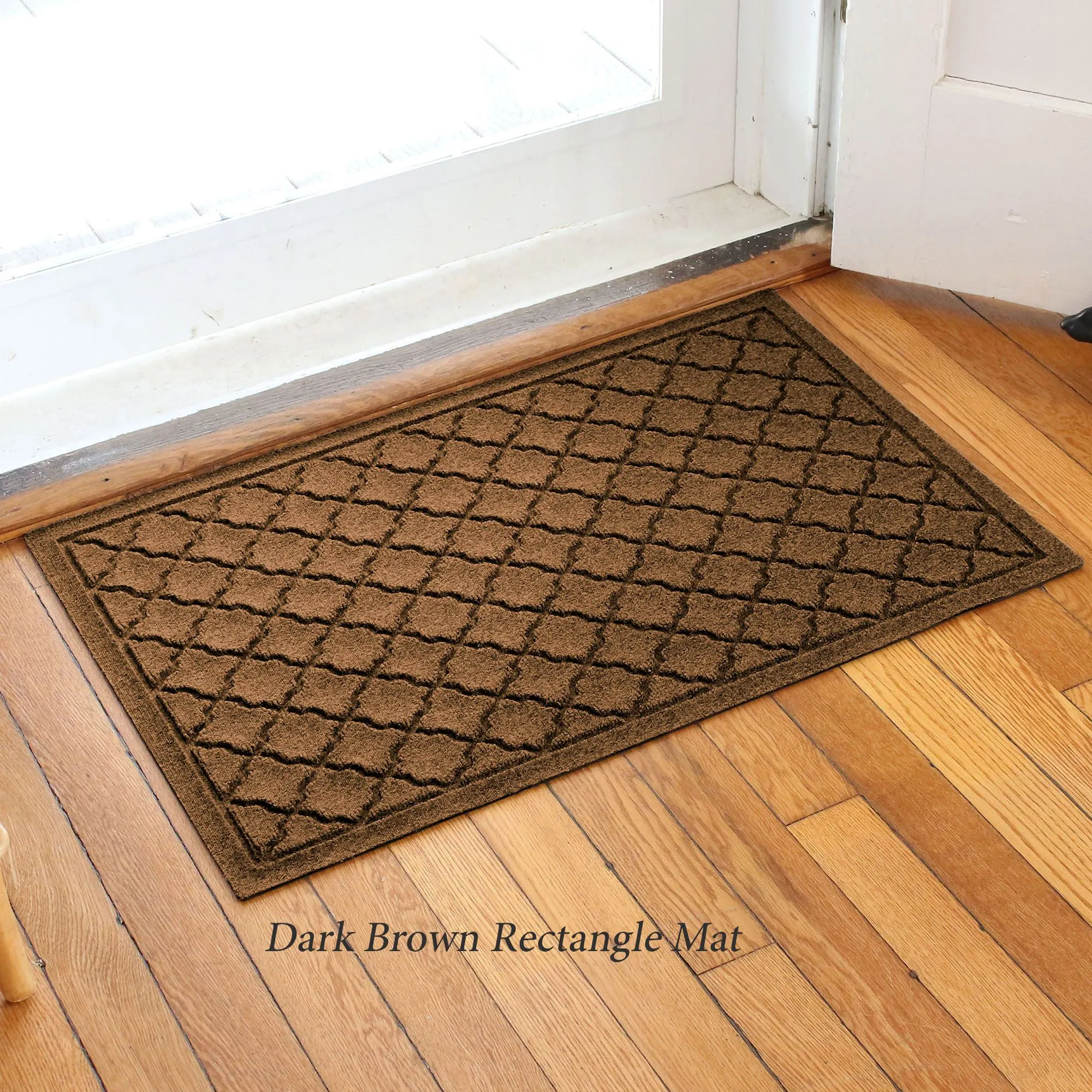 Also available: All-Over Quatrefoil Doormat, Slice Mat, Stair Tread Set of 4, Estates Doormat, Monogram Doormat, Boot Tray Mat, and Extra-Large Mat. The Monogram Doormat features your initial monogram in the center circle emblem; specify one initial A-Z. The Boot Tray Mat easily absorbs snow and water, scrapes away dirt and debris via the high-low surface texture, and holds up to one gallon or square yard of water; only available in Charcoal, Dark Brown, Gray, Khaki, and Slate Blue.