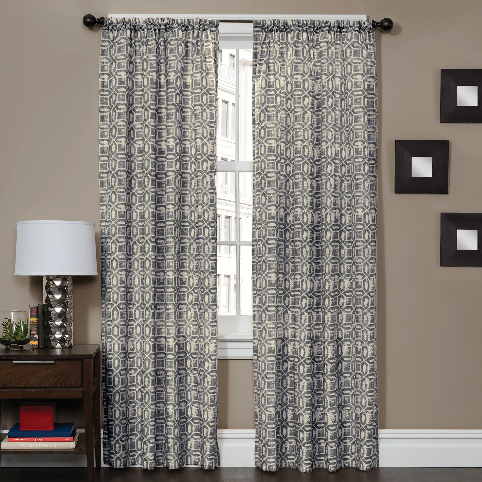 Bold and ivory hues converge on the Corella Curtain Panel to create a digital-inspired geometric pattern. Each woven polyester panel has a contemporary, current style with tailored edges and a 3" rod pocket. Sold individually, each panel measures 52"W. Machine washable. Imported.