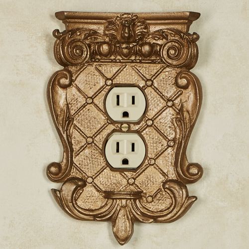 The handcrafted Corinthian Aged Gold Single Outlet, with a flat-topped pedestal design, lets you bring a touch of classical grace to your room. This handpainted resin outlet cover has an aged gold finish and features a variety of classic motifs, including a lattice pattern, fleur-de-lis, leaf scrolls, volutes, and egg and dart designs. Measures 5"Wx7.5"H. Do not over-tighten the screw.