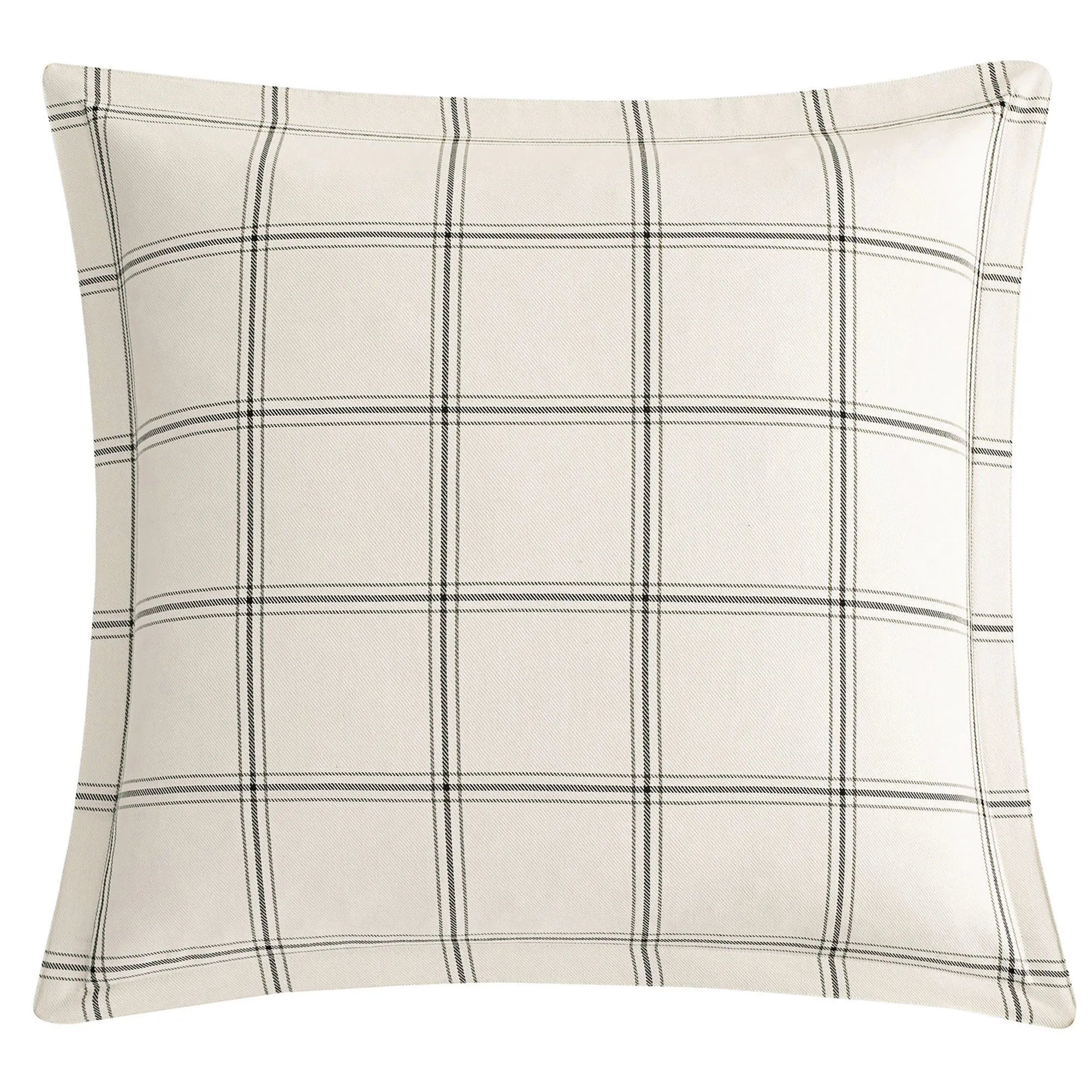 Reversible European Sham is off-white and black windowpane plaid polyester/cotton with flanged edges; zipper closure.