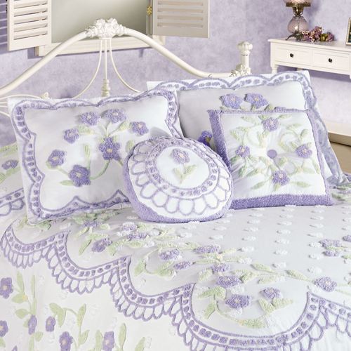 Cottage Garden Lavender Chenille Floral Bedding Accessories
