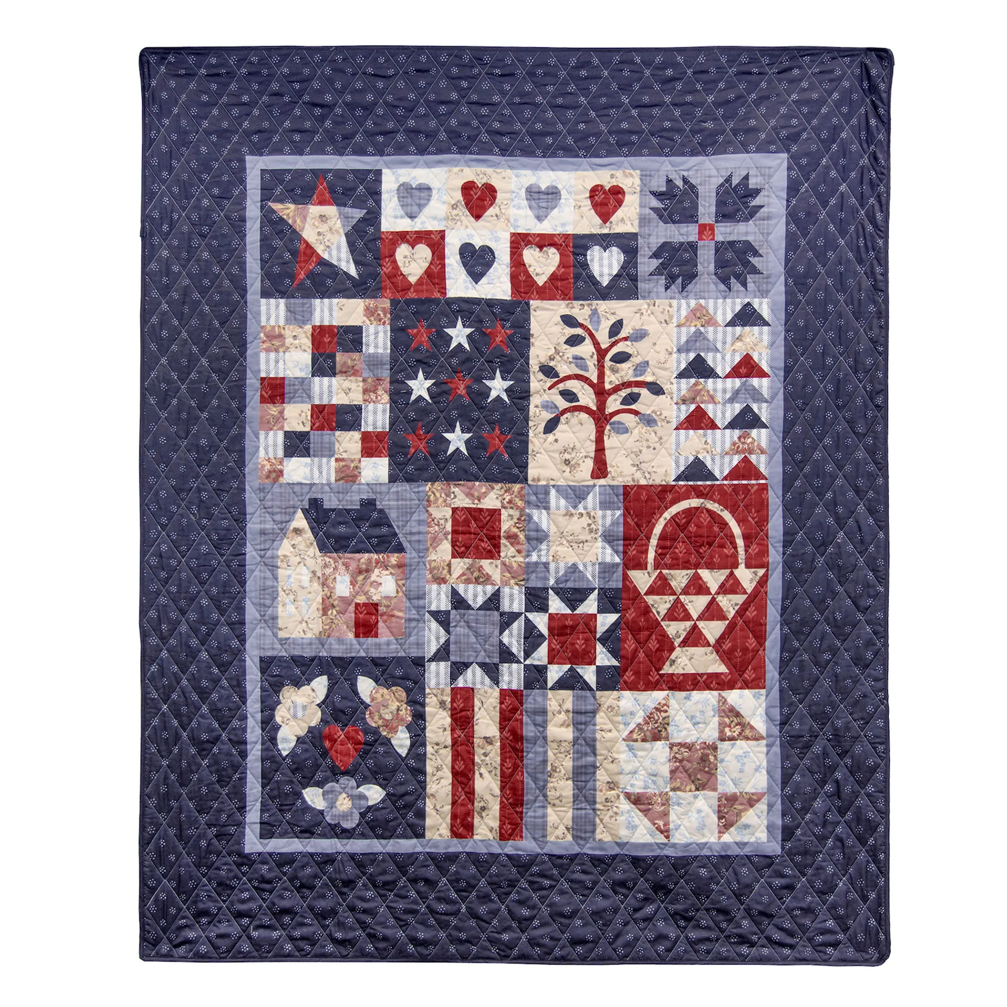 Create a cozy, rustic retreat with the County Fair Bedding from Your Lifestyle(R) by Donna Sharp(R). The Mini Quilt Set includes a quilt and sham(s). The charming polyester quilt features blocks of printed heart, basket, star, flower, tree, plaid, stripe, mini floral, and solid designs. Sweet shades include red, blue, white, beige, rosewood, and dark blue. Quilt has all-over diamond quilting and a solid dark blue backing. Fill is cotton/polyester. Machine washable. Imported.