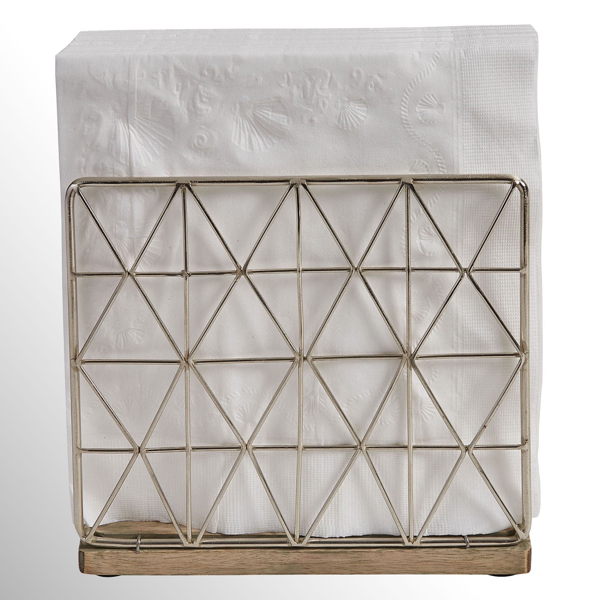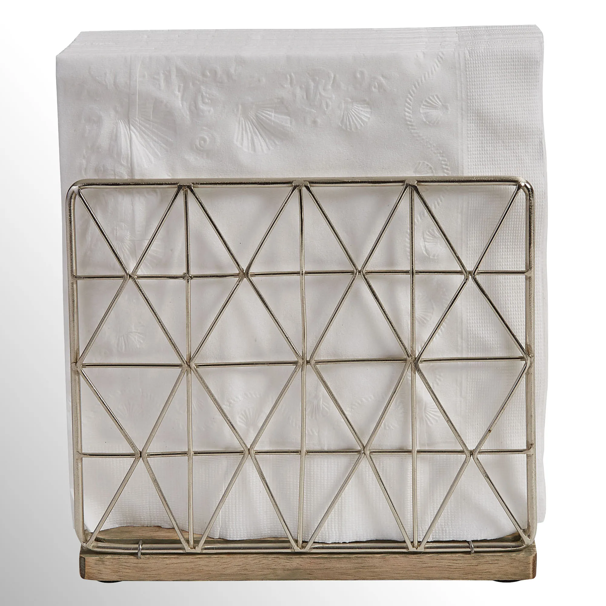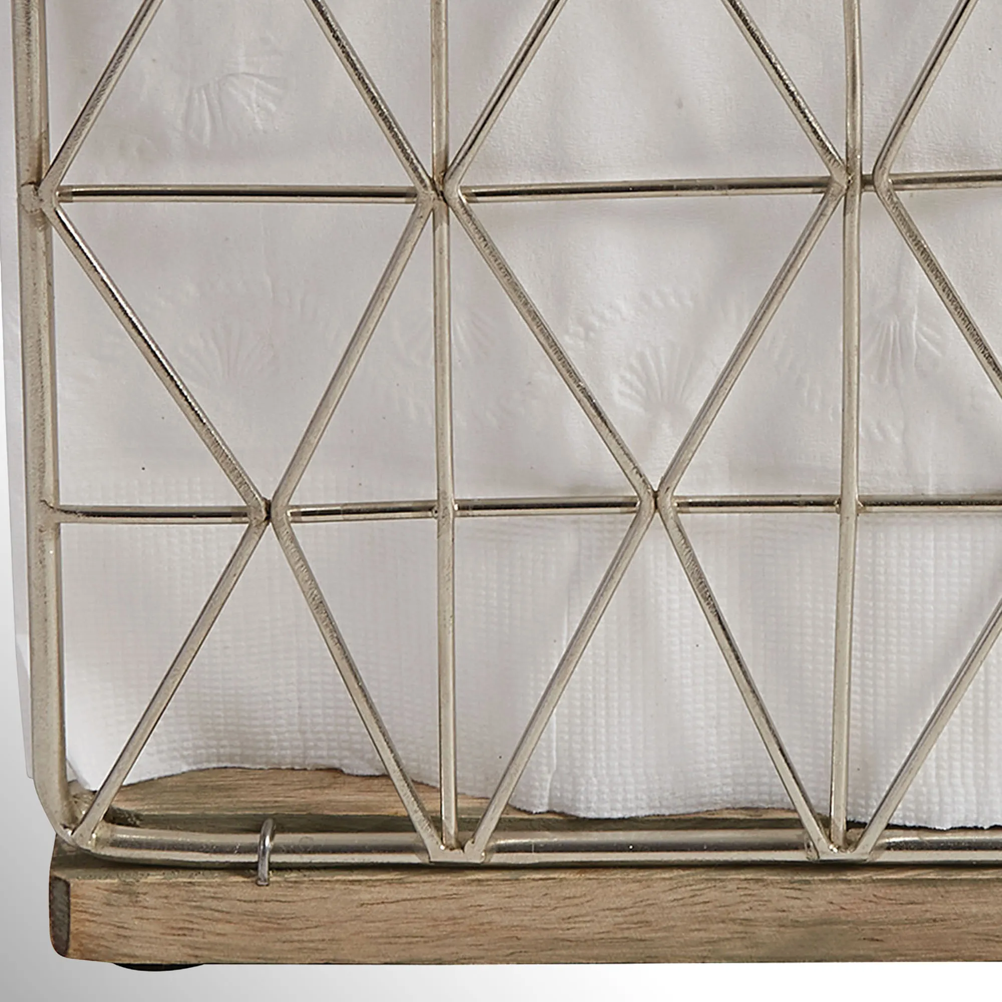 Crestwood Silver Geometric Metal and Wood Napkin Holder
