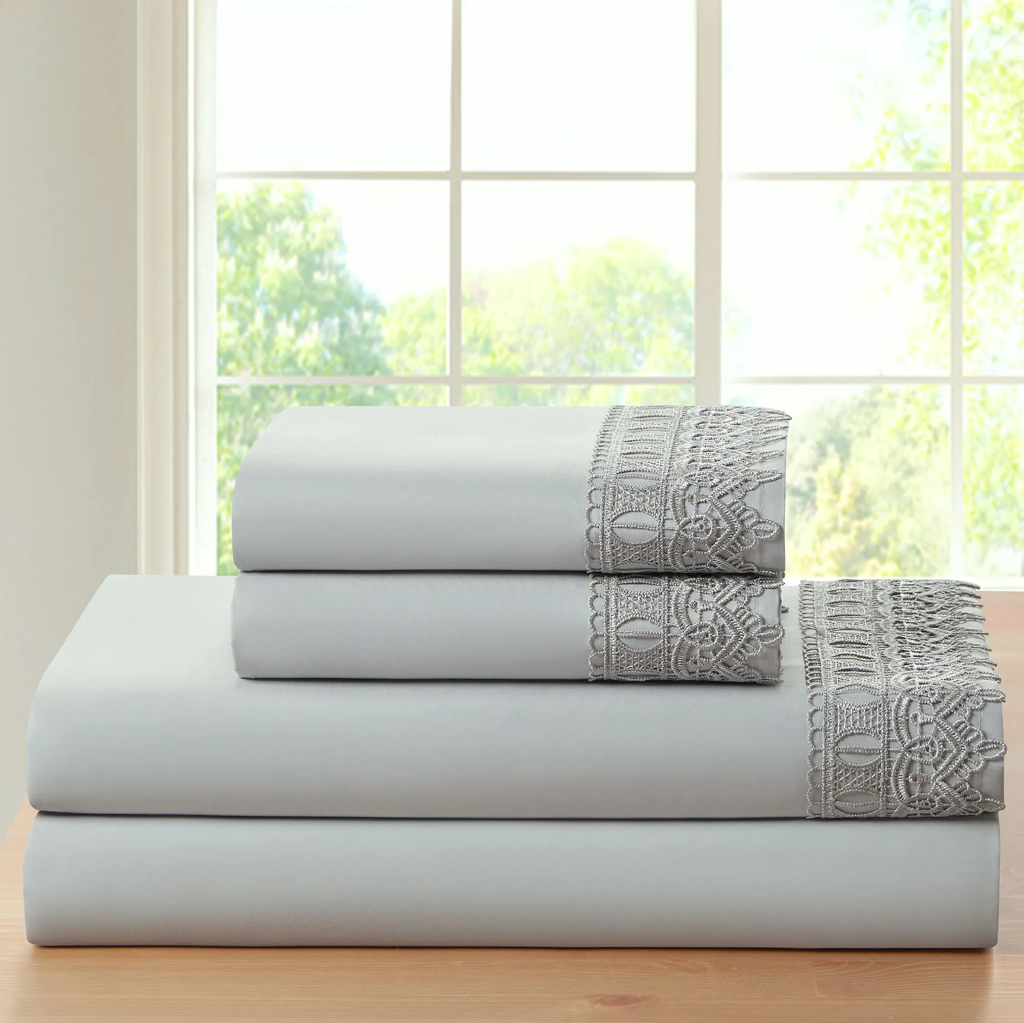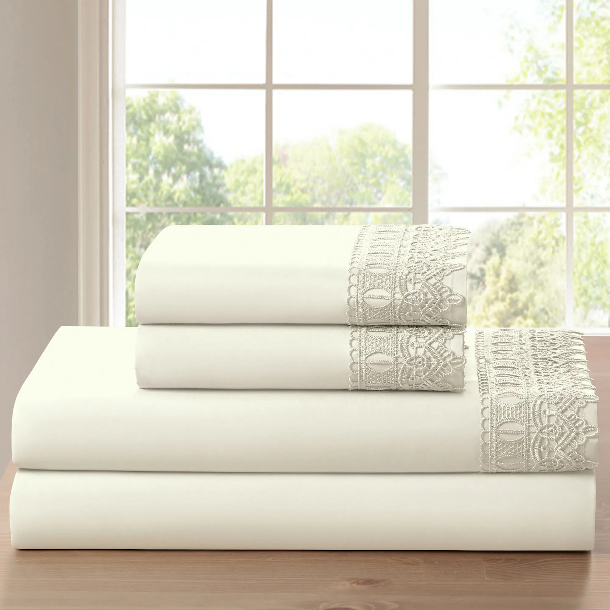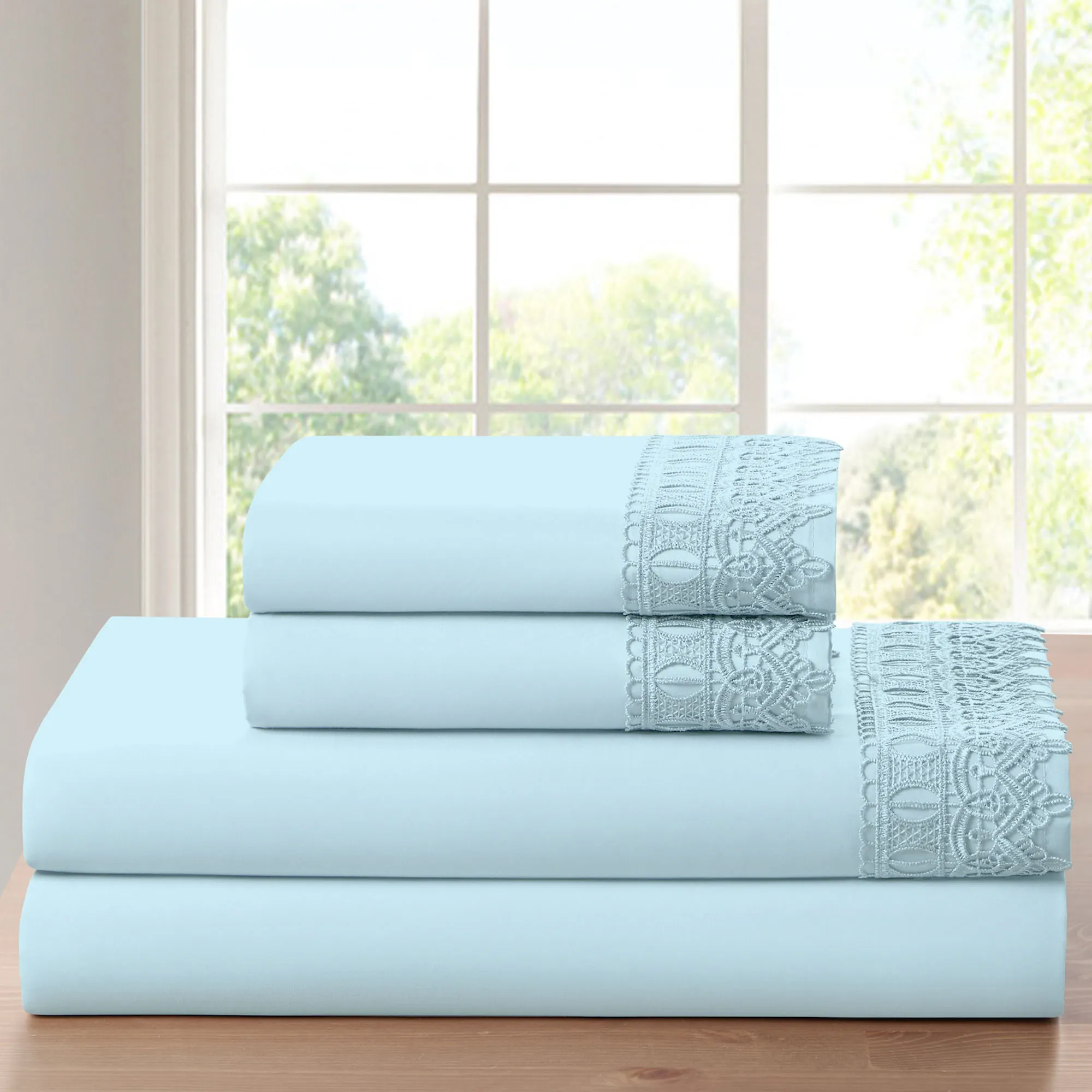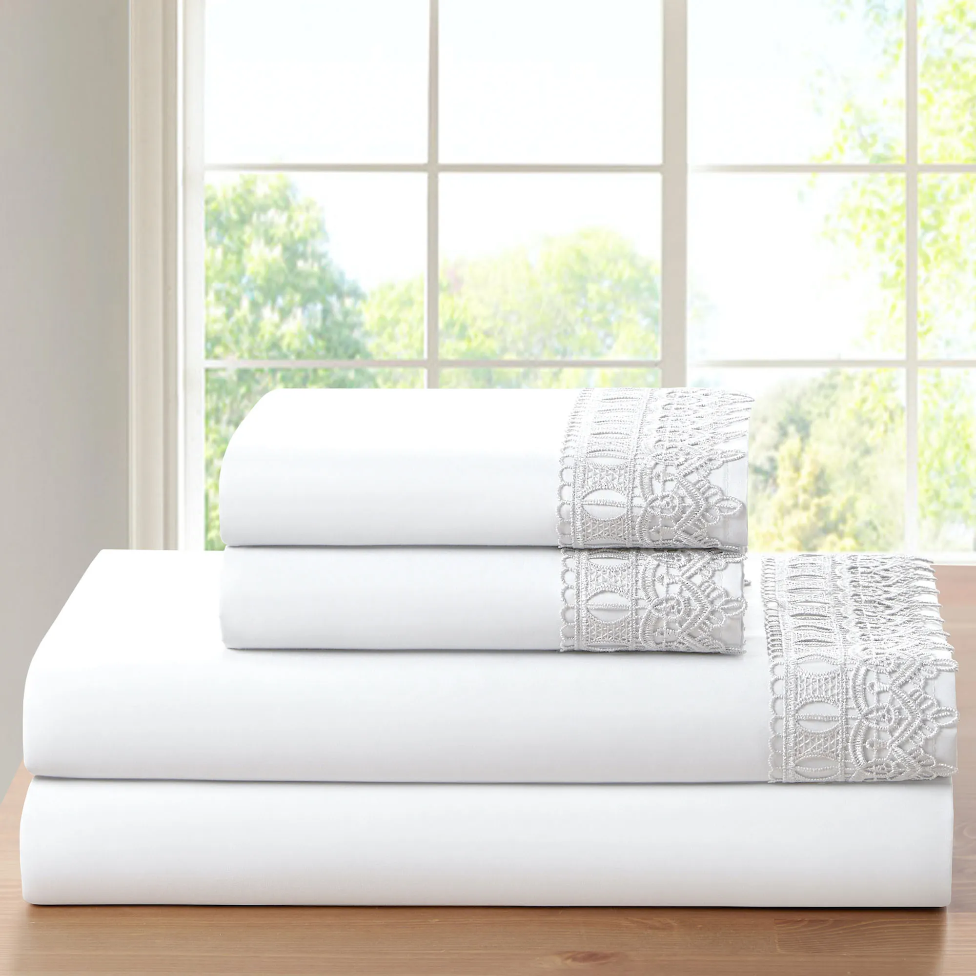 • Flat sheet and pillowcase(s) have a crochet lace overlay