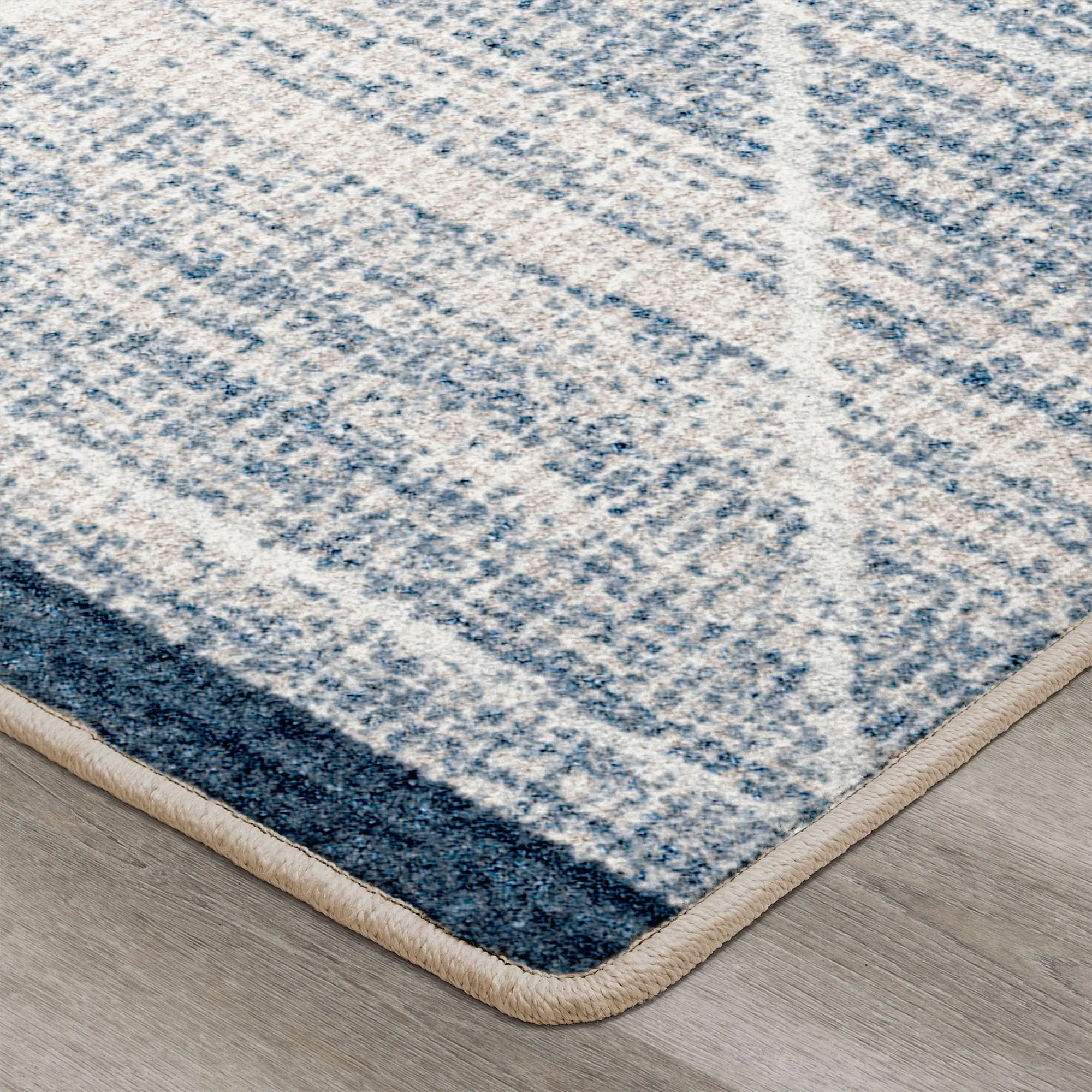 Cross Tie Blue Lattice Stain Resistant Area Rugs
