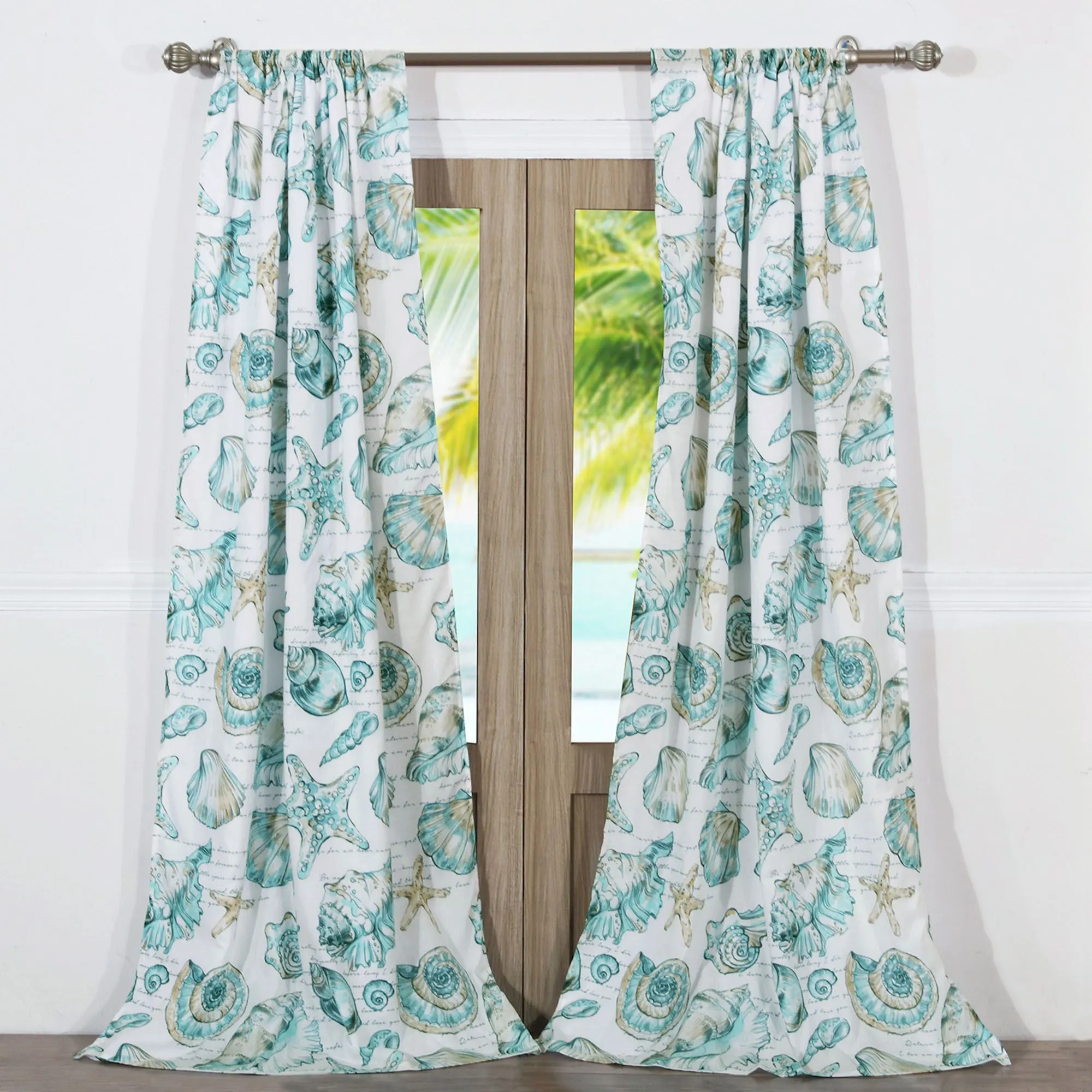 Cruz Turquoise Seashell Coastal Lined Window Treatment