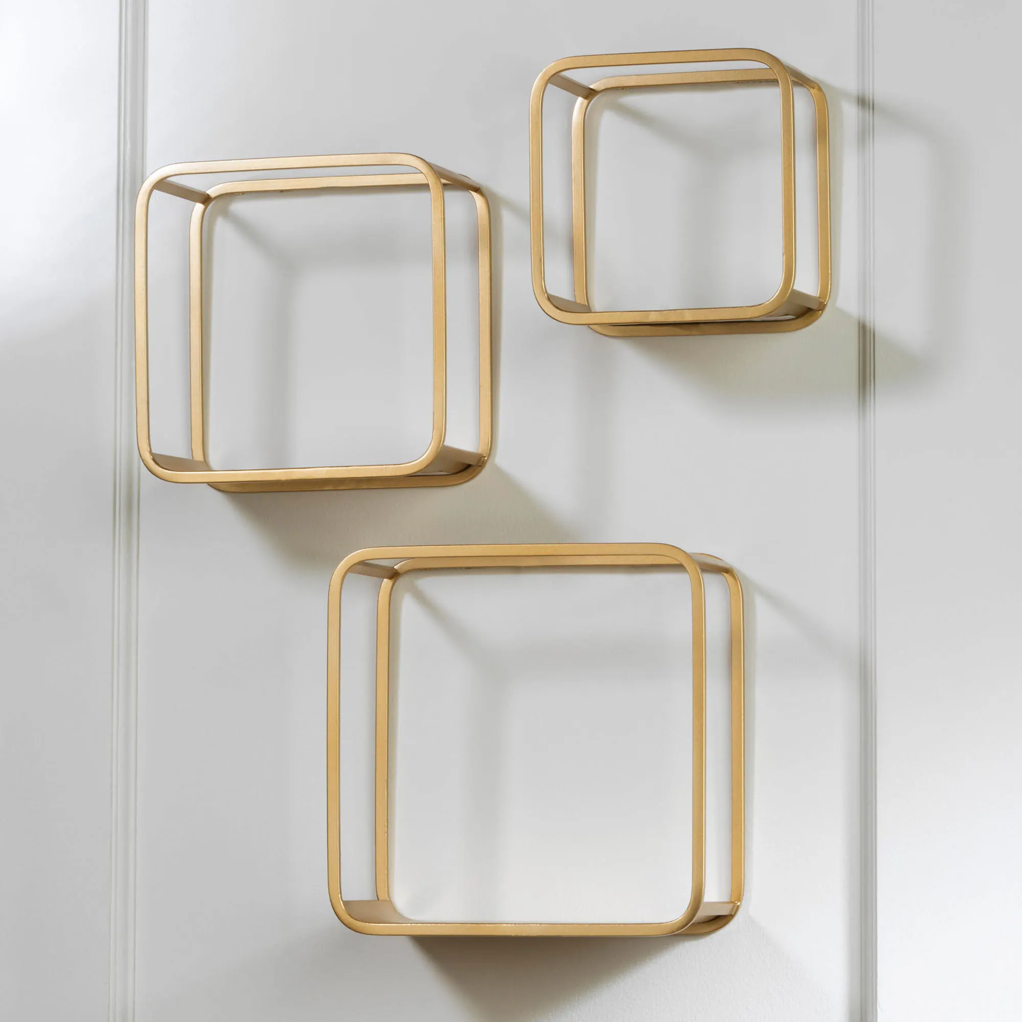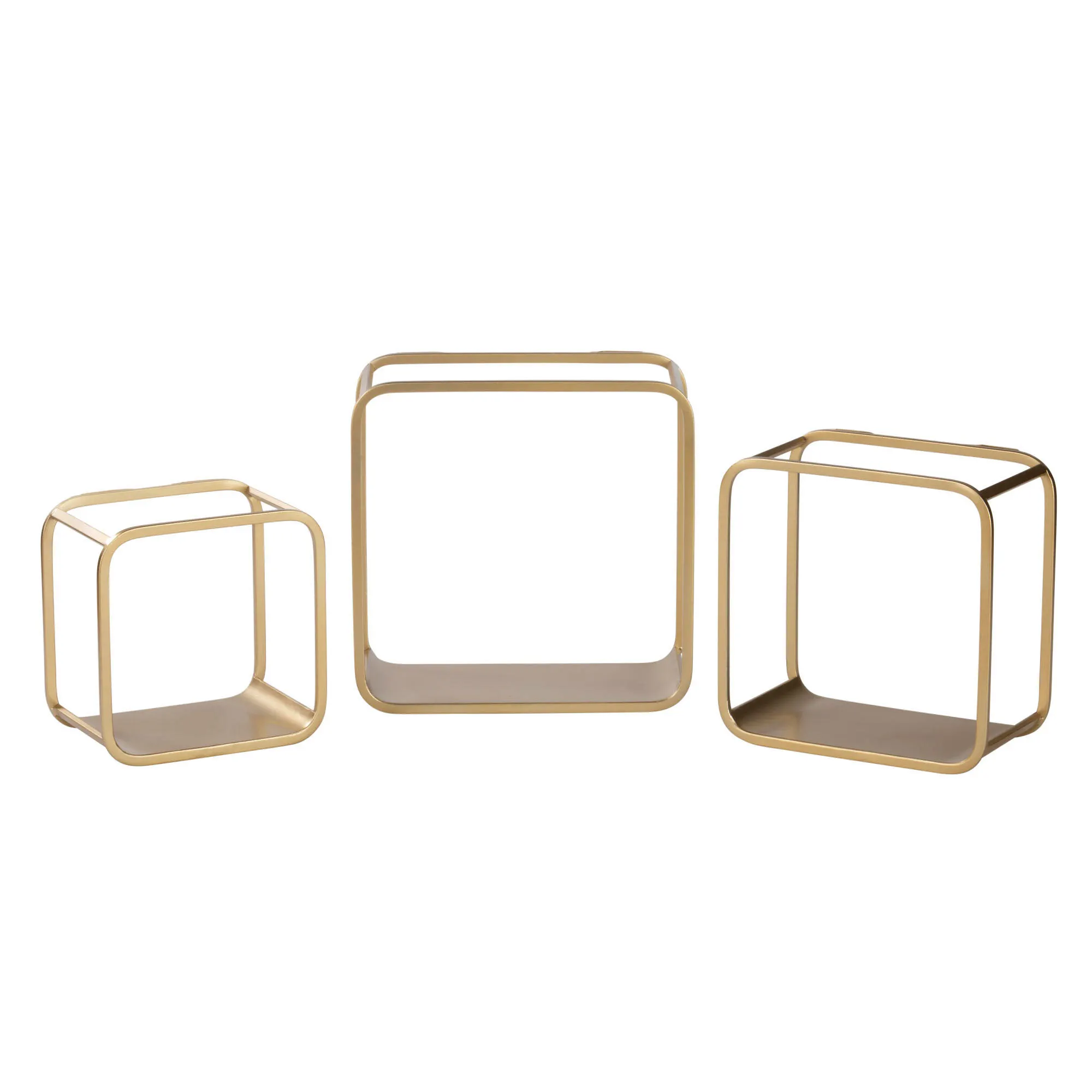 Gold Metal Openwork Cube Wall Display Shelf Set of 3