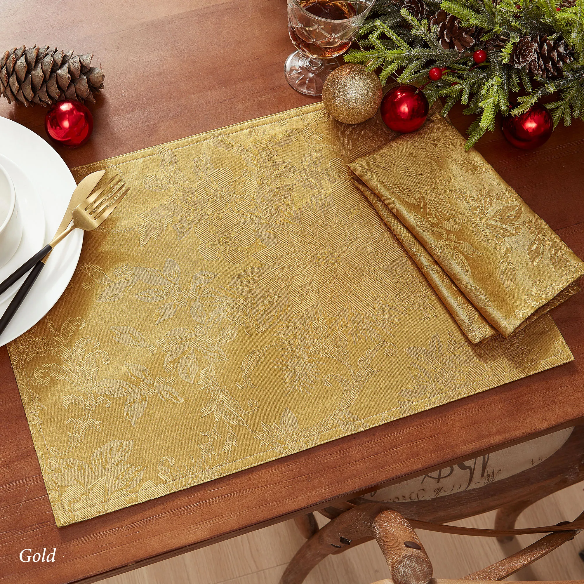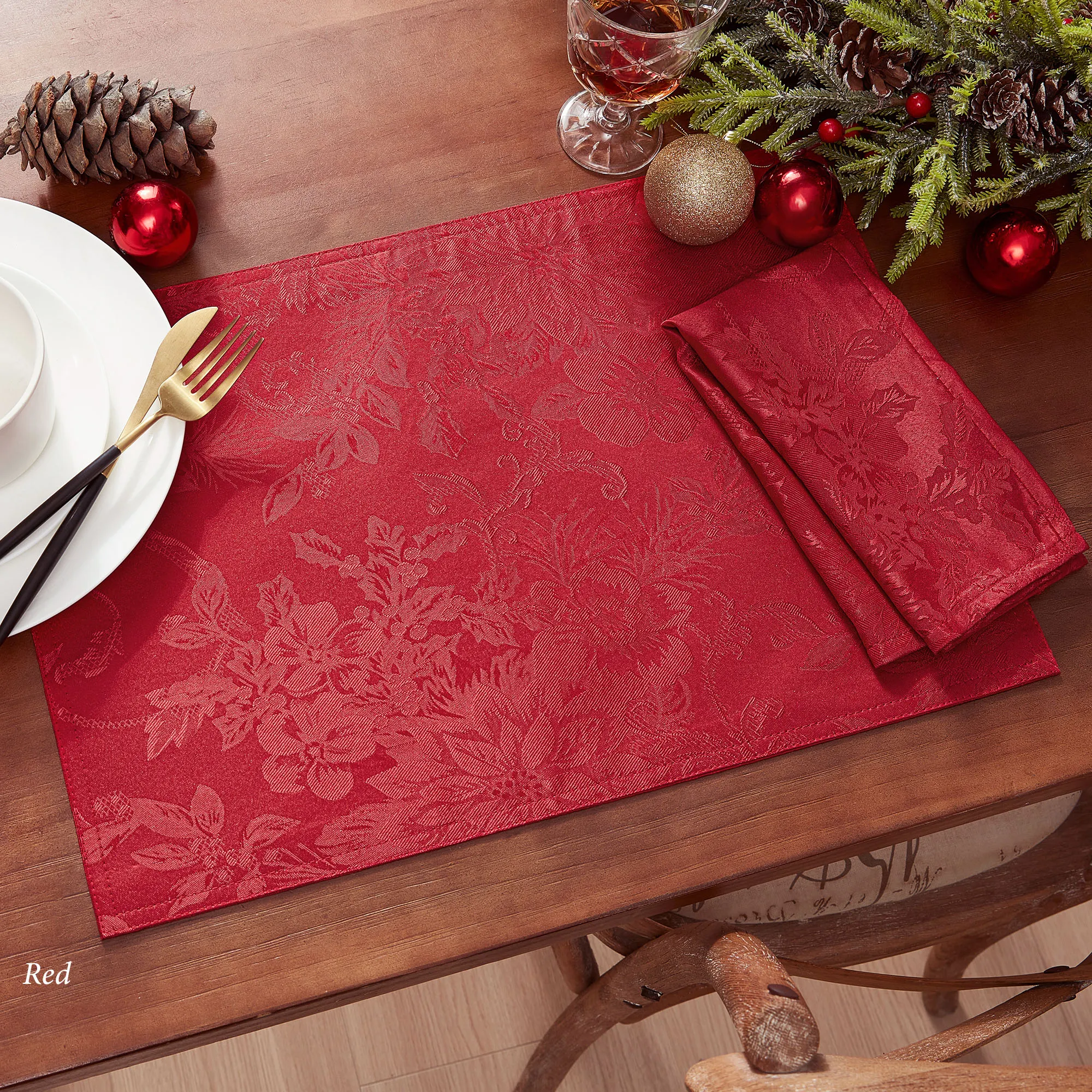 Dainty Poinsettia Holiday Placemat Sets and Napkin Sets