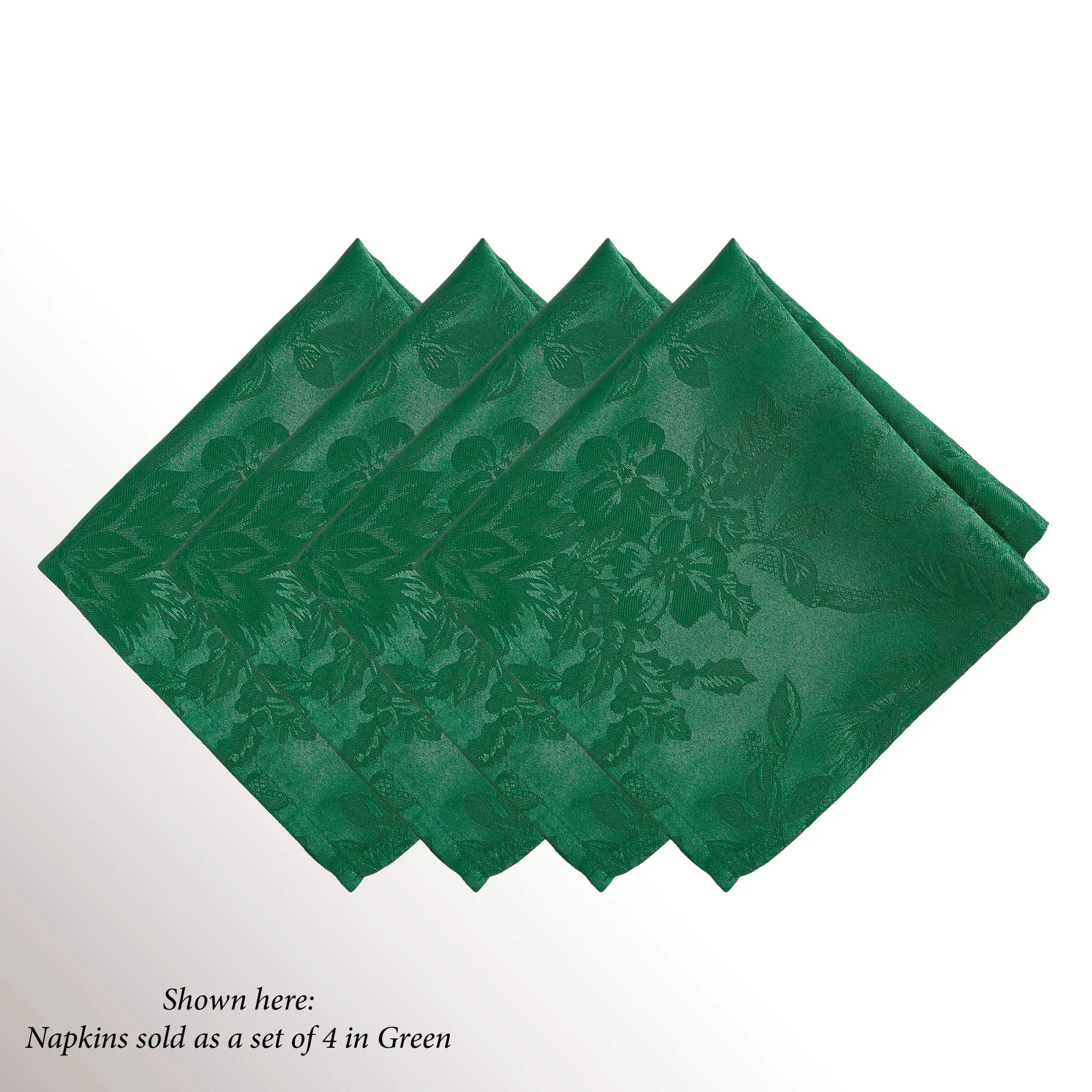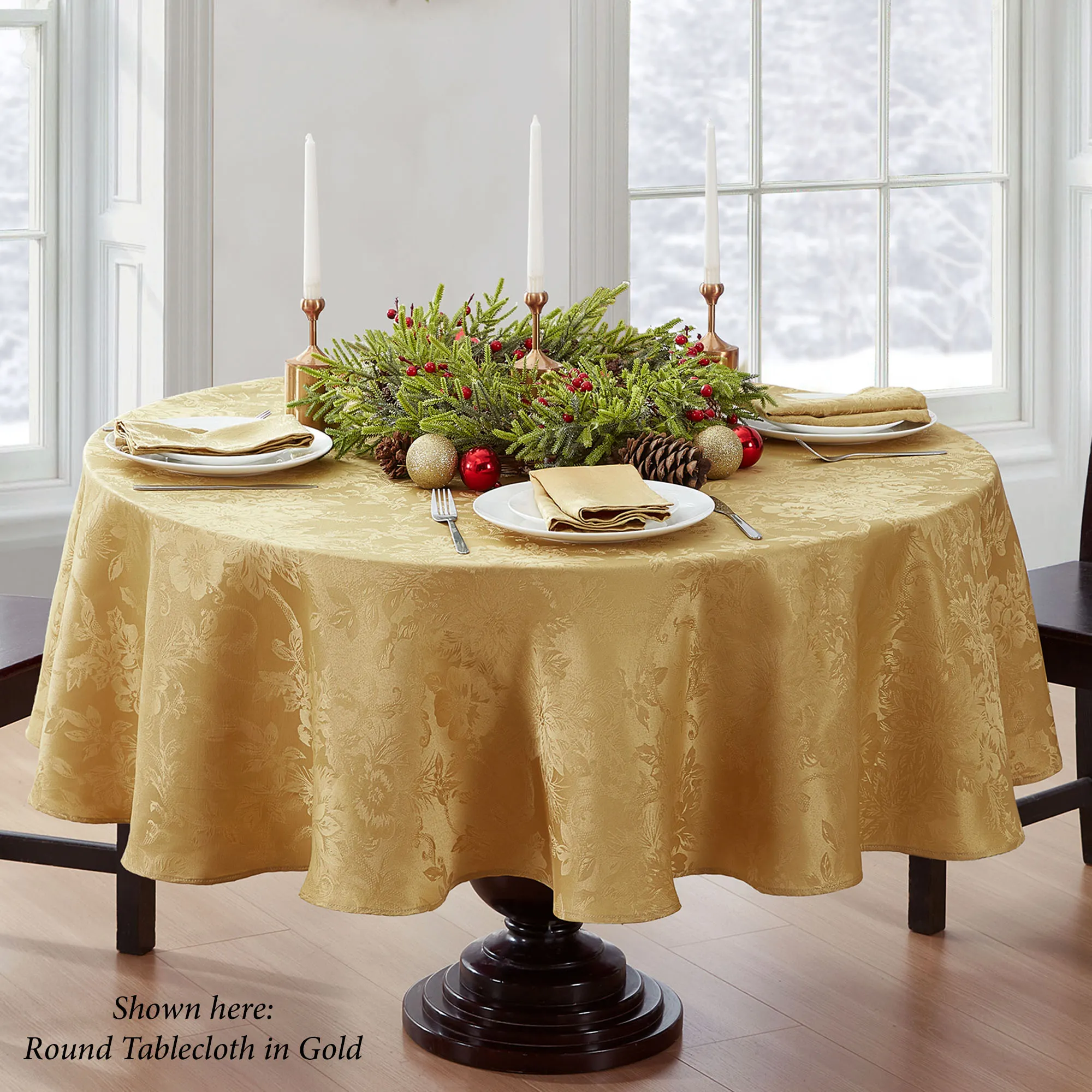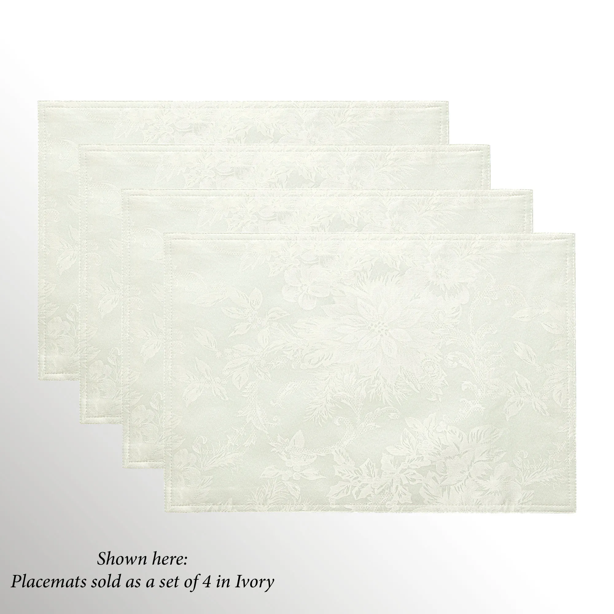The Dainty Poinsettia Table Linens easily decorate any tablescape with holiday splendor. These tabletop accessories feature a woven-jacquard poinsettia design and have hemmed edges. The heavyweight polyester fabric has an elegant drape. Choose Table Runner, Rectangle Tablecloth, Round Tablecloth, Oval Tablecloth, Placemat Set of 4, or Napkin Set of 4. Machine washable. Imported.