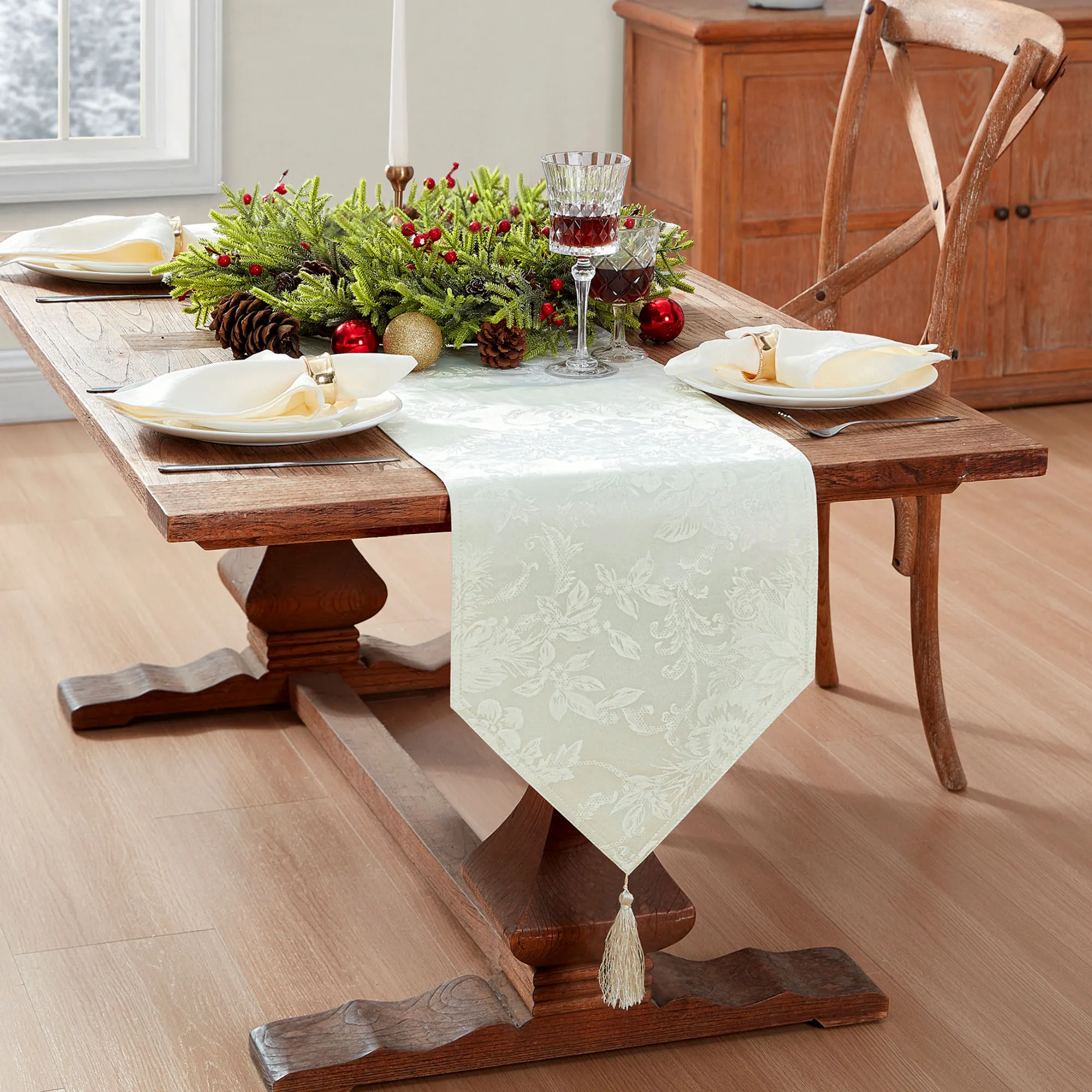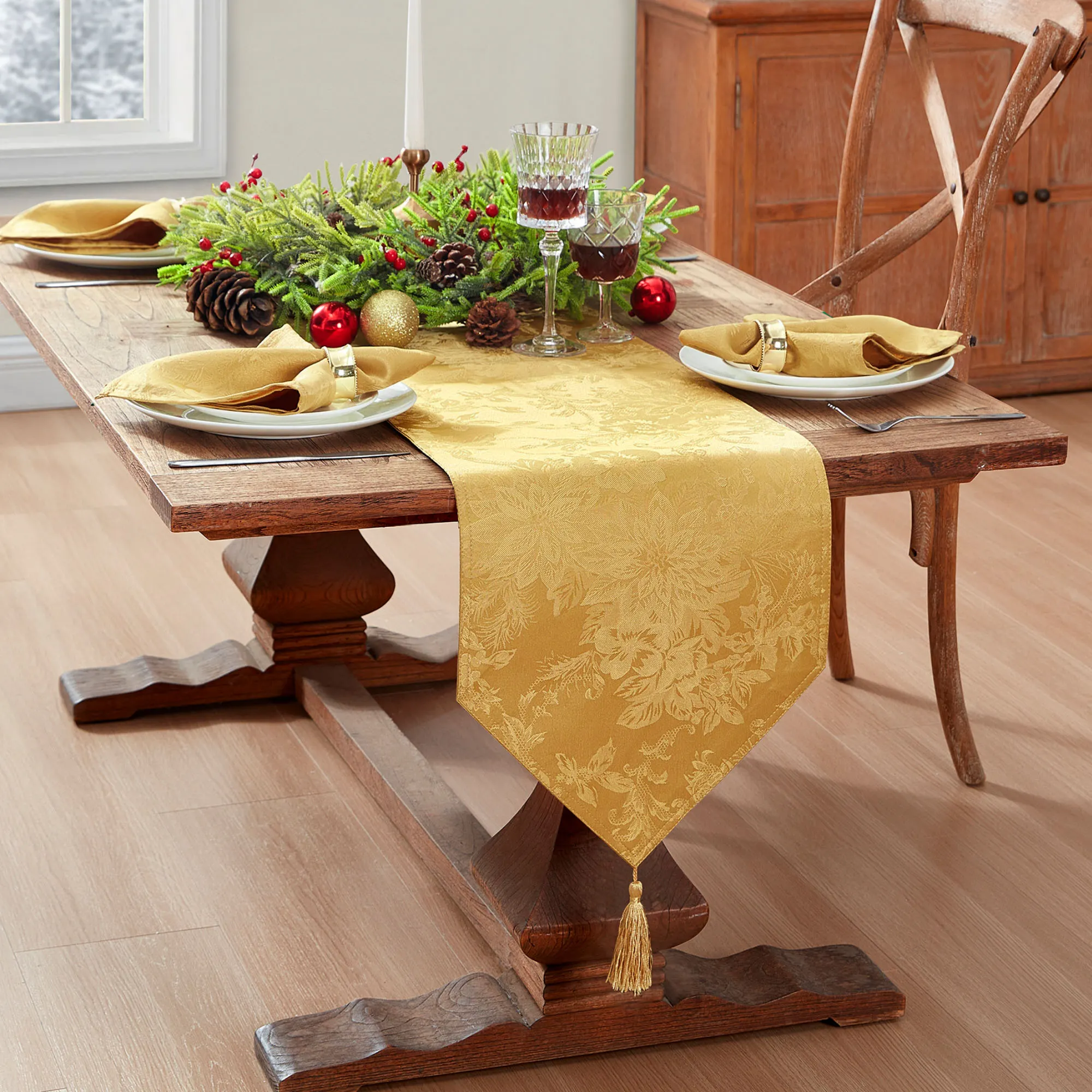 Dainty Poinsettia Holiday Table Runner and Table Linens