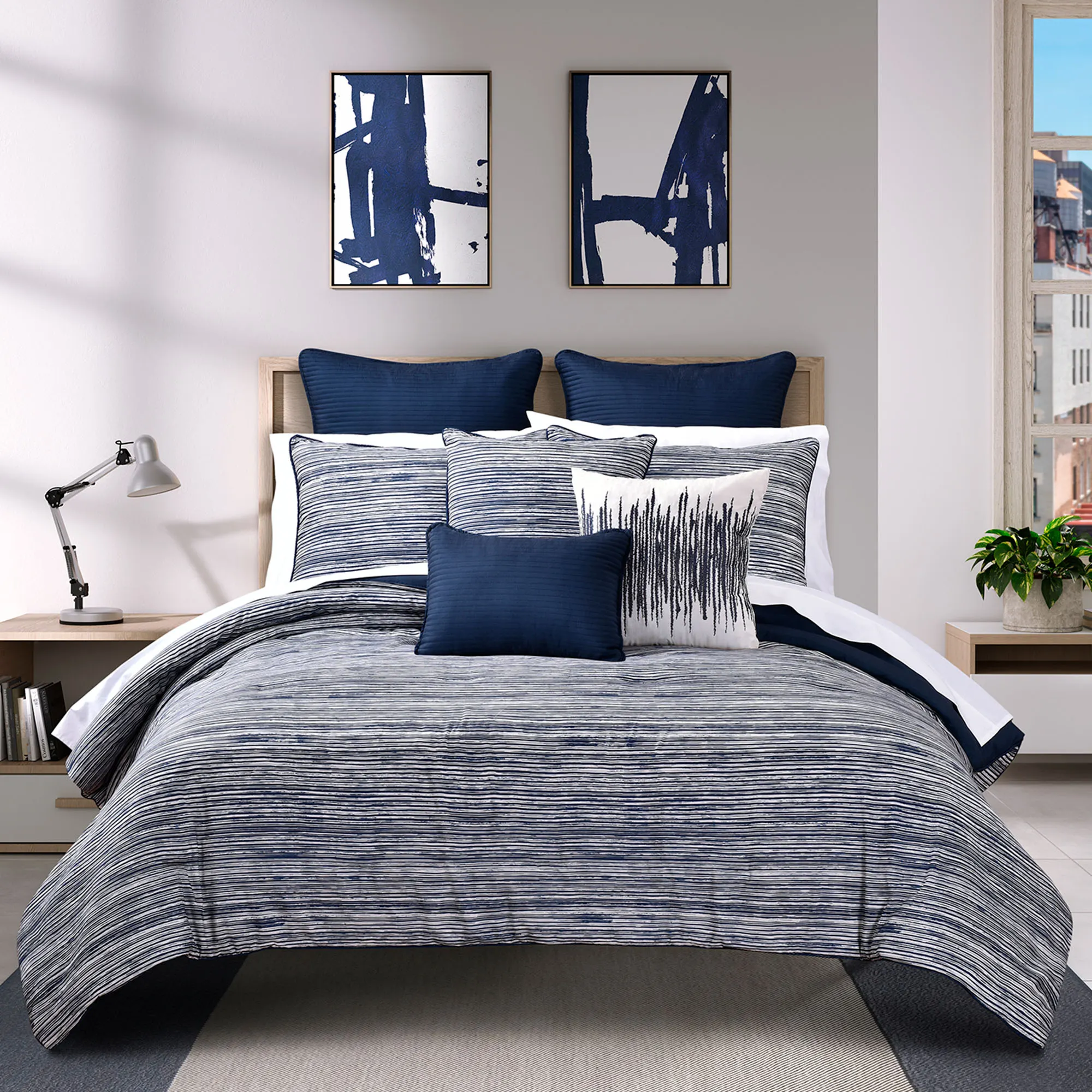 Dalton Navy Abstract Striped Comforter Set Bedding from Royal Court