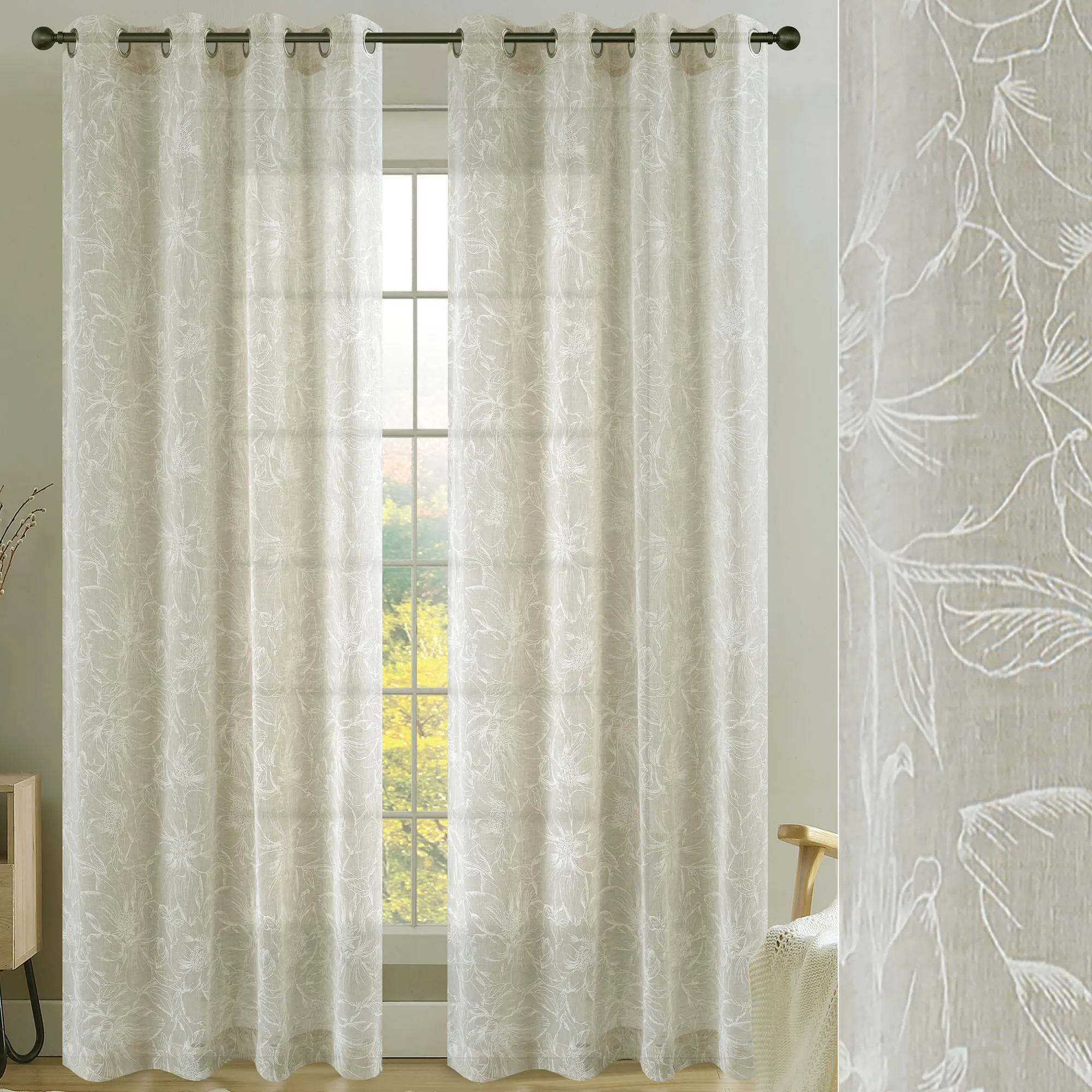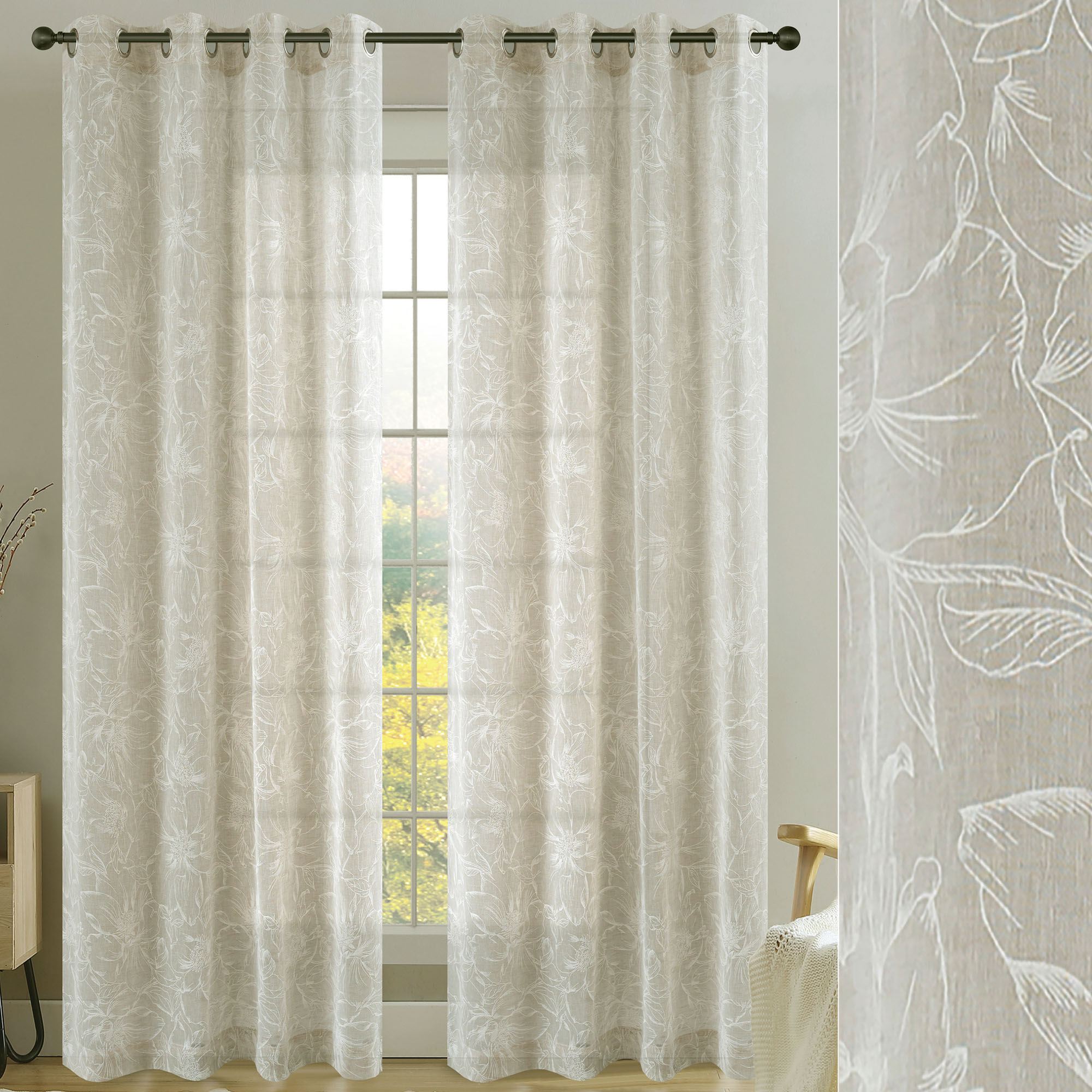 Daneen Light Taupe Floral Light Filtering Grommet Curtain Panel
