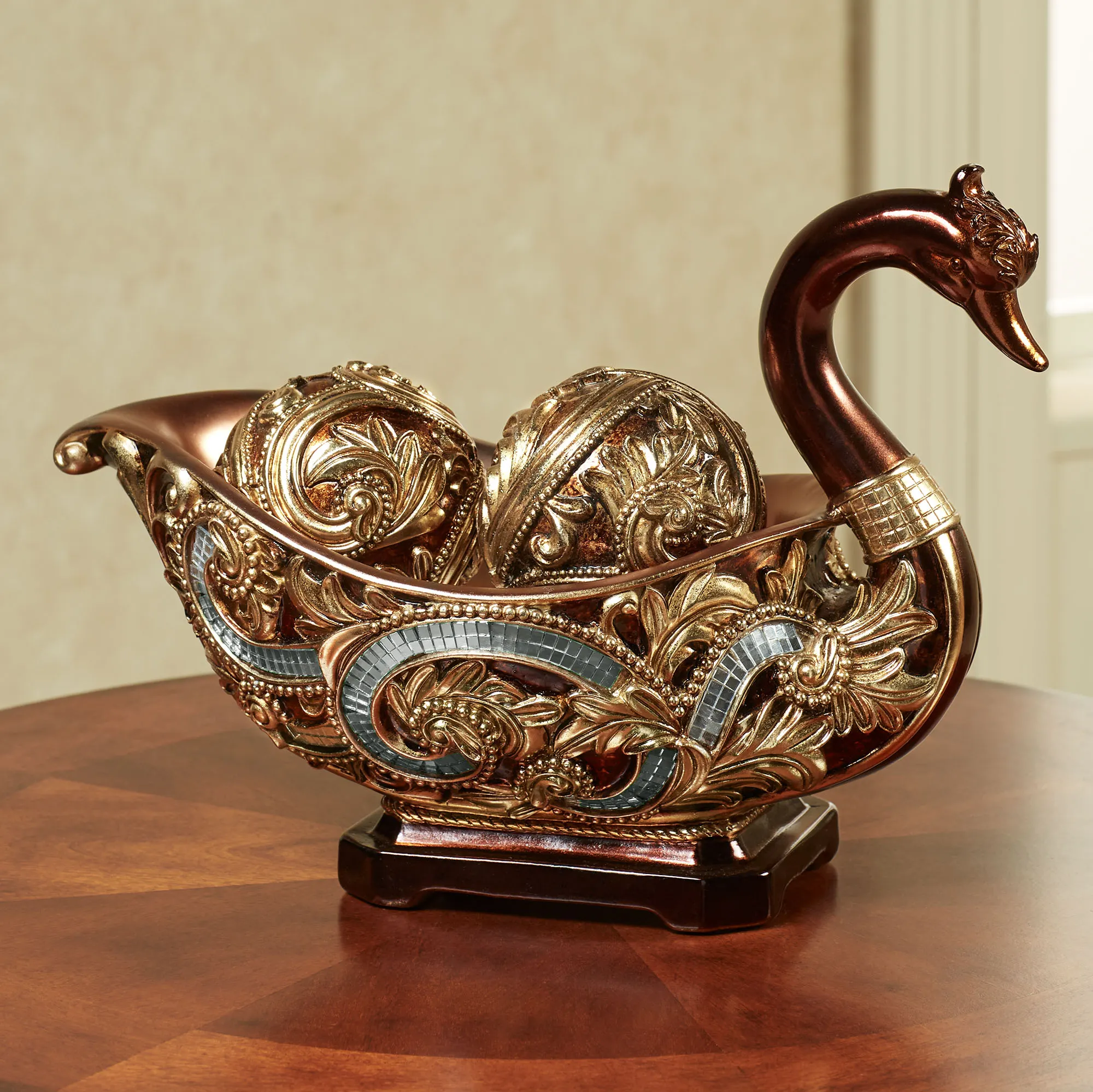 Daniella Swan Shaped Decorative Centerpiece Bowl with Orbs Set