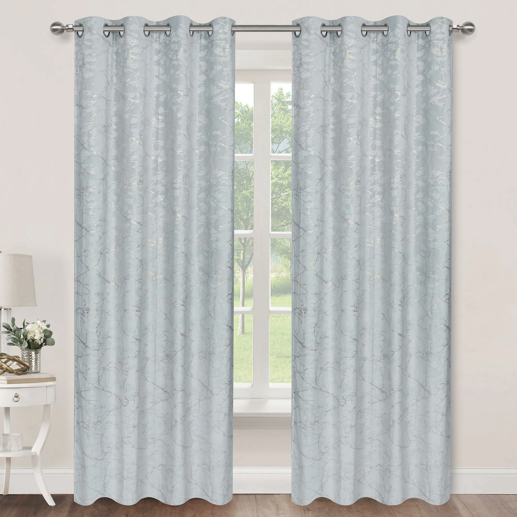 Dansington Polyester Velvet Wide Grommet Curtains with Printed Foil Designs