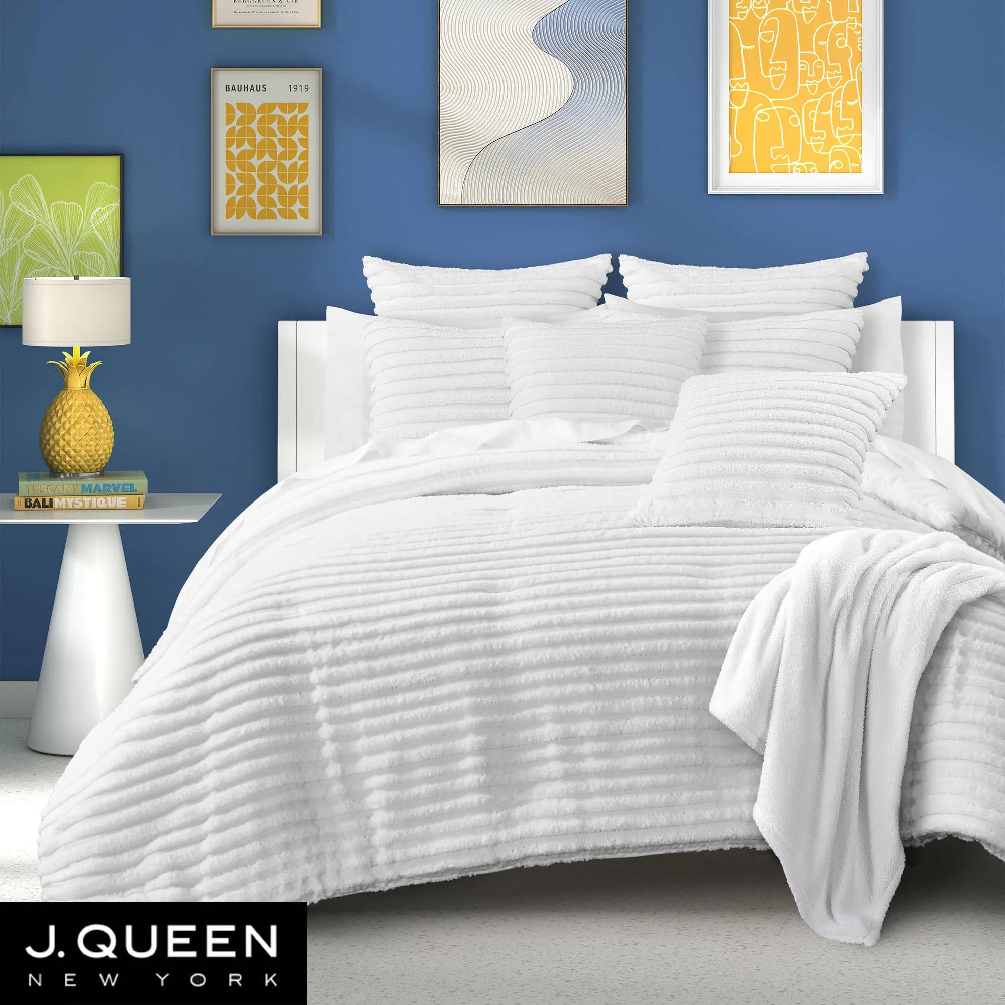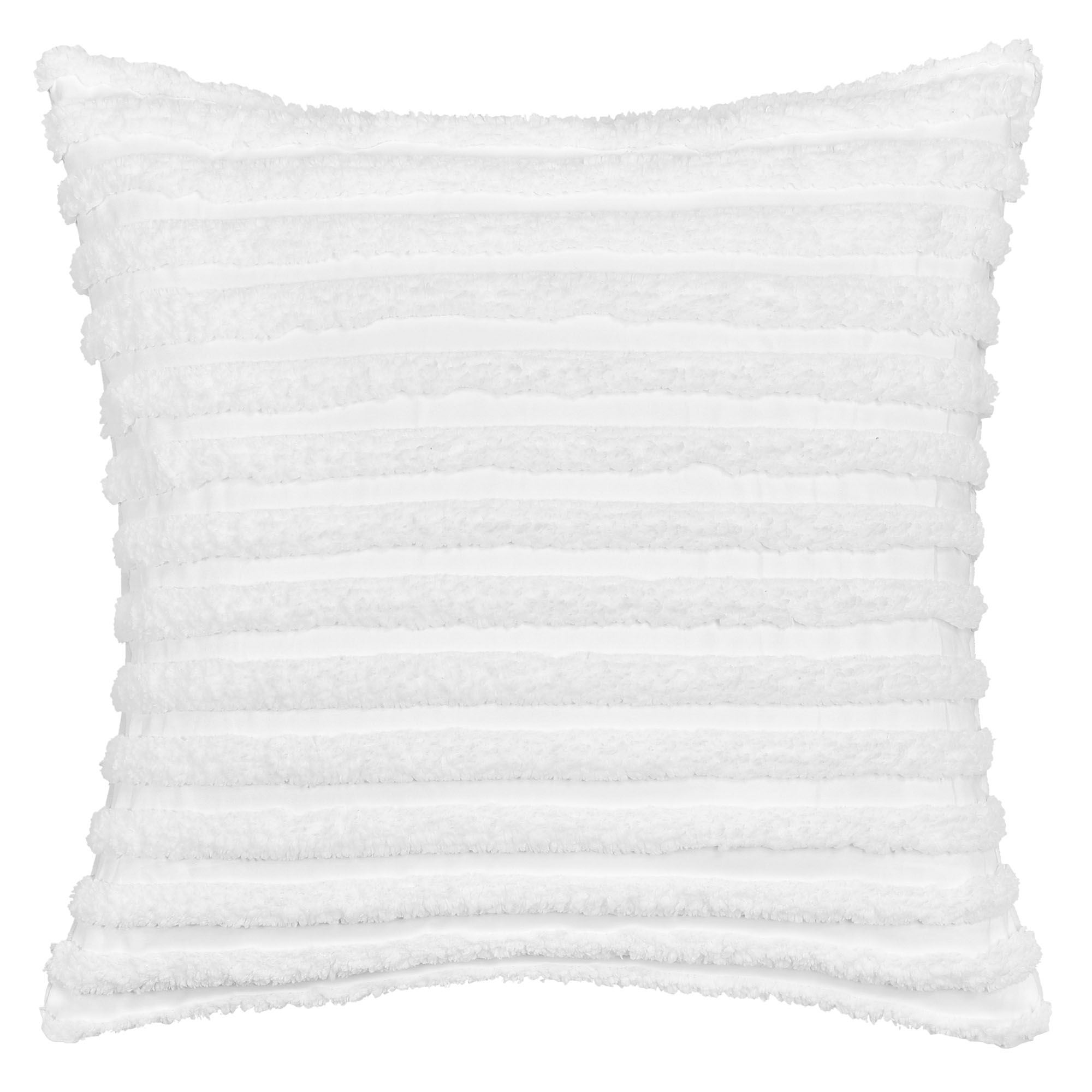 Color-wash your space and drift away on vibrant, cozy dreams with the Darby Bedding. From J. Queen Bold, the solid white, plush polyester ensemble features a tufted striped design rich with a soft texture.