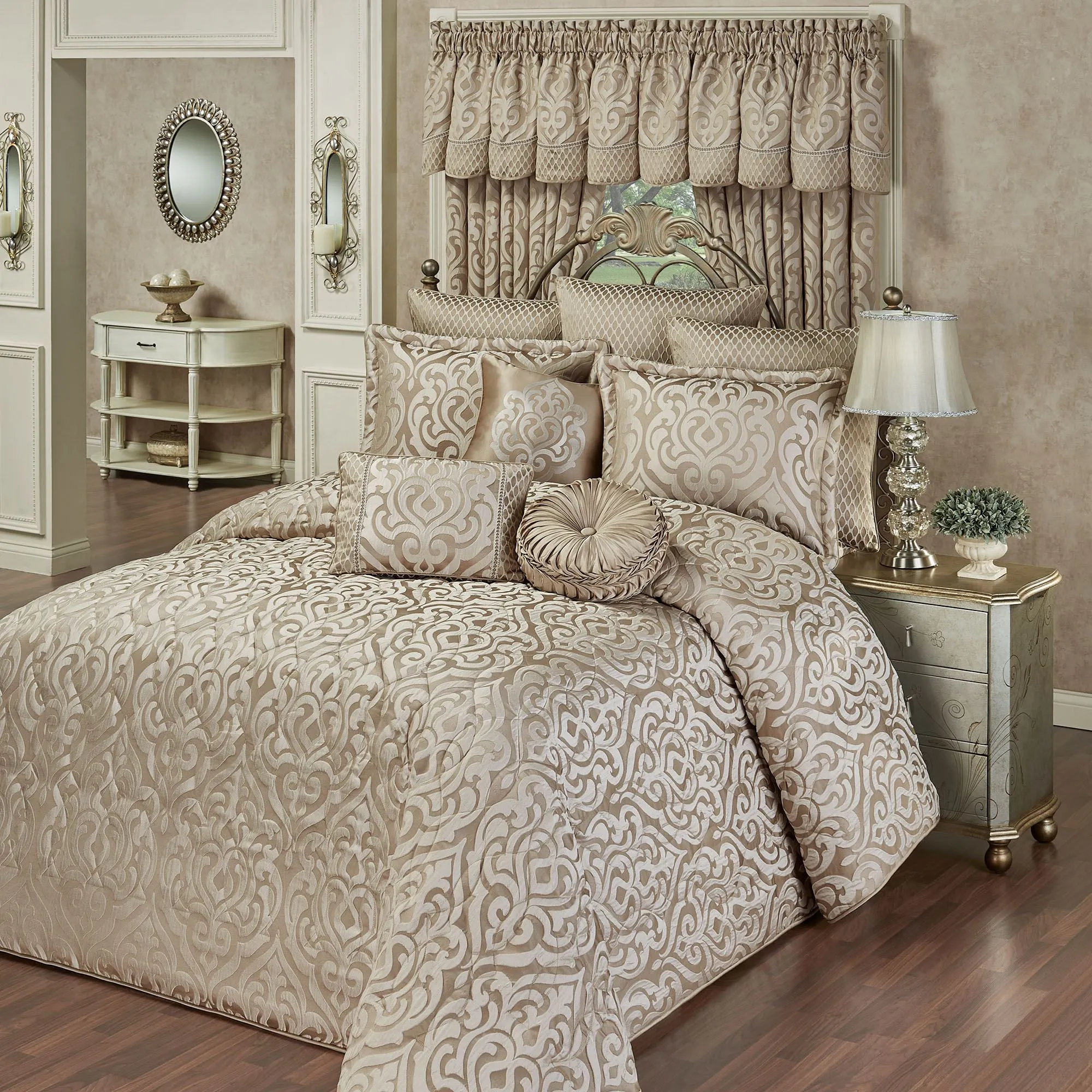 Davenport Scroll Sand Oversized Bedspread Luxury Bedding