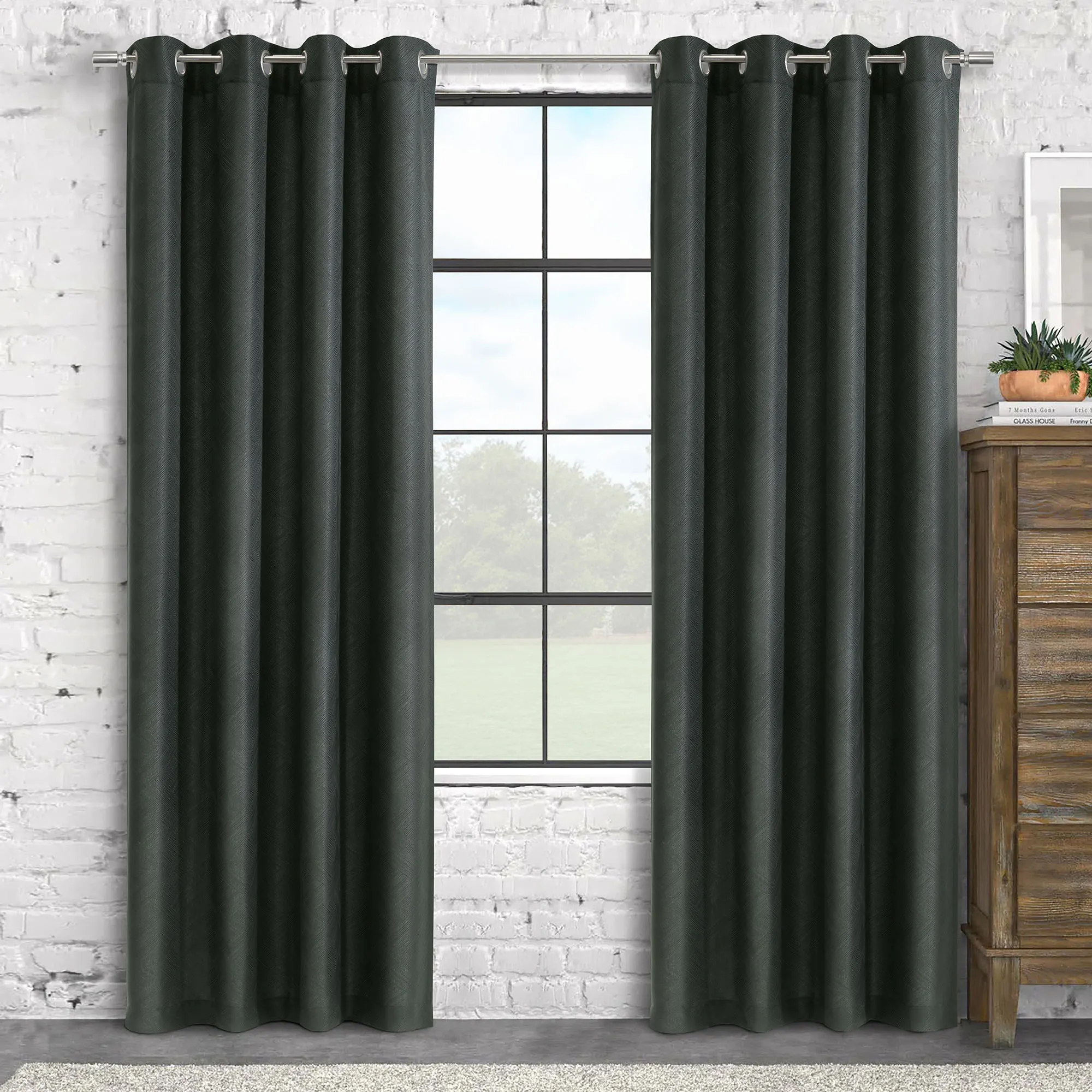 Delphina Charcoal Grommet Curtain Panel