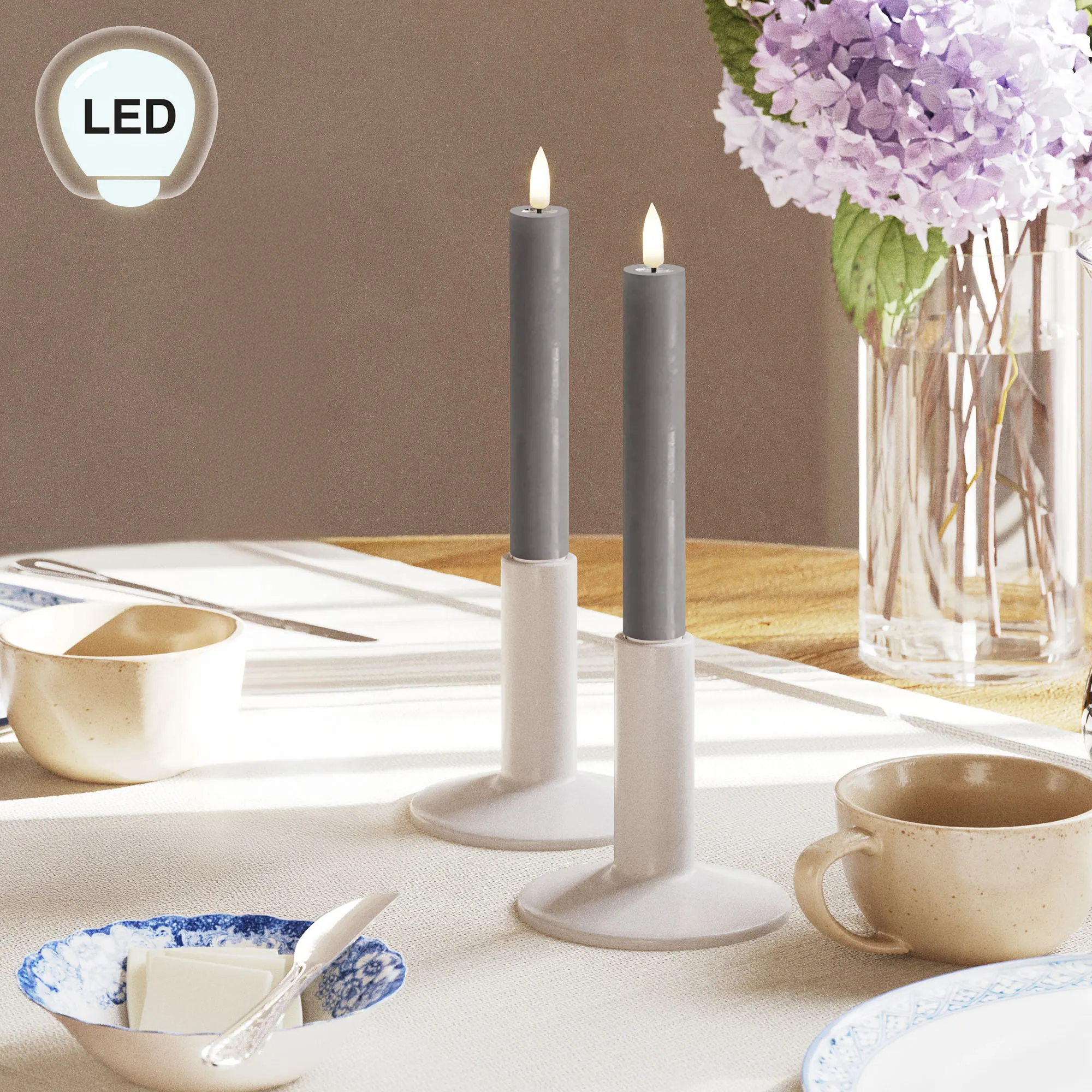 • Set of 2 real wax LED taper candles