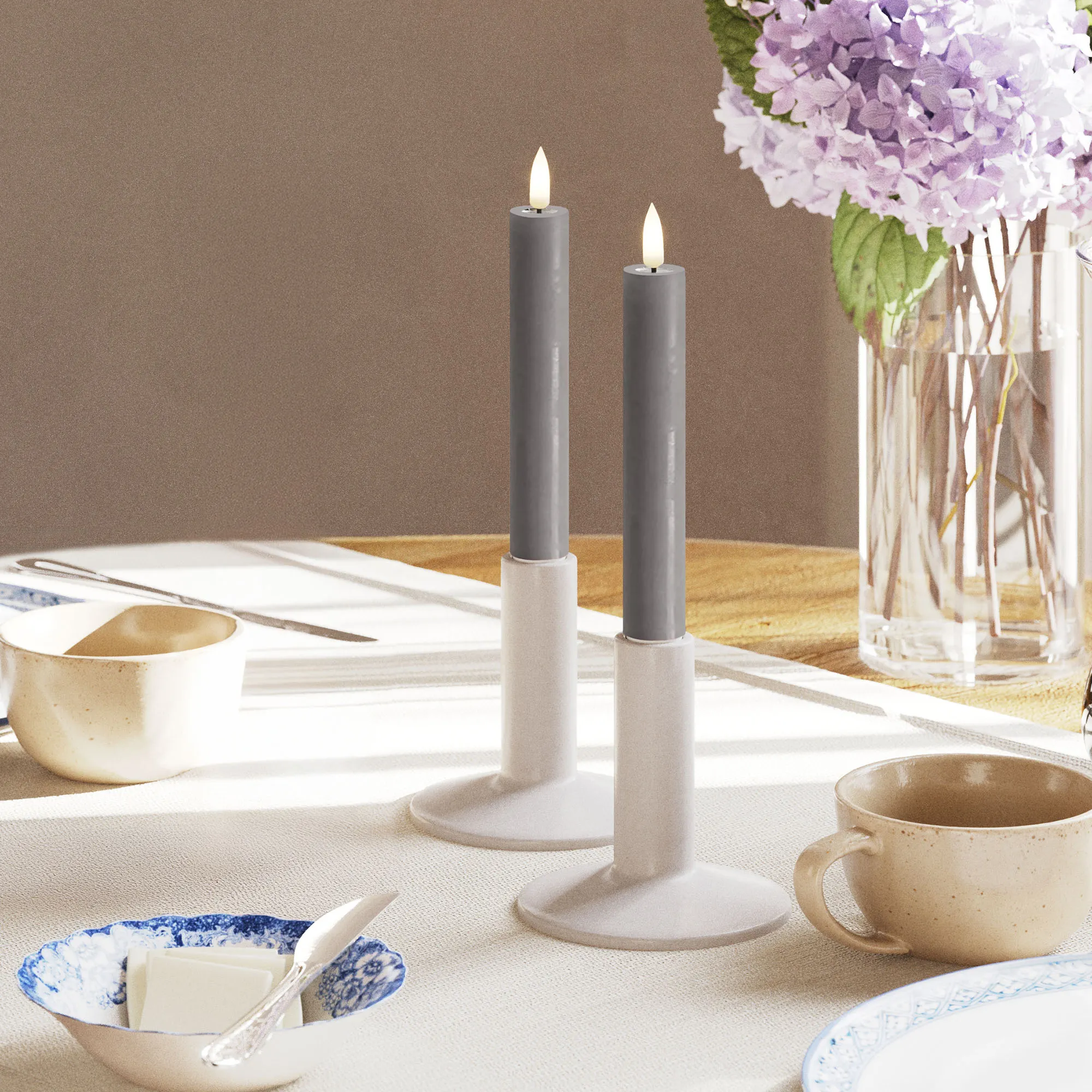 Deluxe Home Art WETLOOK(TM) Gray LED Flameless 6 Inch Taper Candle Set of 2