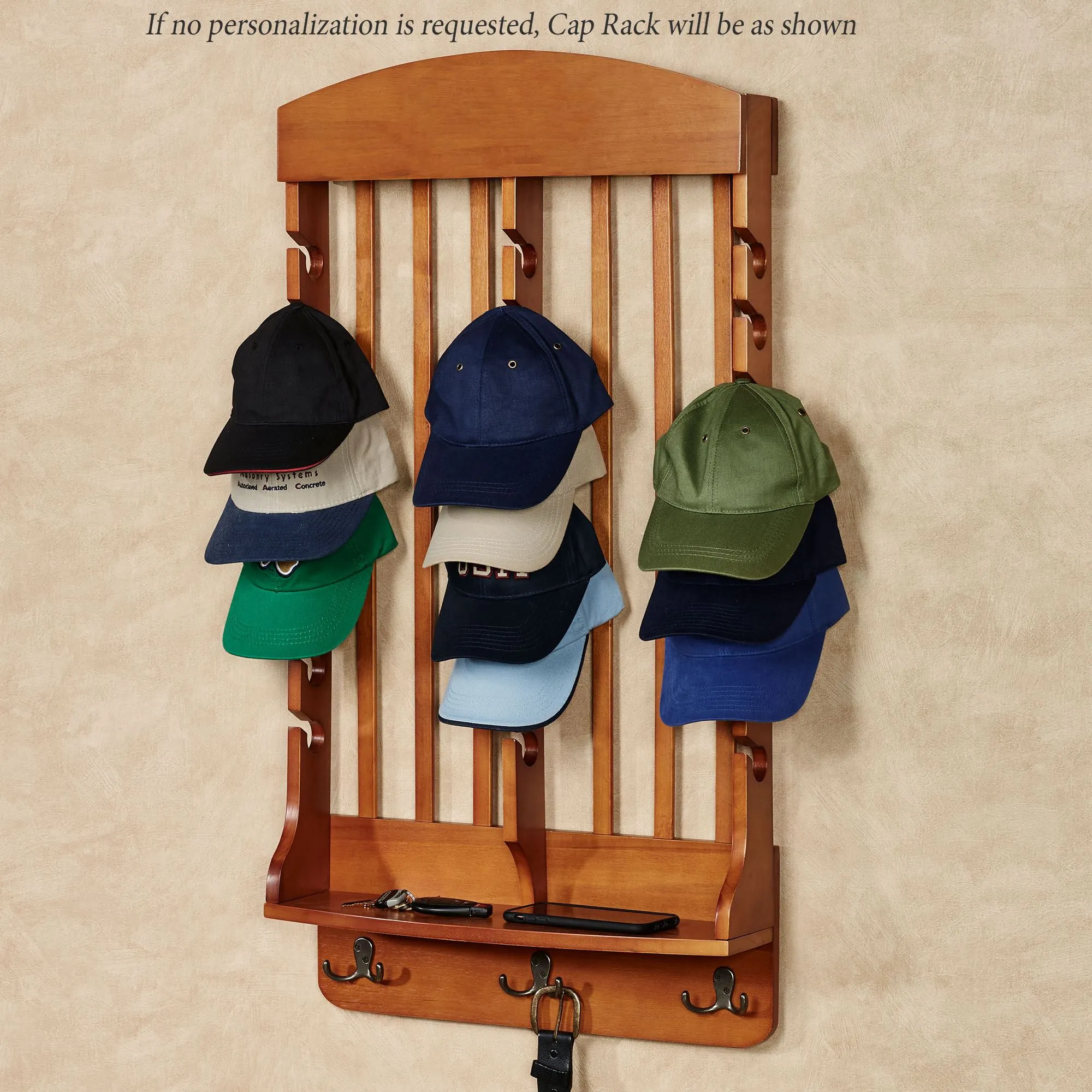 Vertical Windsor Oak Deluxe Monogrammed Solid Wood Cap Display Wall Rack