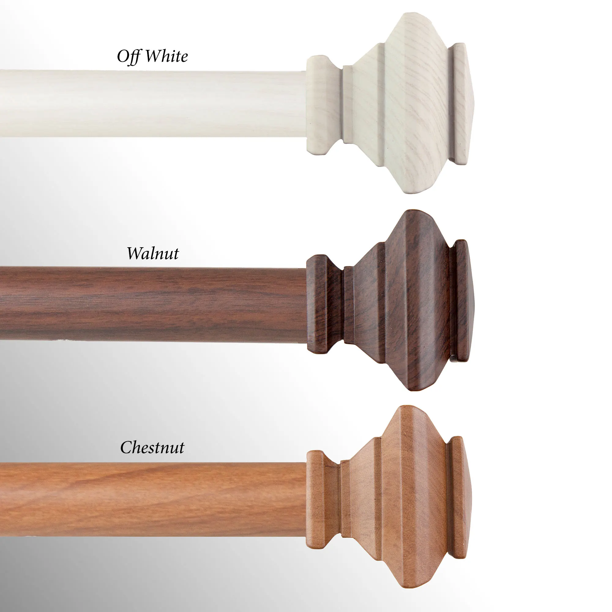 • Features square faux wood finials