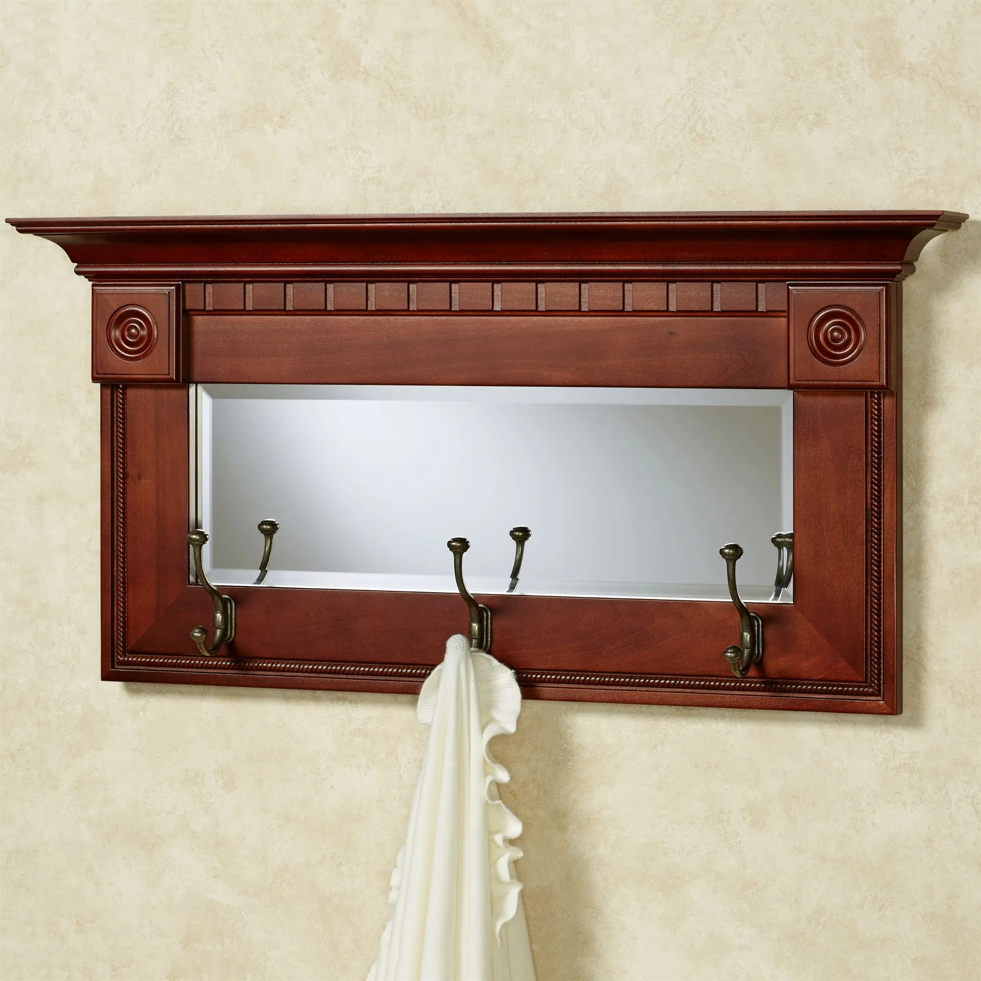 Dentil Pediment Classic Cherry Wall Mirror with Hooks