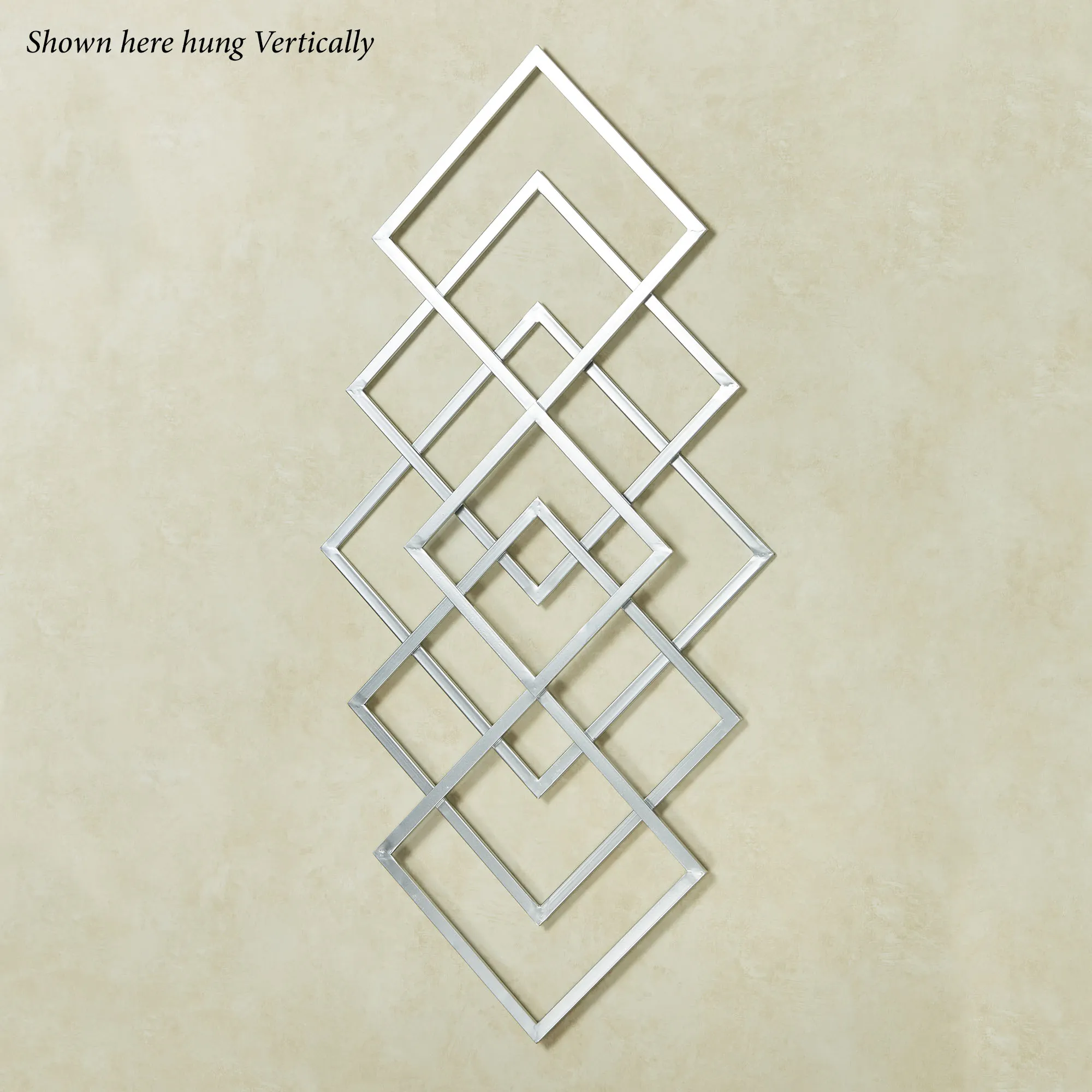 Capture attention with the Diamond Interlink Silver Wall Art. With an openwork design and a silver finish, the metal wall sculpture features modern interlinking diamond shapes. Artwork may hang horizontally or vertically. Overall, the wall art measures 40"Wx1"Dx20"H.