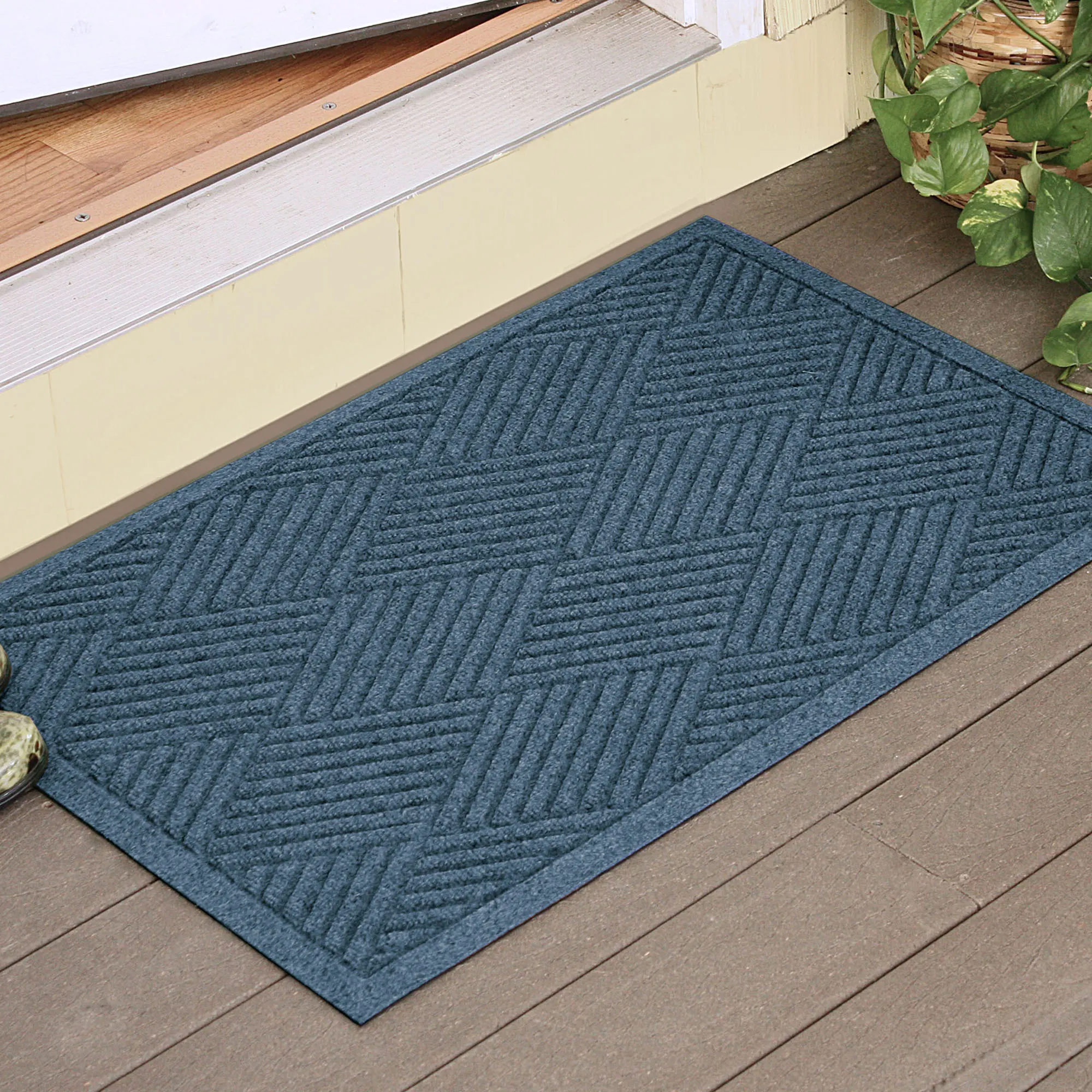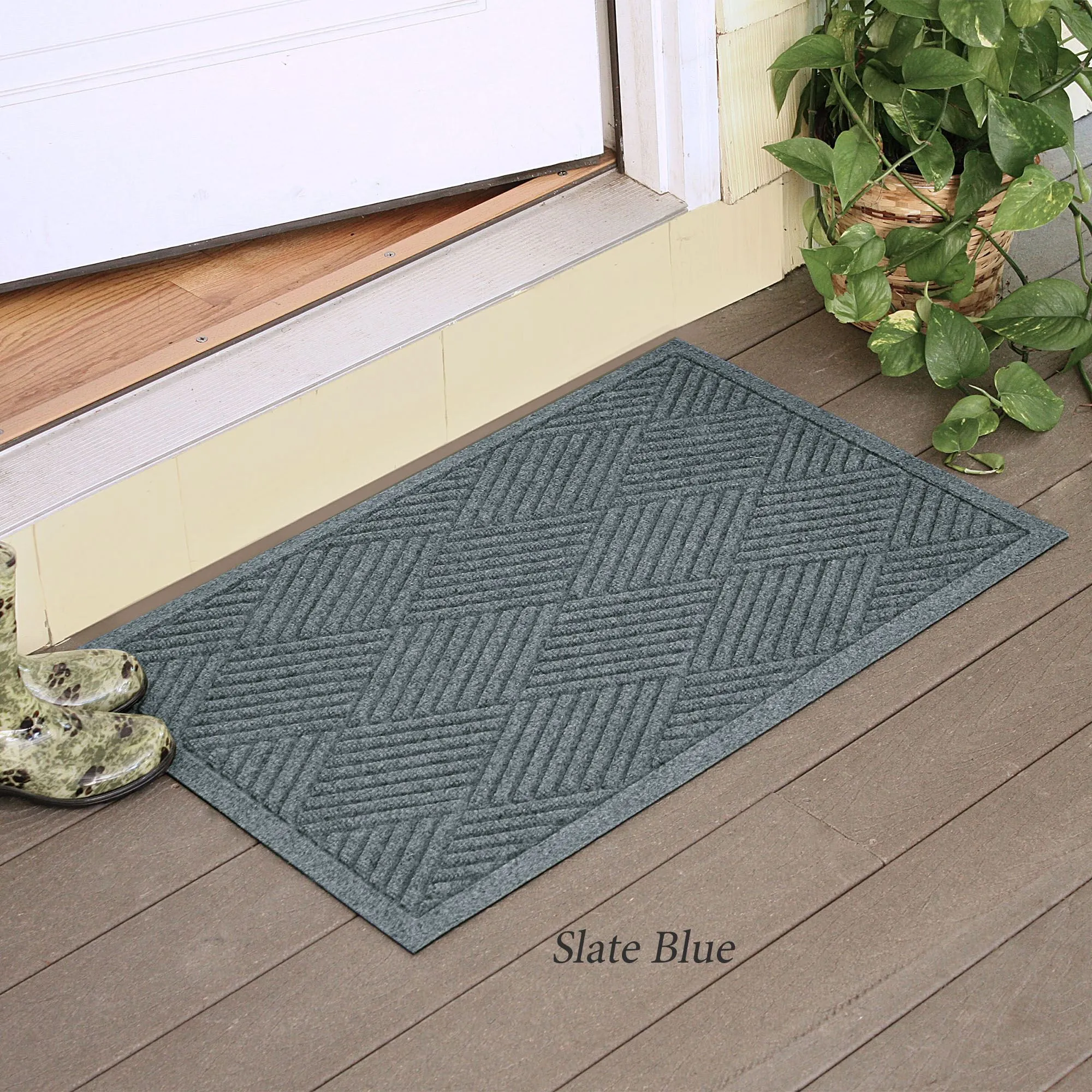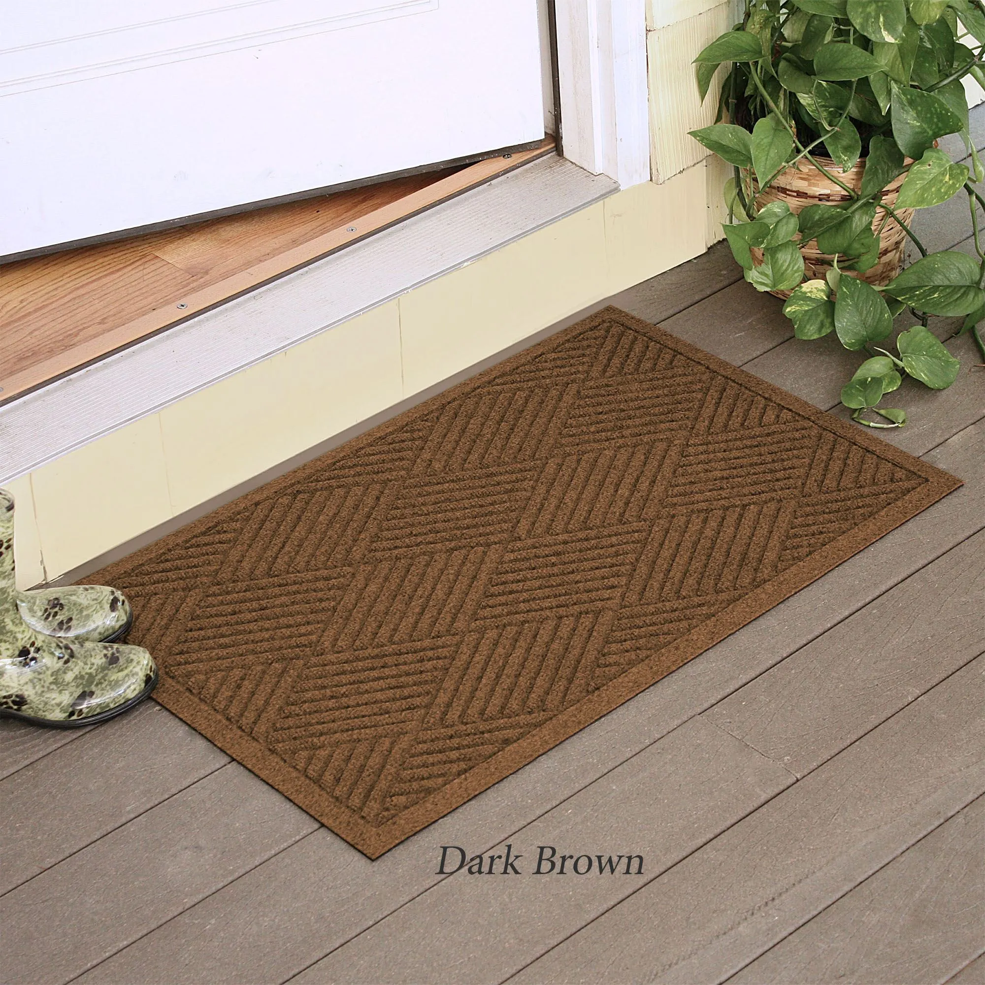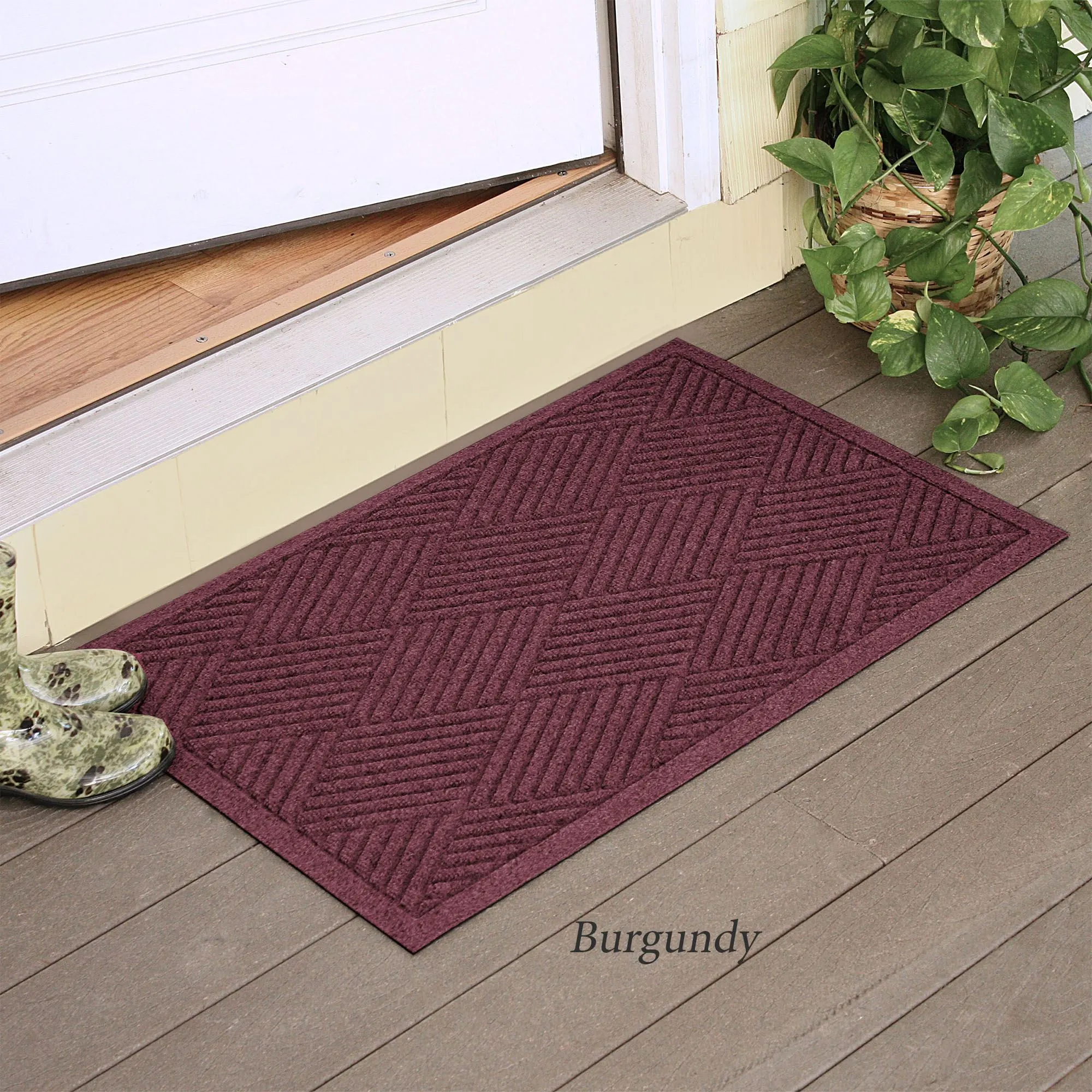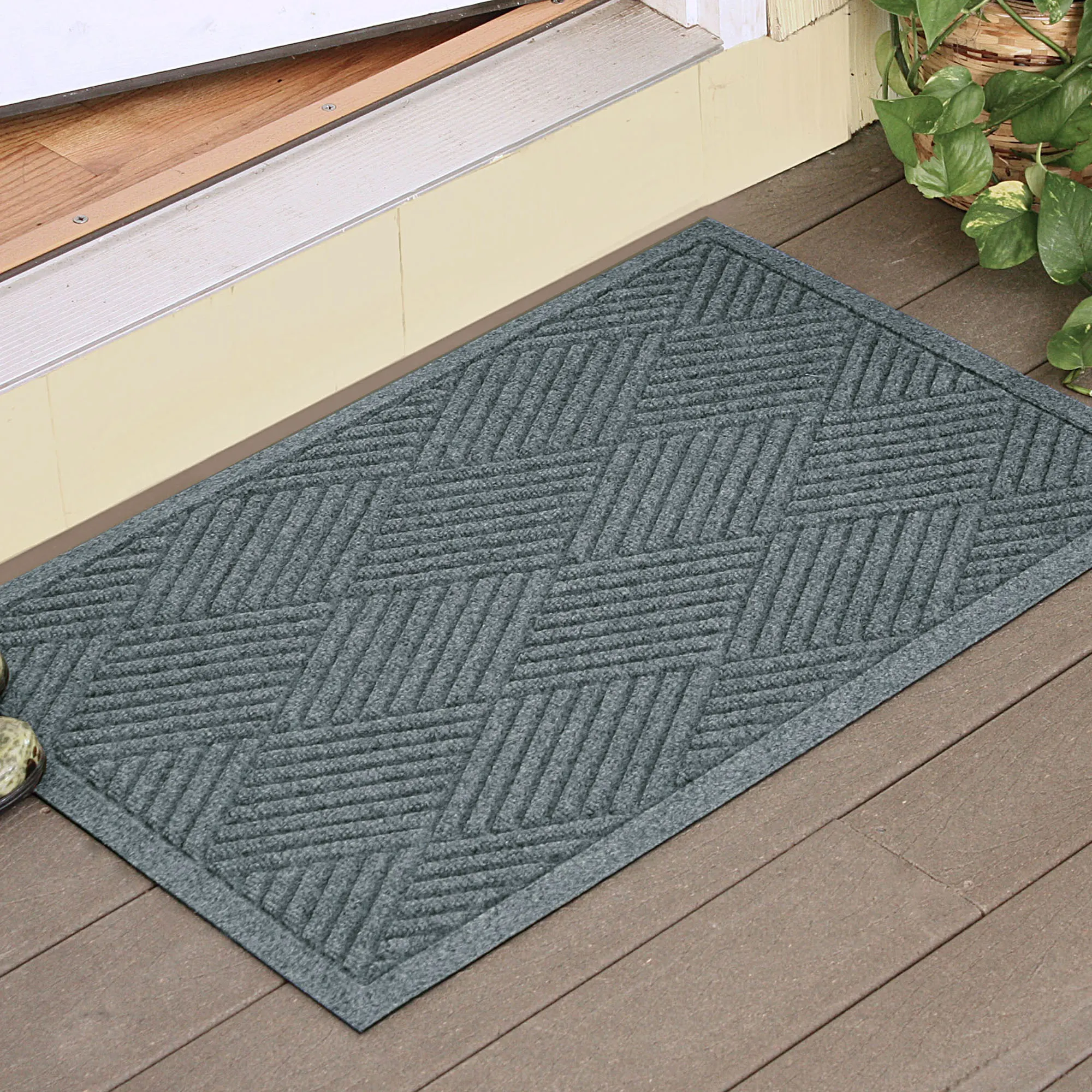 The intriguing Diamonds Indoor/Outdoor Doormat will embellish your entryway with simplistic beauty. The antistatic PET polyester fiber floor accent has a slip-resistant SBR rubber backing that is skid-resistant and certified by the National Floor Safety Institute. The WaterHog(R) exclusive Water Dam border keeps dirt and water on the mat and not your floor. Mat is mildew-, mold-, and rot-resistant. Specify Gray, Burgundy, Charcoal, Dark Brown, Dark Green, Khaki, Navy, or Slate Blue. Doormat is 35"x23". Indoor use or outdoor use year round. Hose off to clean.