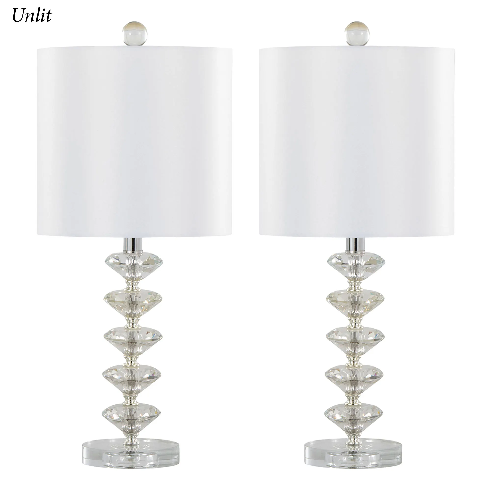 Diana Clear Faceted Diamond Shaped Crystal Table Lamp Pair