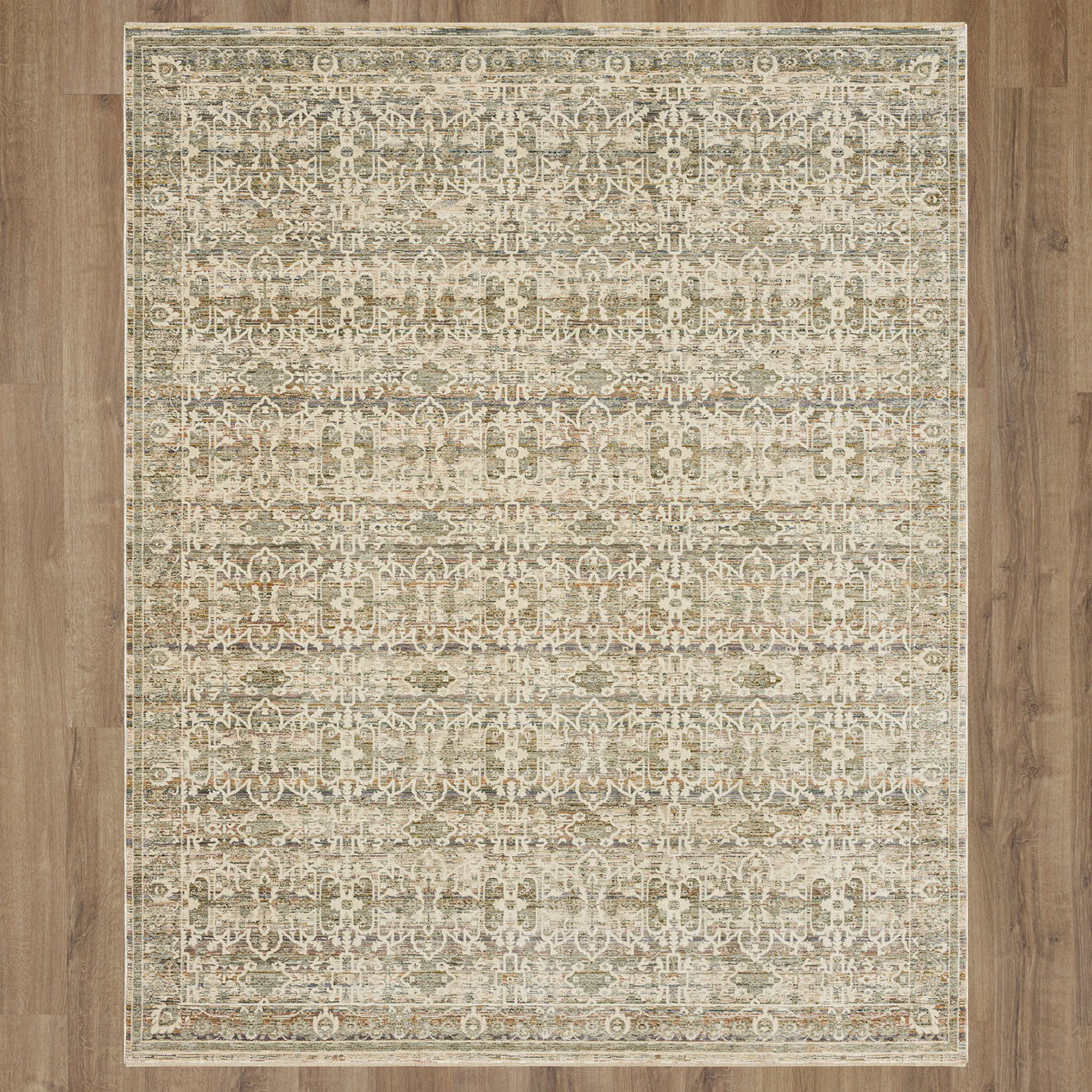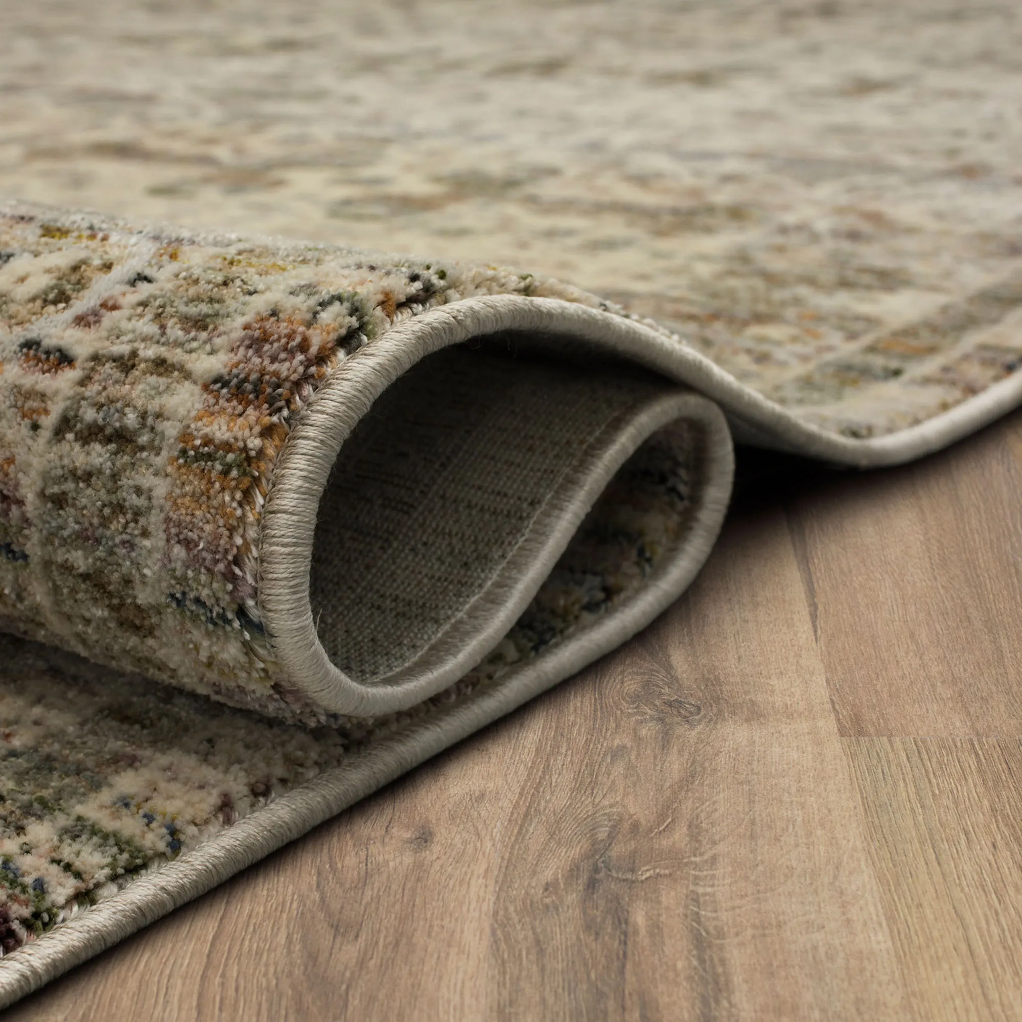 Ornate motifs and geometric designs create the splendid style of the Divina Rug. This power-loomed polyester area rug, .24" thick, is ultra-soft and has .5"L length-end fringe; the runner does not have fringe. Colors include shades of tan, ivory, gray, light blue, light green, and blush. Backing is latex. We recommend professional cleaning by a rug cleaner. Imported.