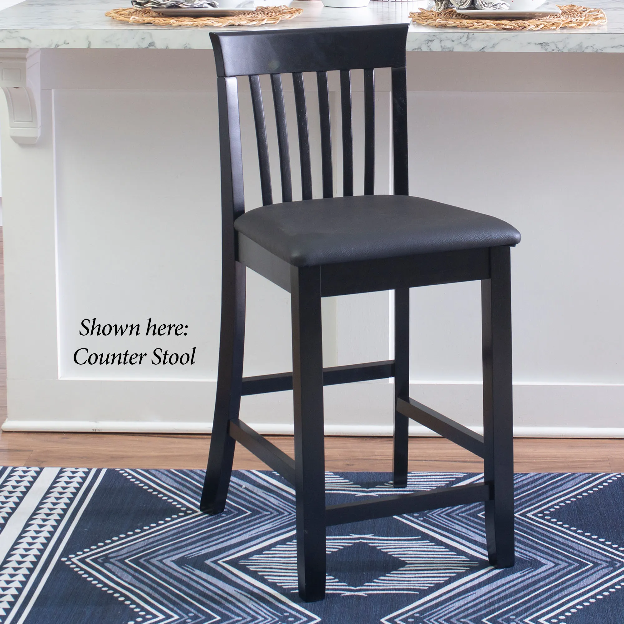 Dorian Black Wood Mission Style Kitchen Bar or Counter Stool with Faux Leather Seat