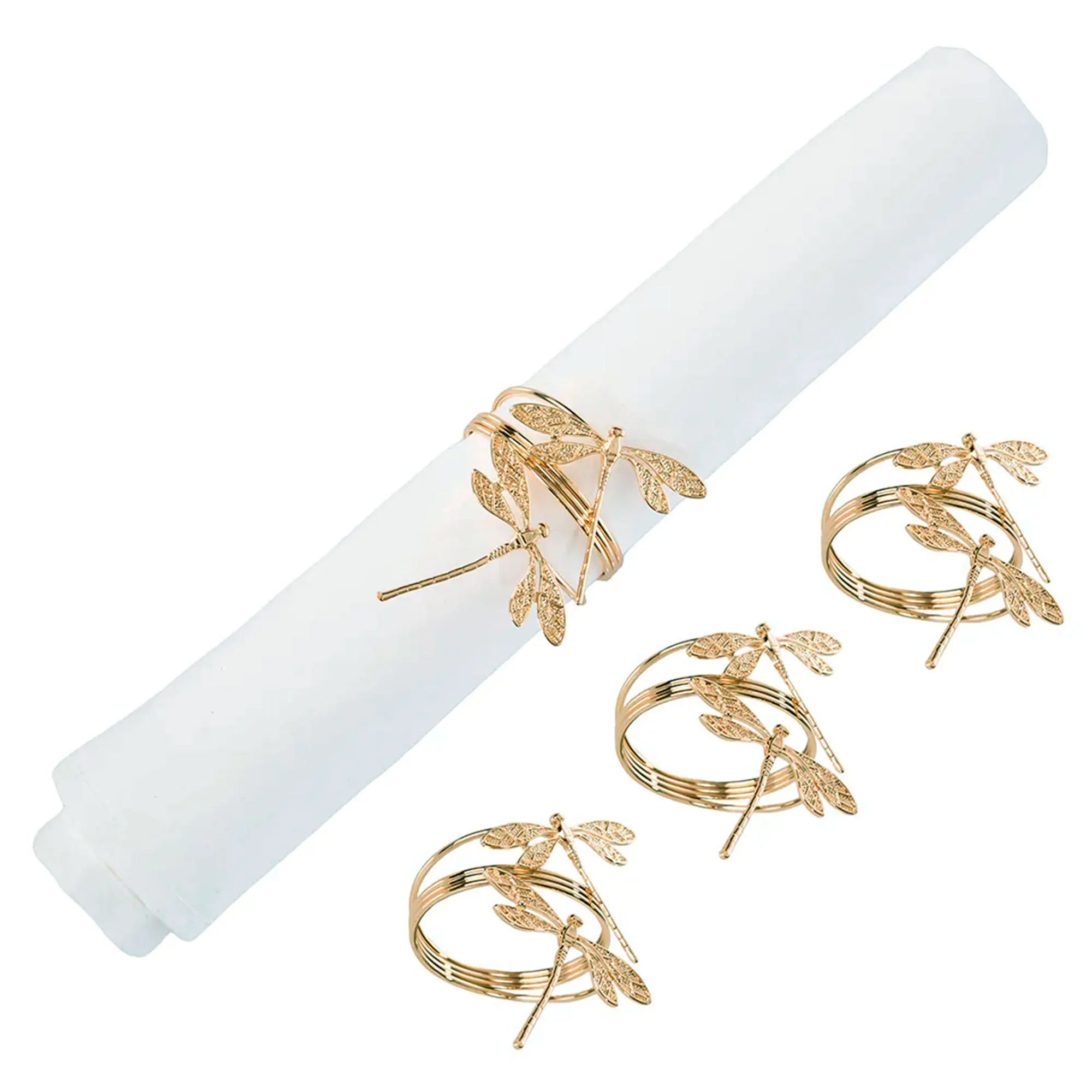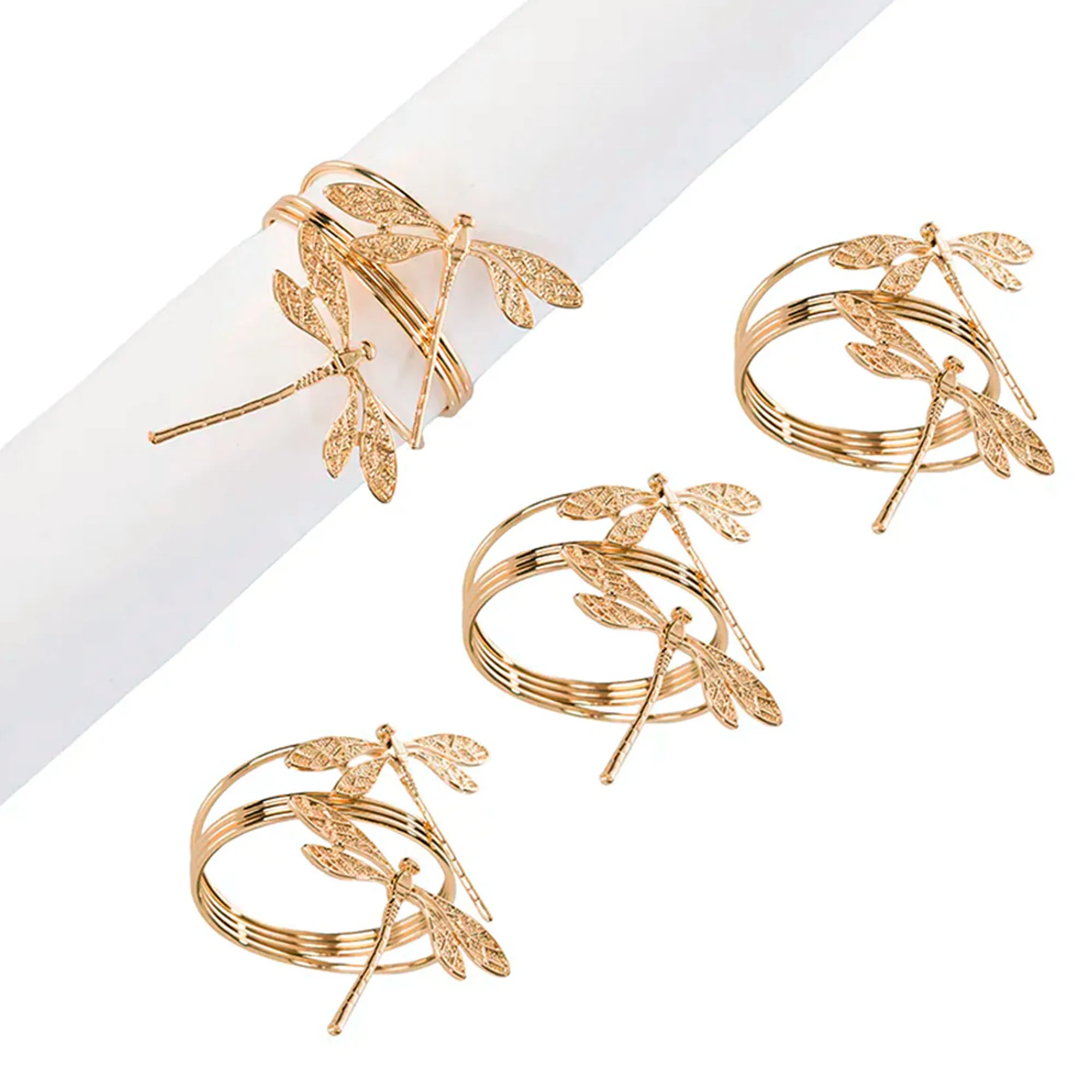 Dragonflies Nature Inspired Gold Metal Napkin Ring Set of 4