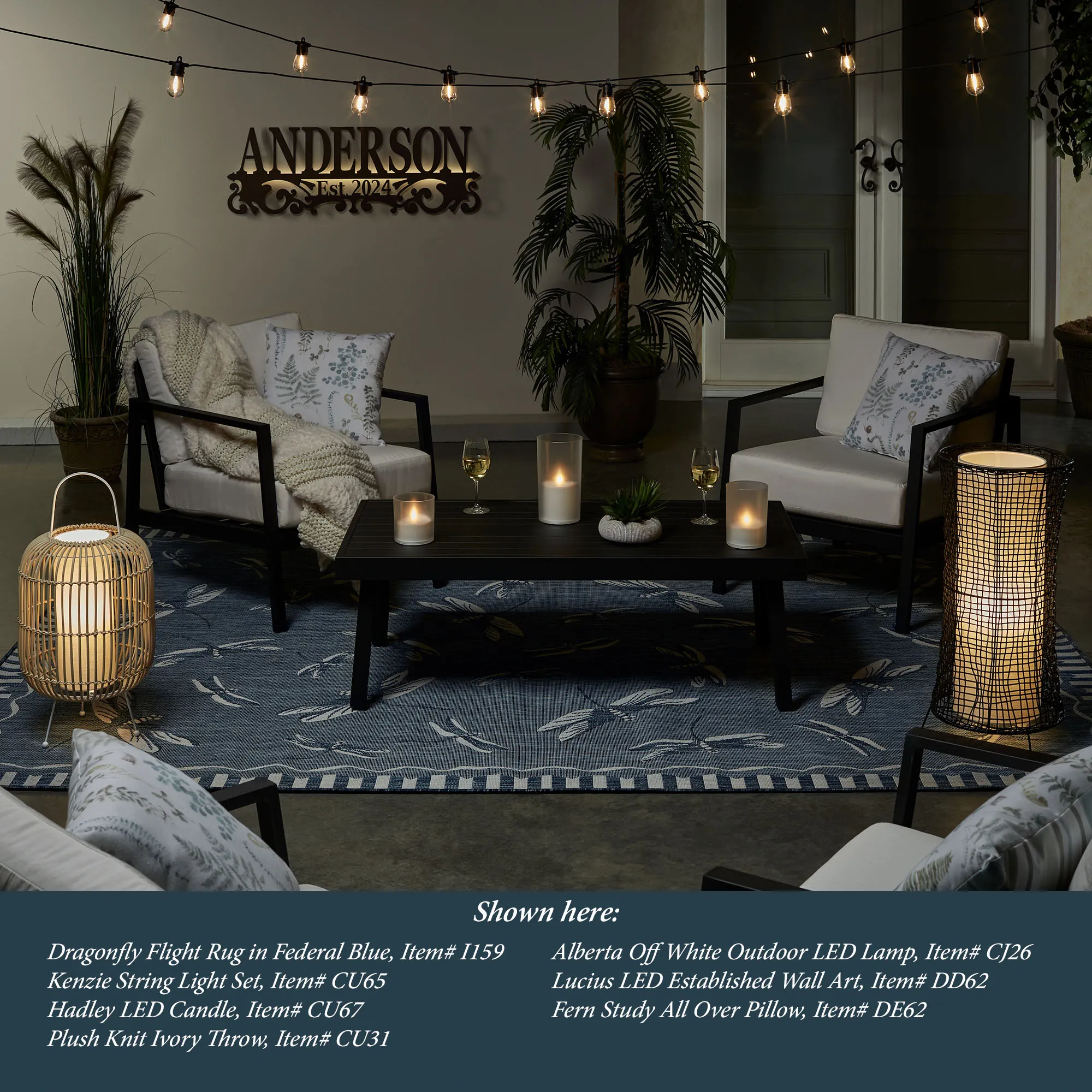 The double-winged flutterbugs on the Dragonfly Flight Indoor/Outdoor Rugs are a whimsical way to liven up any area. These UV-stabilized, polypropylene/polyester Everywear(TM) rugs, .125" thick, are Wilton-woven and feature dragonflies and a loop border on a solid background. Dark Beige has charcoal dragonflies. Coral, Cypress, Federal Blue, Rust, and Turquoise have light cream dragonflies. Do not expose these rugs to freezing temperatures. Spot clean and rinse with a garden hose; for stubborn stains, we recommend professional cleaning by a rug cleaner. Imported.