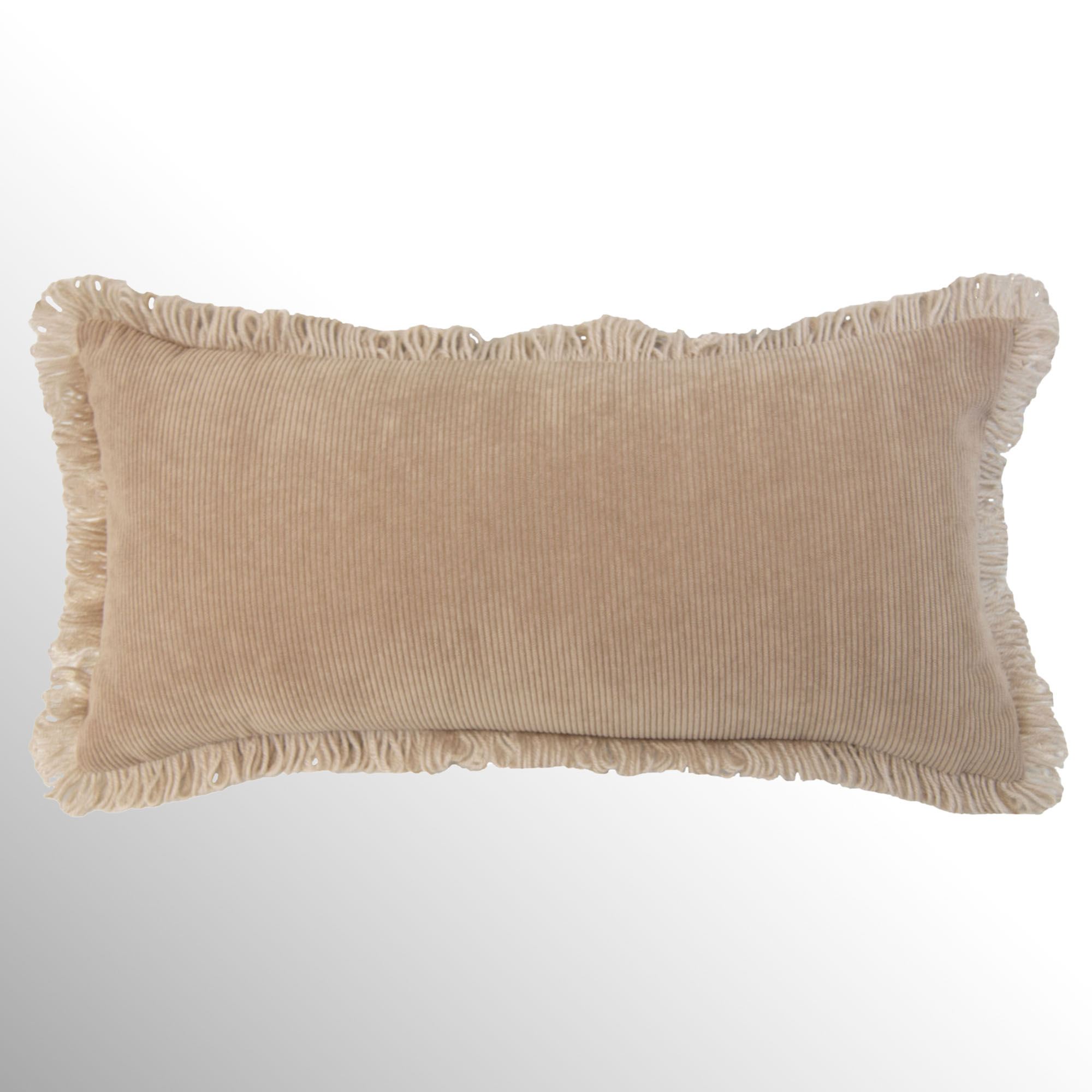 Reversible Rectangle Pillow is ribbed beige corduroy with looped fringed edges. Spot clean.