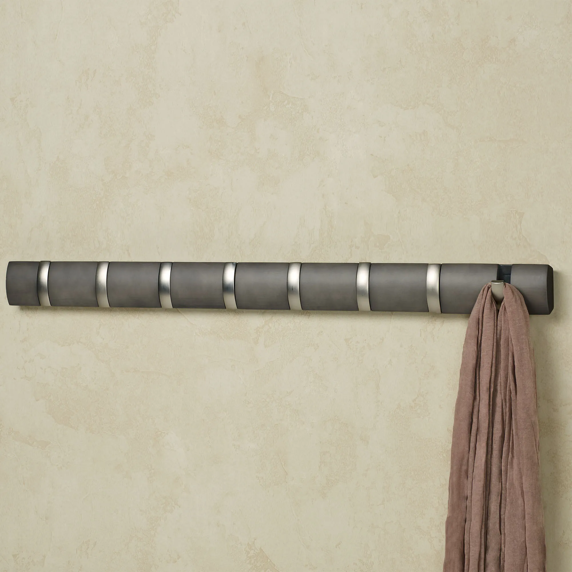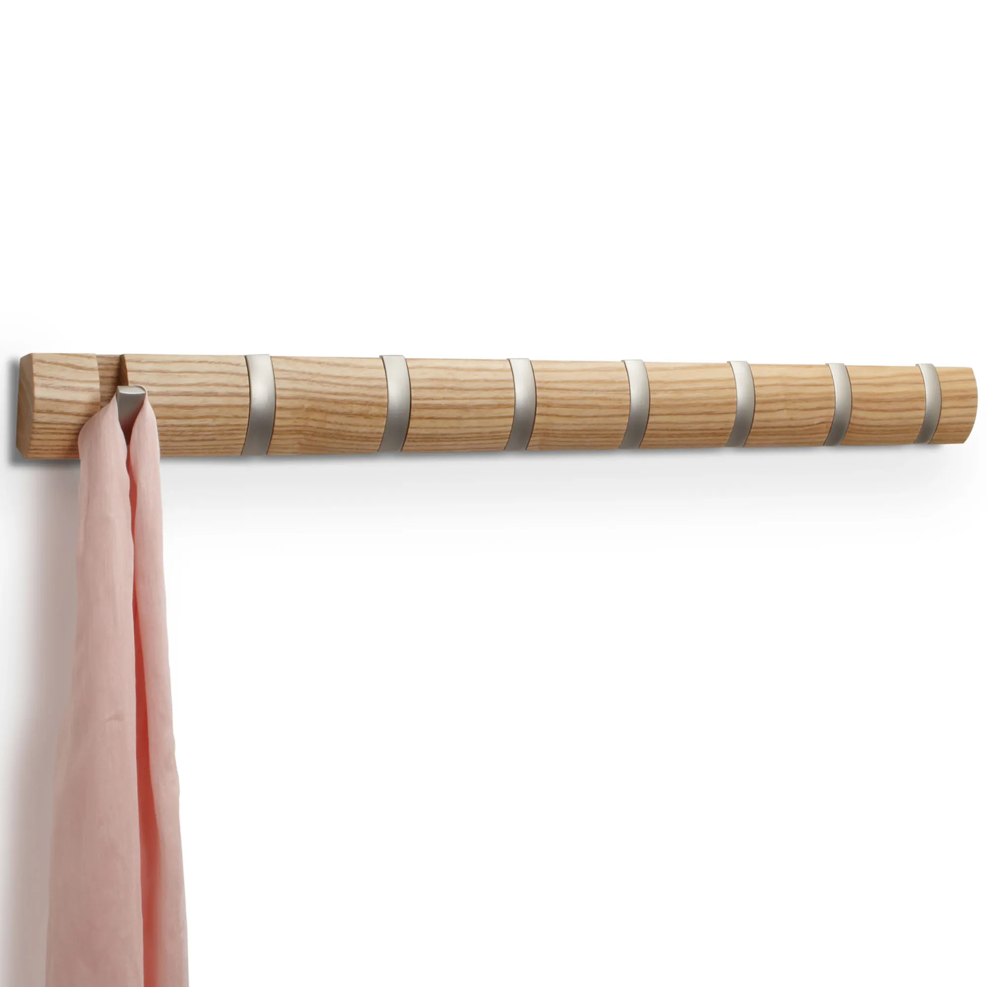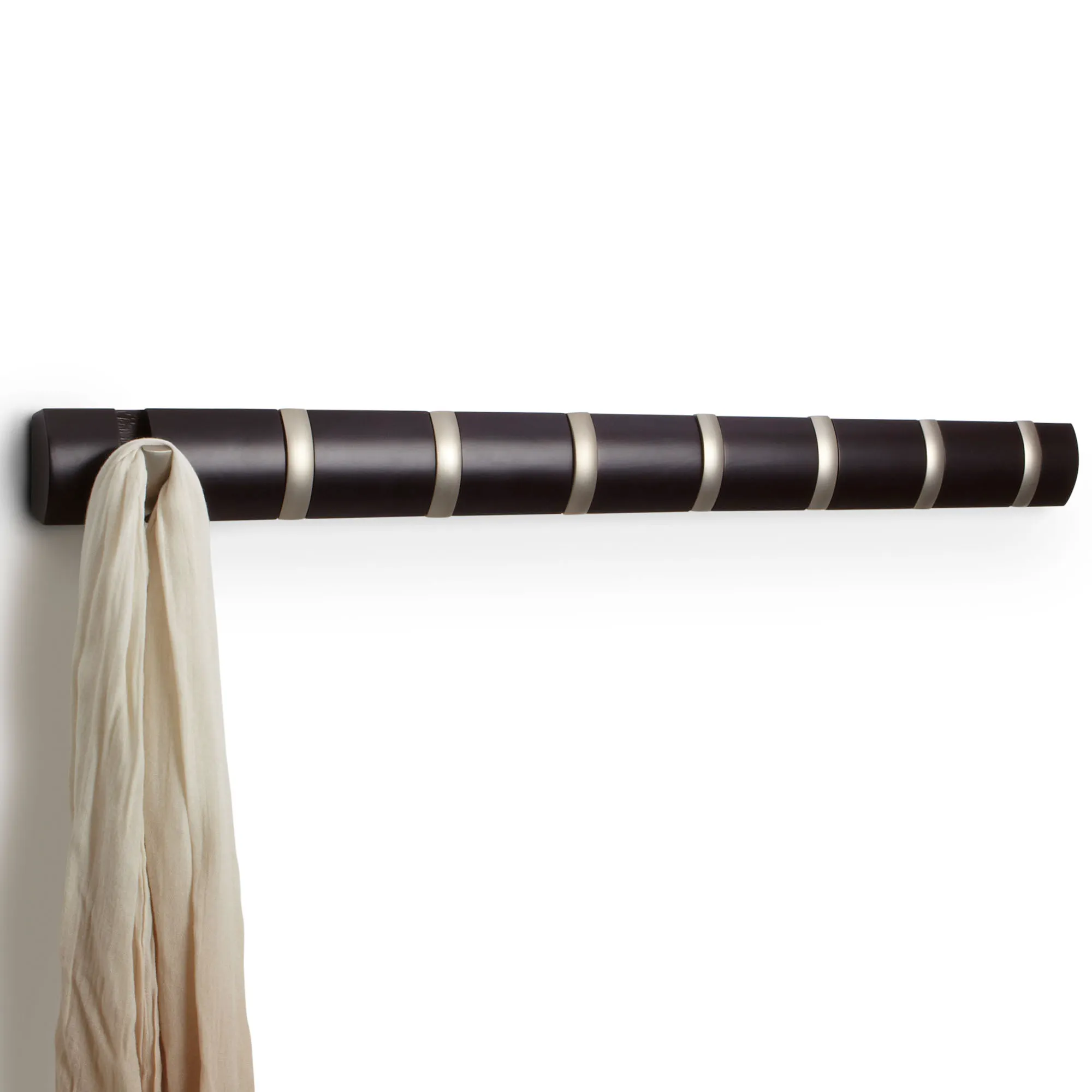 The coat rack is sleek and modern, but holds lots of coats. Well built and looks great on my wall.