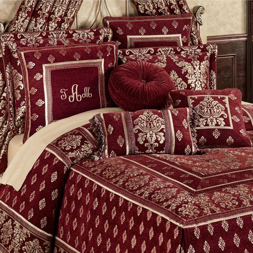 A true monarch of the most regal Dynasty must always have a comfortable and stylish place to rest, such as upon this bed ensemble. Golden jacquard-woven scrolling damask flourishes against merlot chenille on these polyester bedding accents, bordered by gold mini foulard designs and coordinating damask within stately frames. Ensemble is an exclusive Touch of Class(R) design by J. Queen New York!