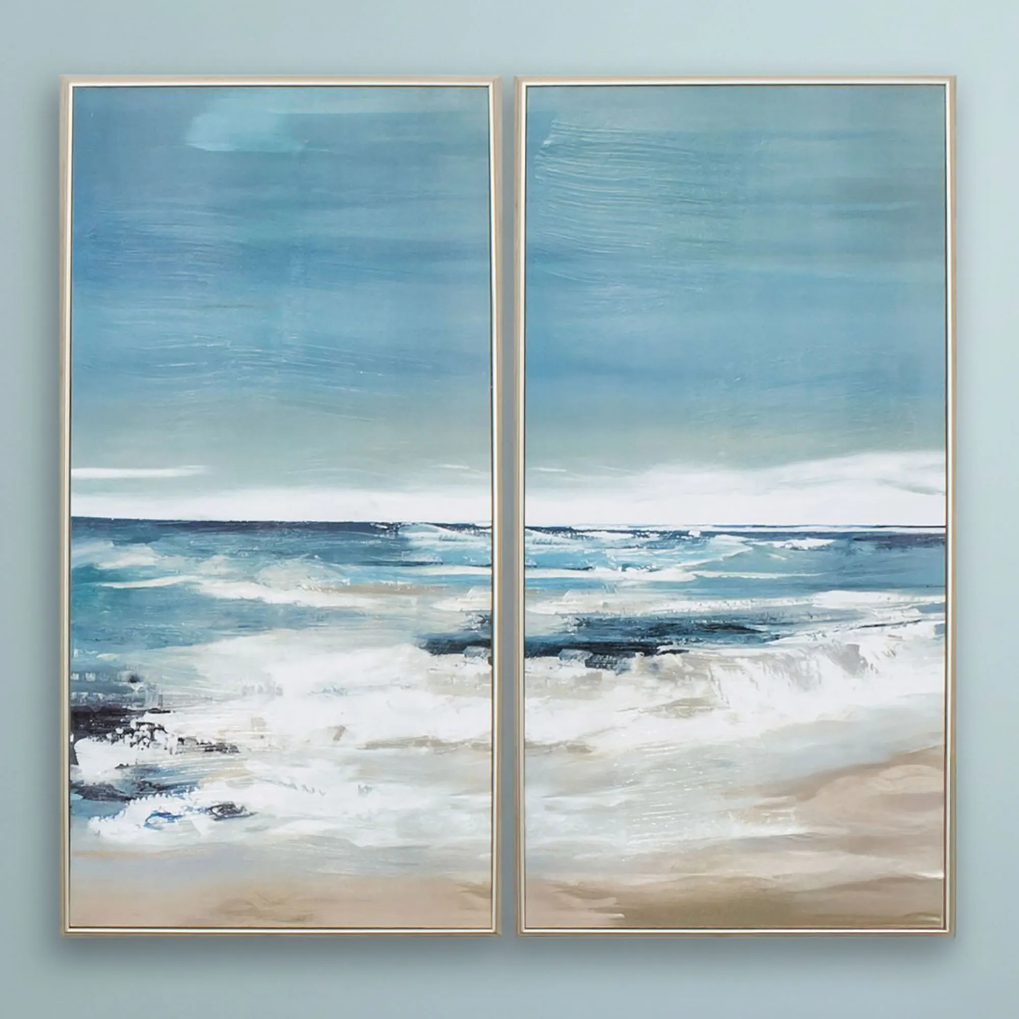 East Coast Ocean Waves on the Shore Beach Horizon Scene Textured Acrylic Framed Wall Art Set