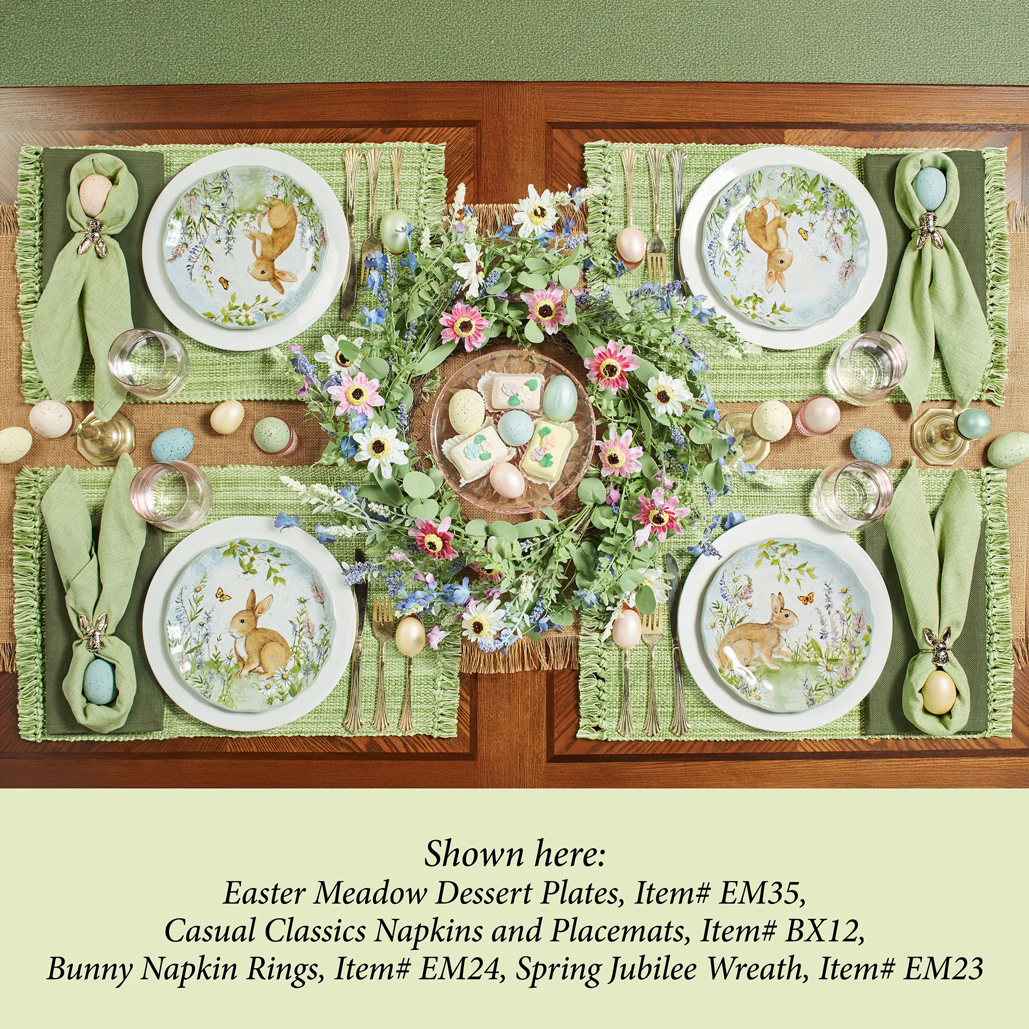 Easter Meadow Bunny Rabbit Spring Dessert Plate Set of 4