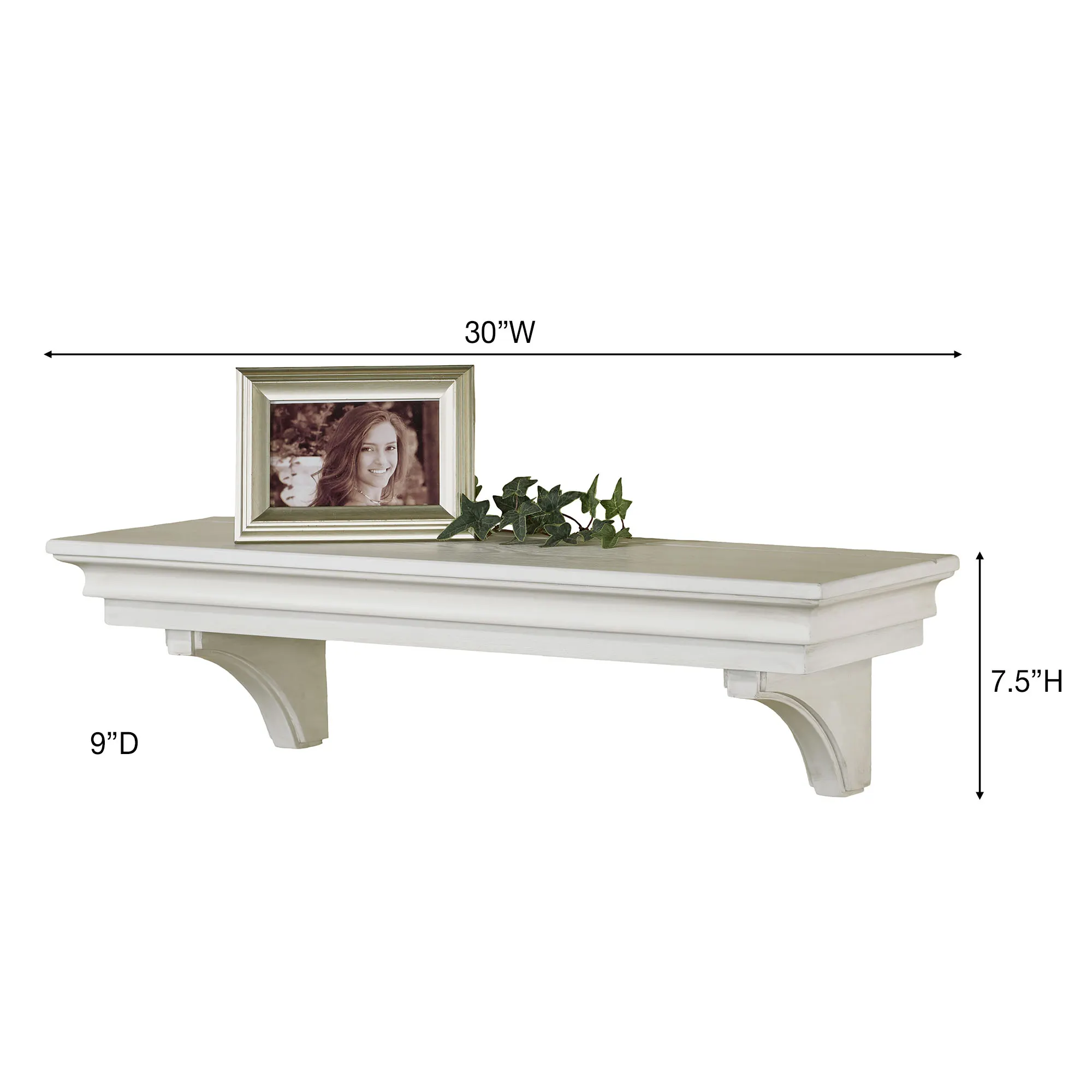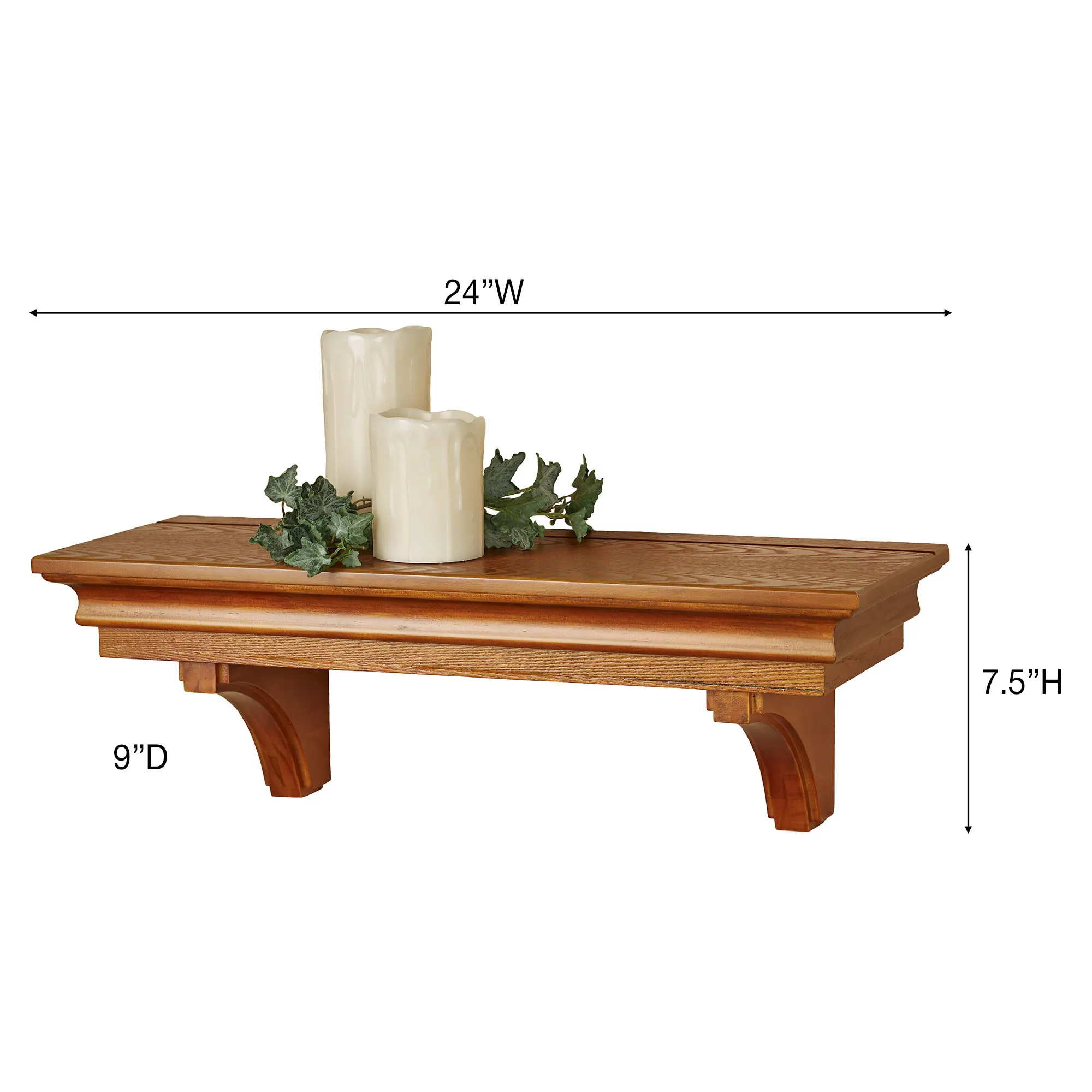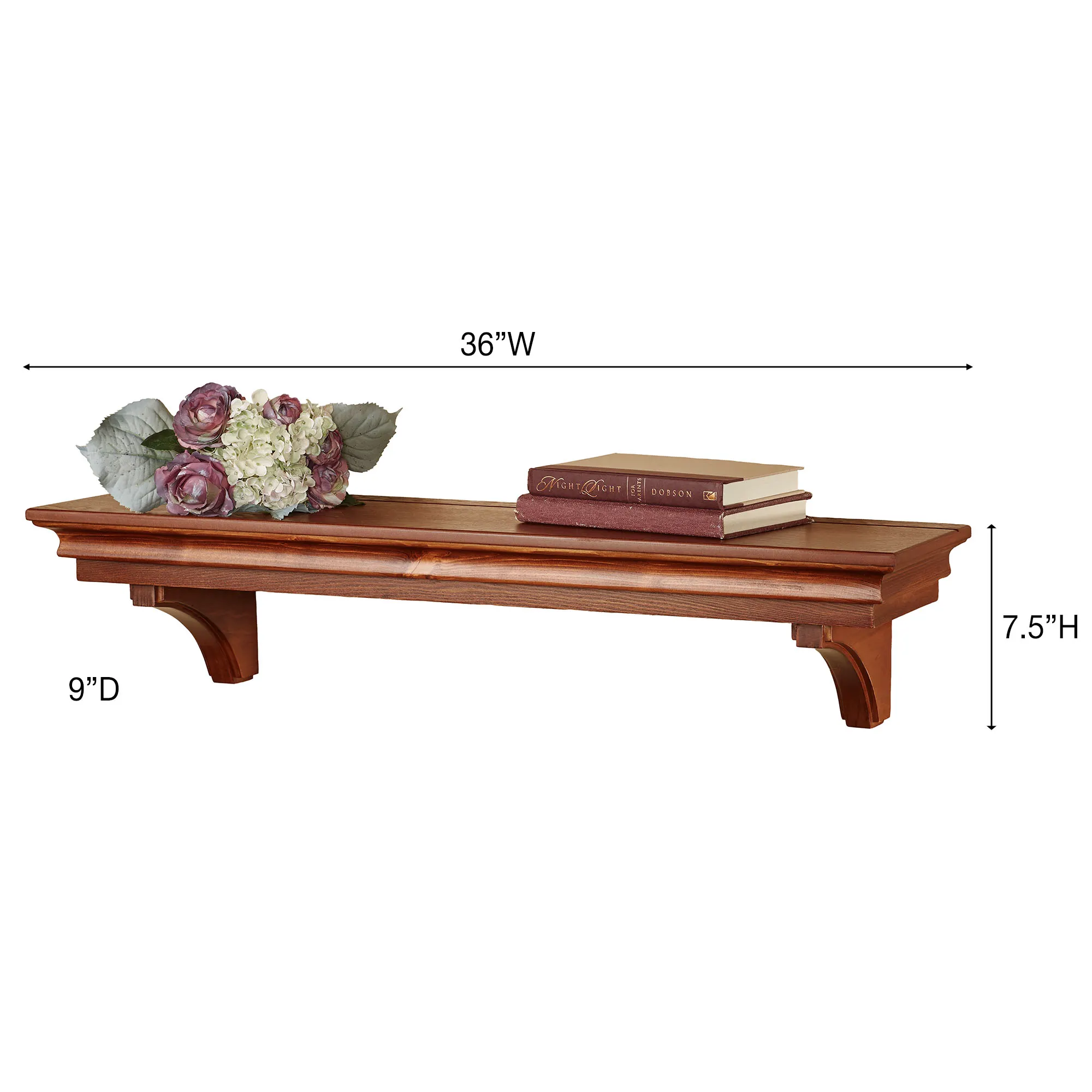 The Easton Wall Shelf beautifully displays your items. Accented with bottom brackets, the wooden wall accent features beveled edges and a wide display space. Each measures 9"Dx7.5"H. The 24"W shelf weighs 8 lbs. The 30"W shelf weighs 11 lbs. The 36"W shelf weighs 13 lbs.